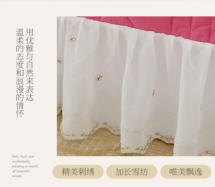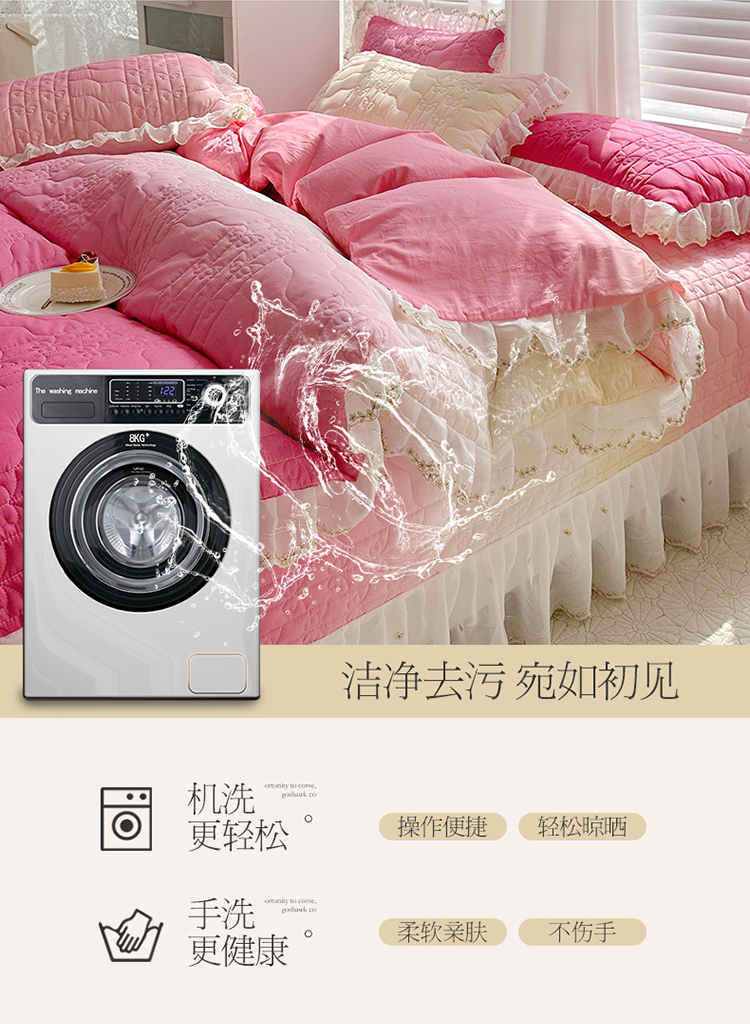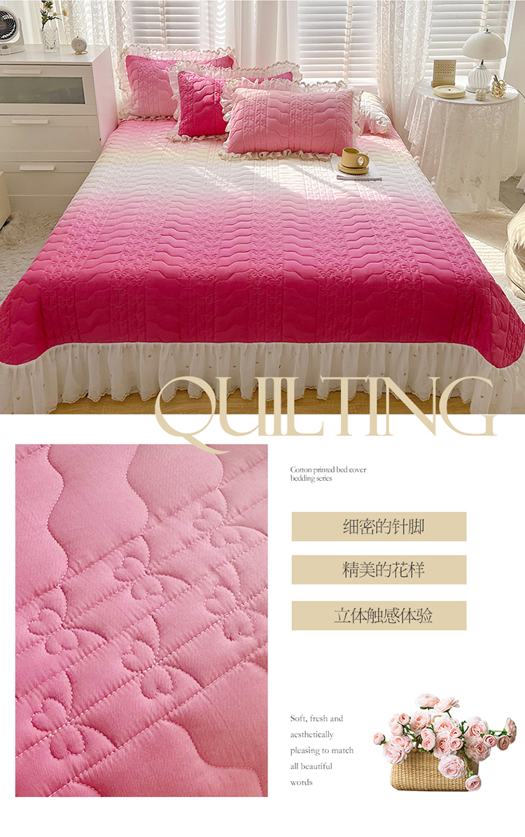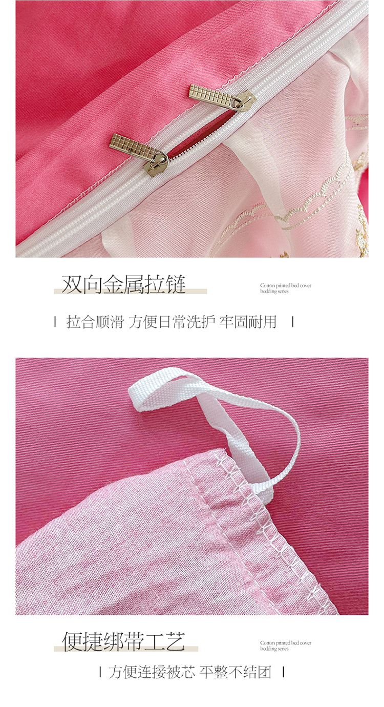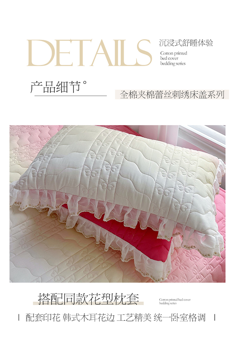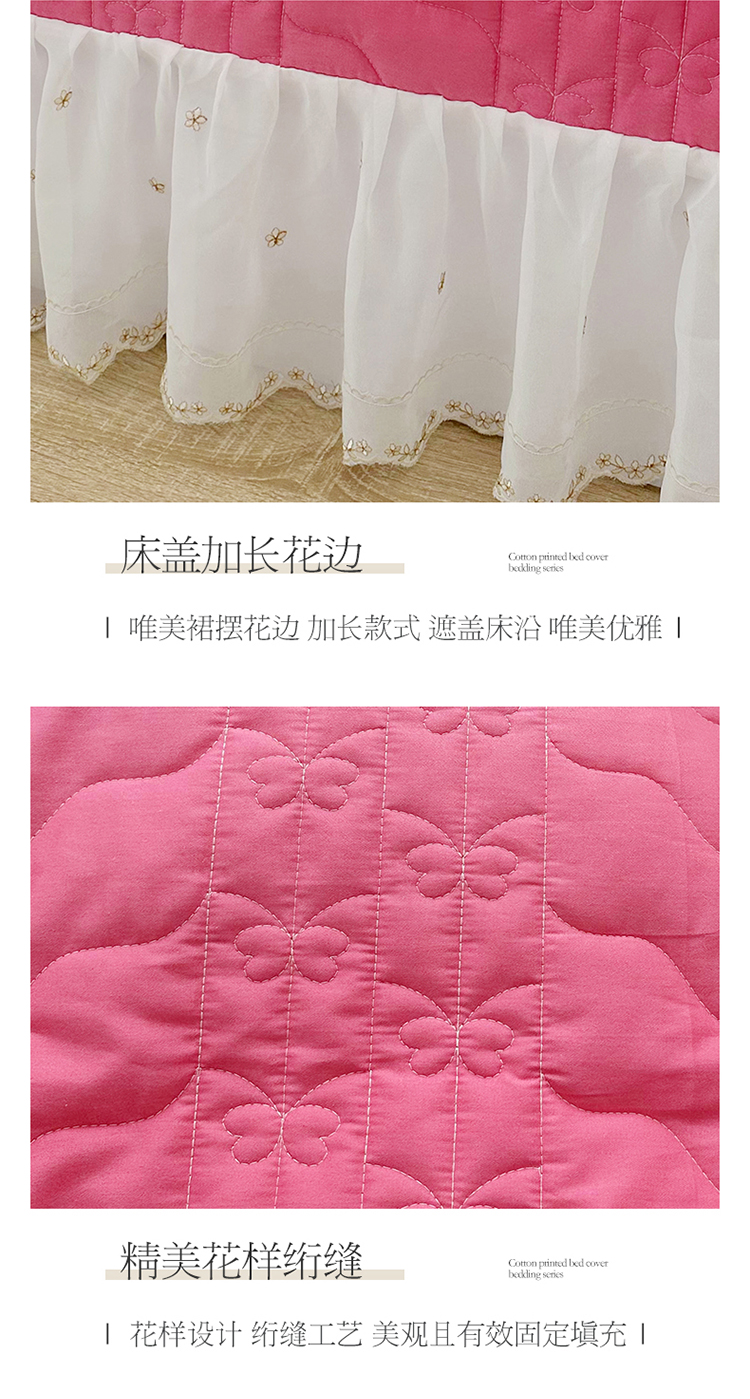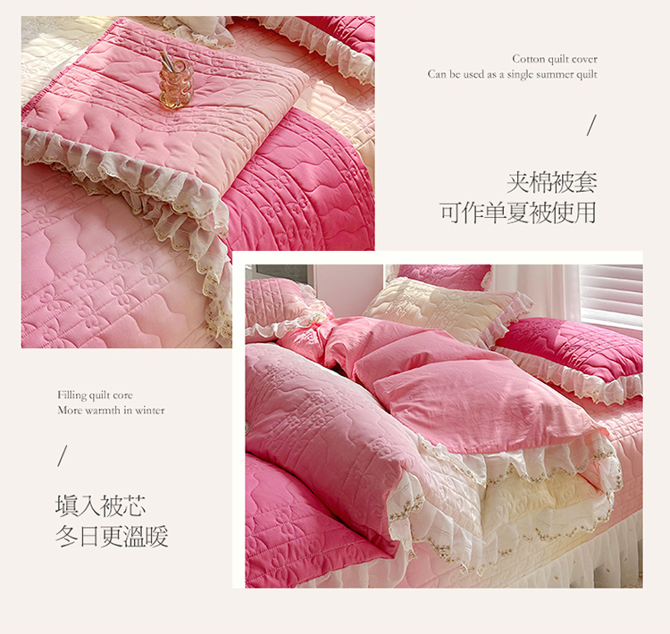 • 91家纺网 家纺一手货源 找家纺  2023新款全棉蕾丝刺绣床盖四件套(夹棉被套) 玫粉