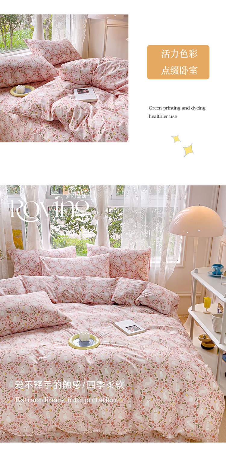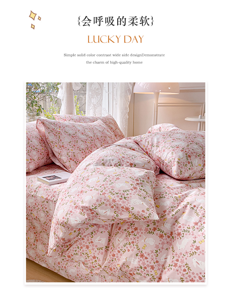 当前位置: 91家纺网 > 商品网购 > 床品套件 > 四件套 > 全棉普通四件套 > 感遇 2023 4月全棉四件套 2花小兔粉