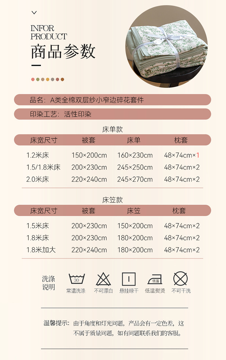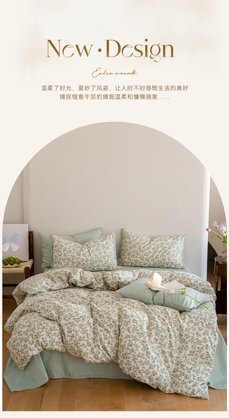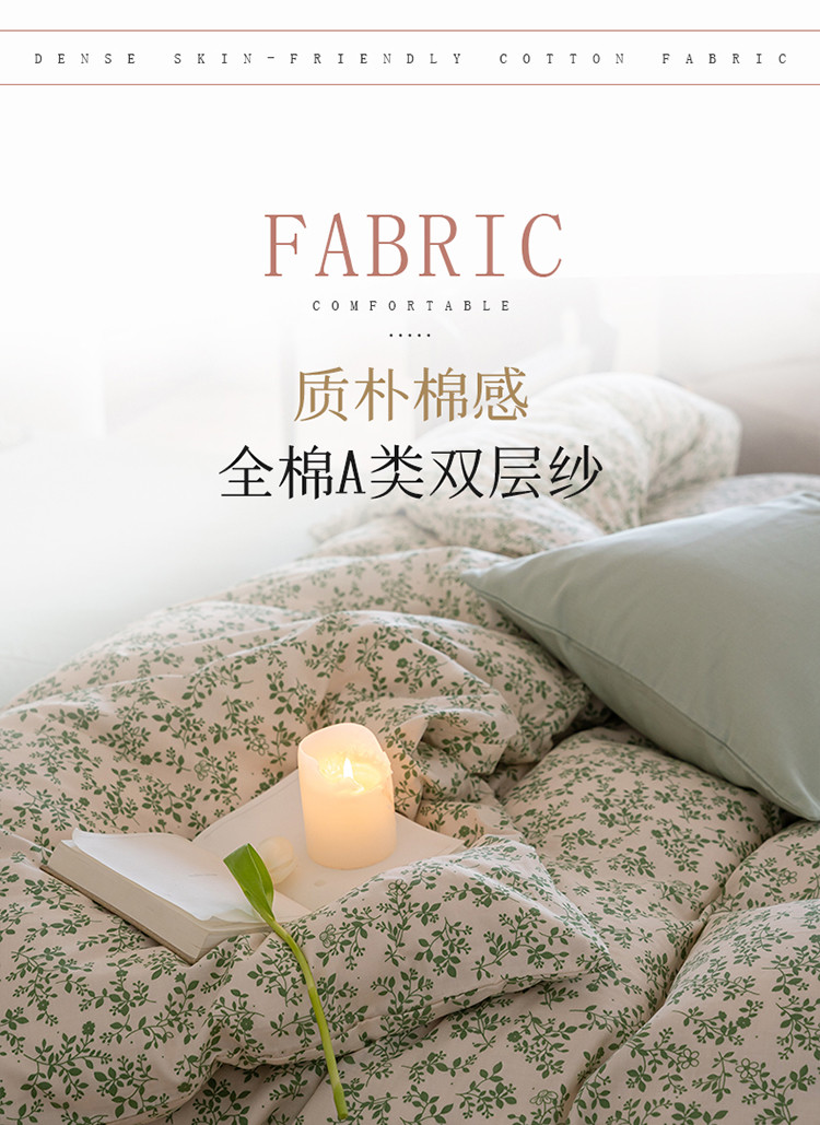 当前位置: 91家纺网 > 商品网购 > 床品套件 > 四件套 > 全棉普通四件套 > 2023时光里 春夏A类双层纱 四件套 拈花绿