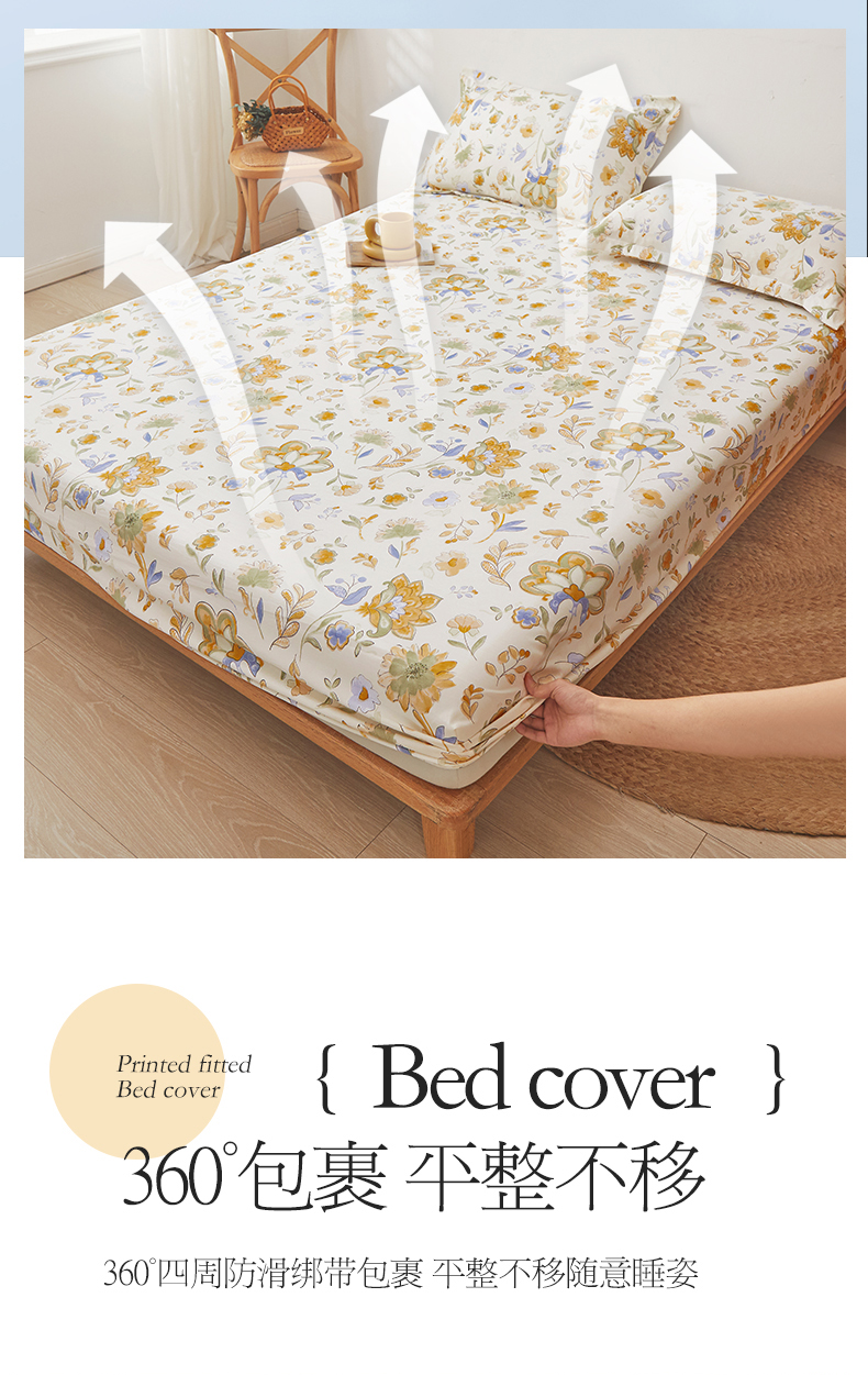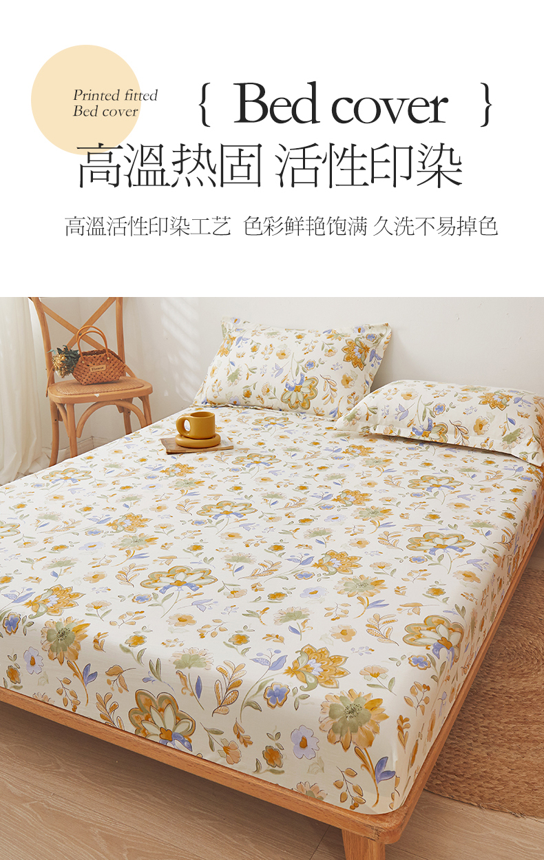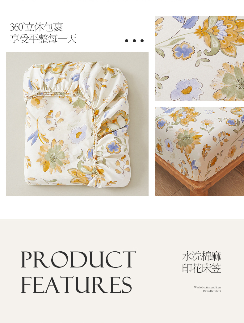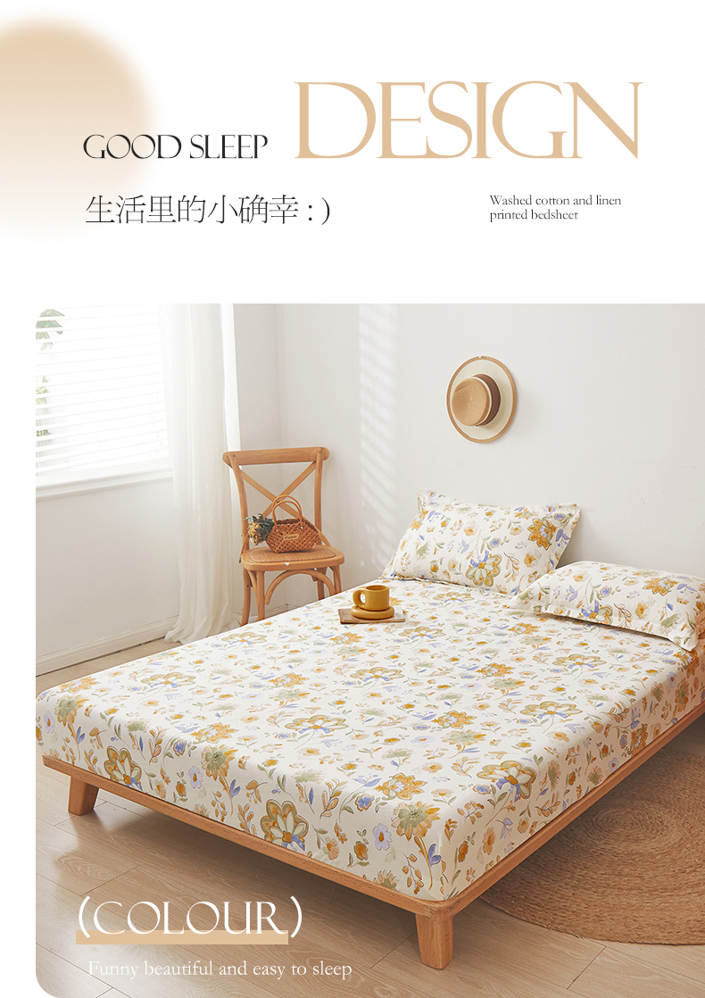 新款水洗棉麻防尘抗菌单层床笠全包床罩 太阳花