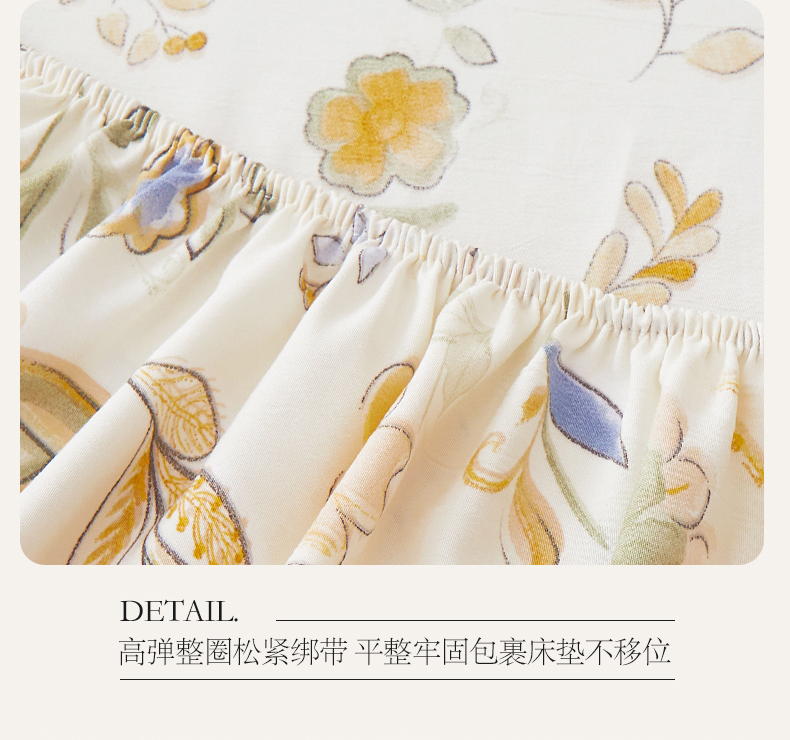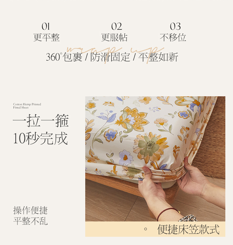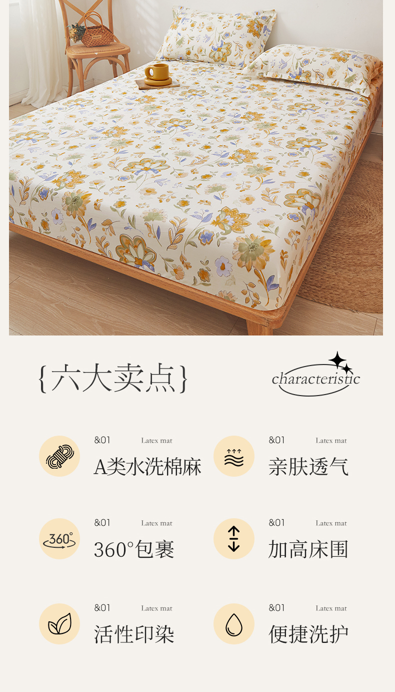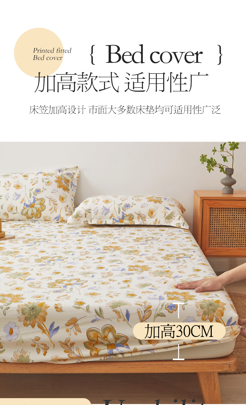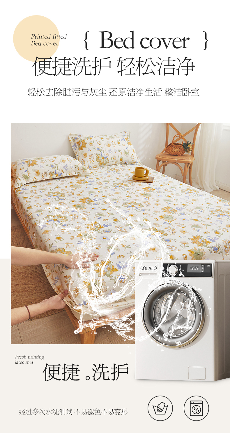 新款水洗棉麻防尘抗菌单层床笠全包床罩 太阳花