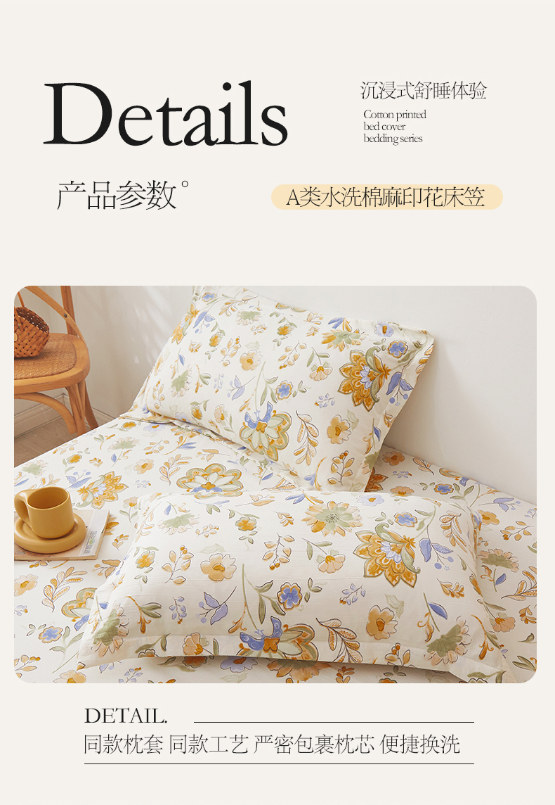 • 91家纺网 家纺一手货源 找家纺 新款水洗棉麻防尘抗菌单层床笠全包床罩 太阳花