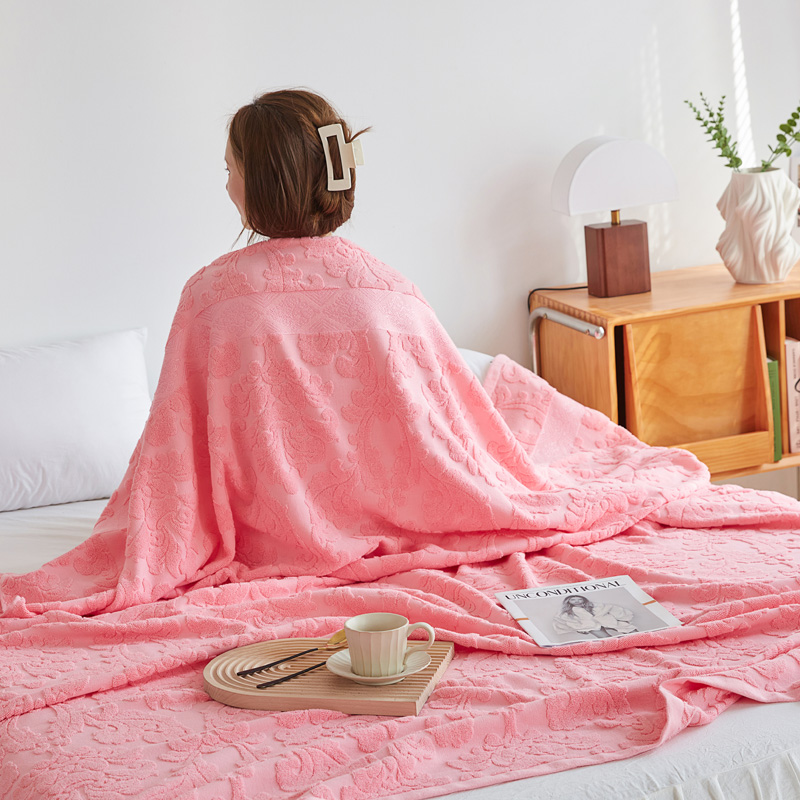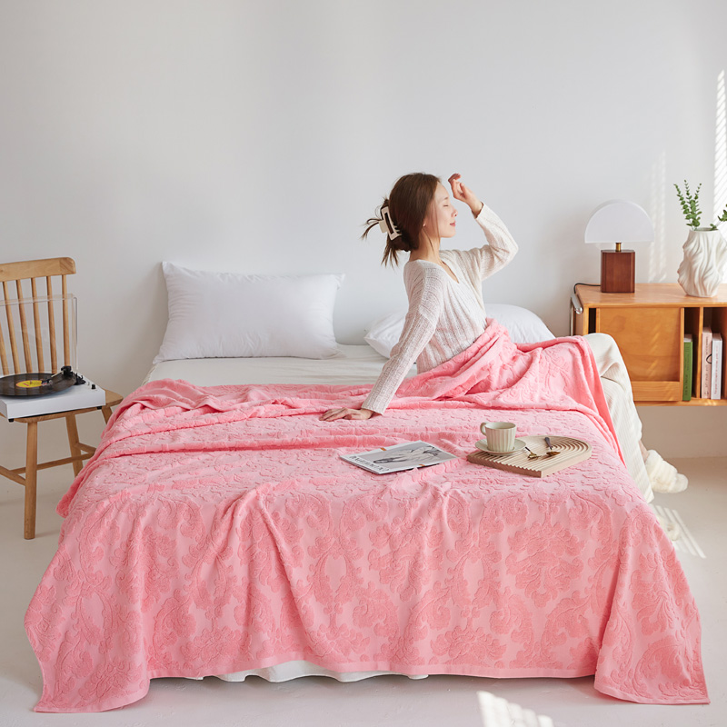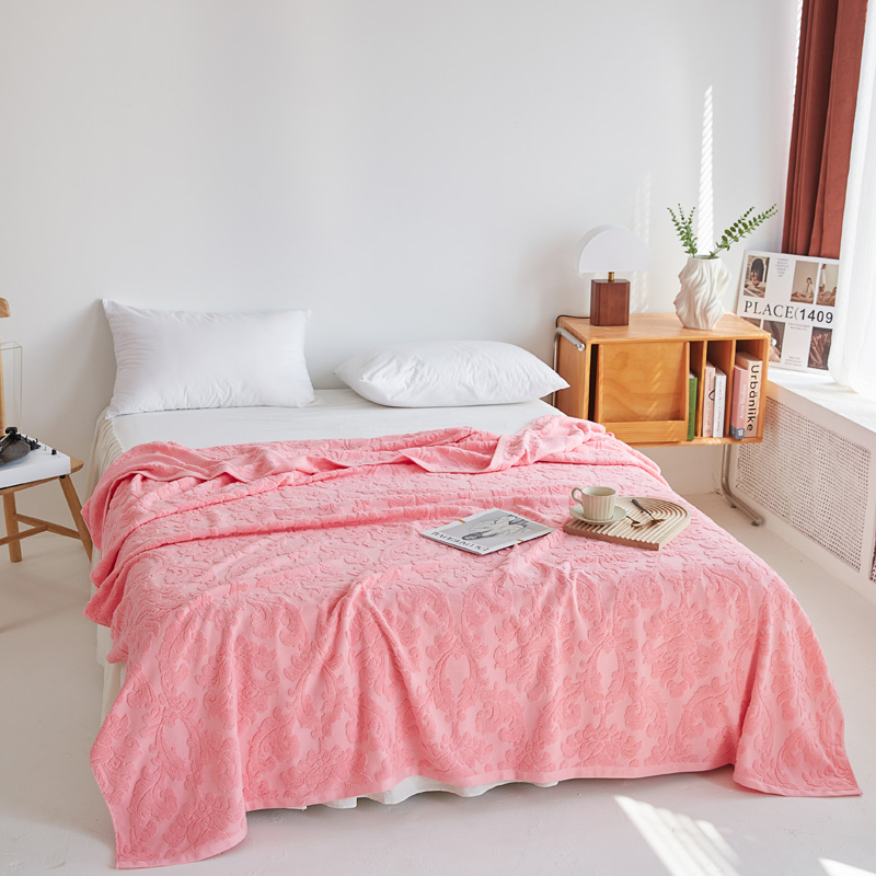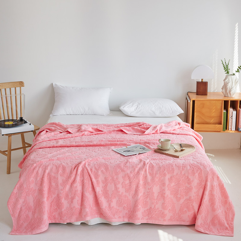 (总)乐家毛巾被(工厂自产自销) 2024新款全棉镂空毯系列,蓝色,浅灰色,深灰色,青色,粉色,黄色