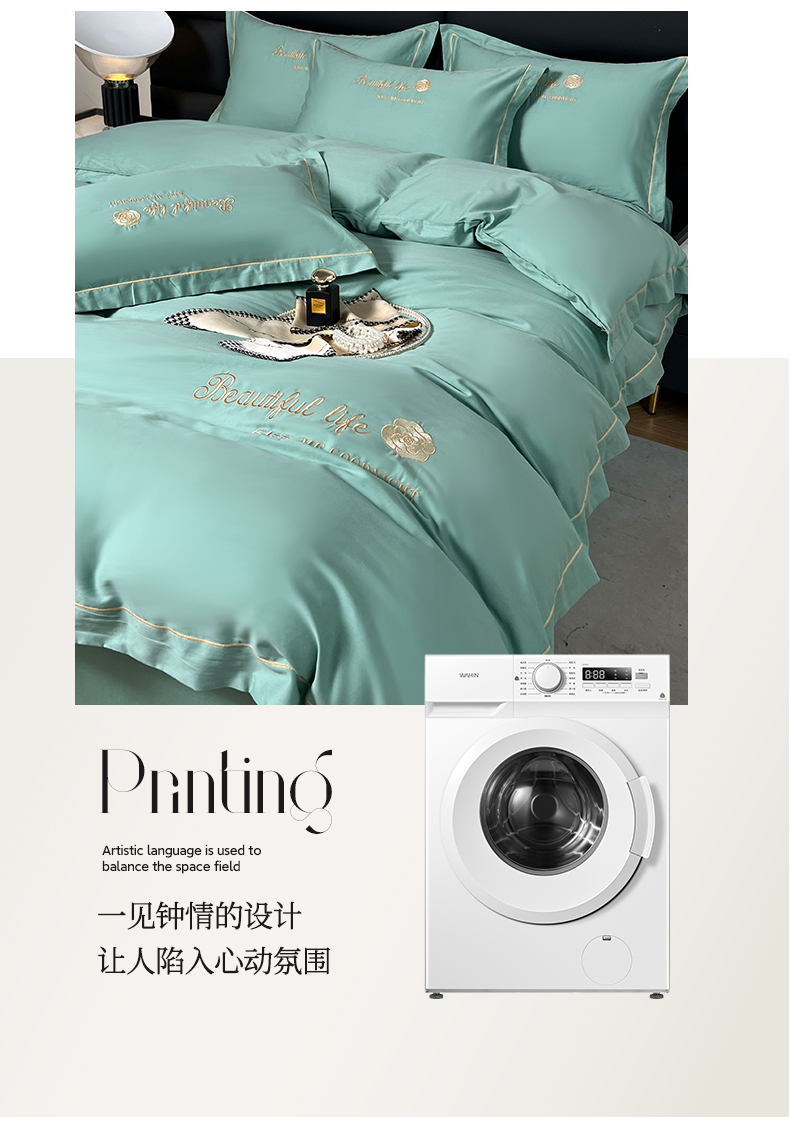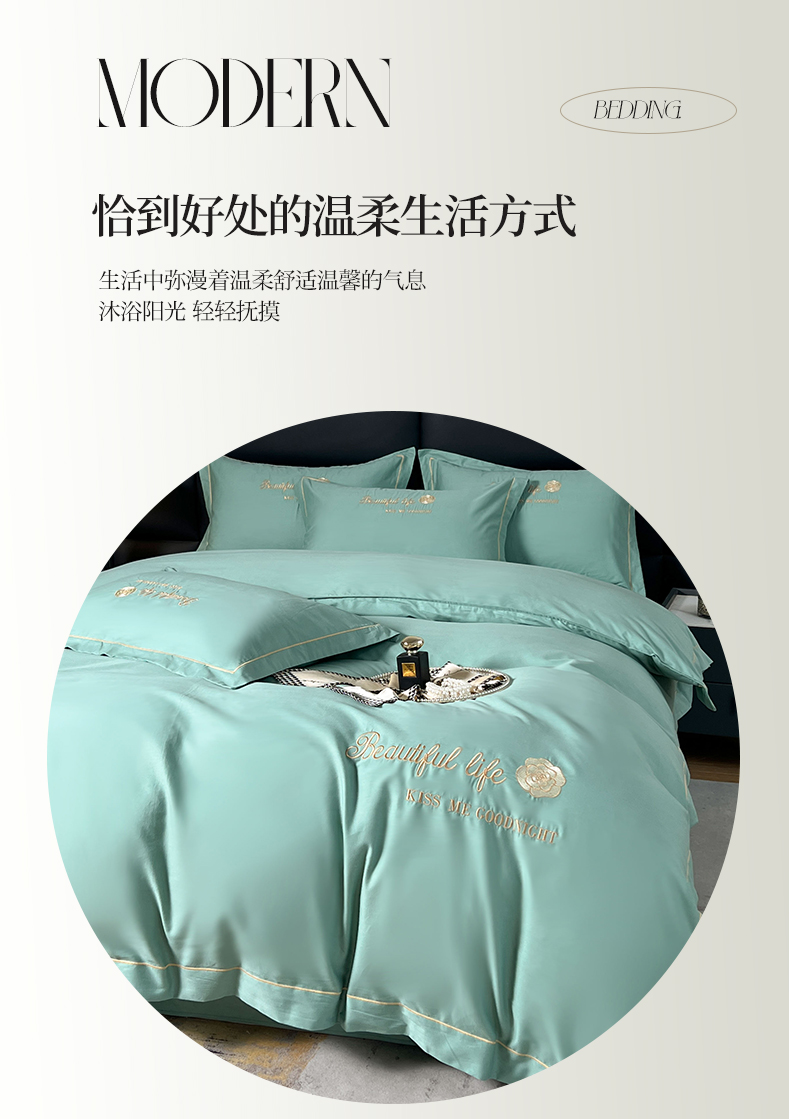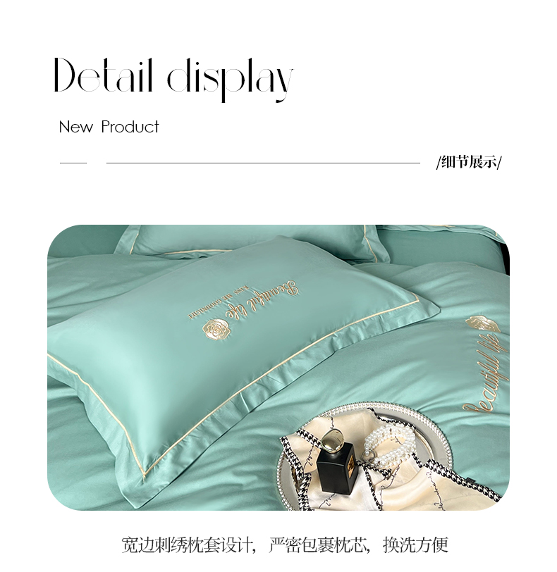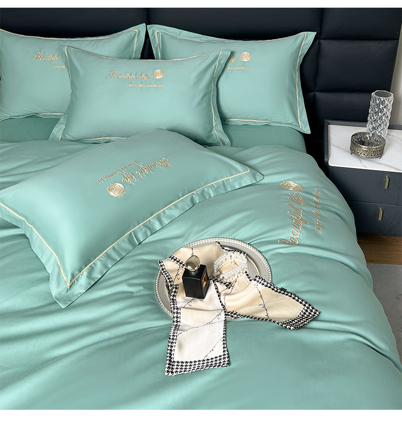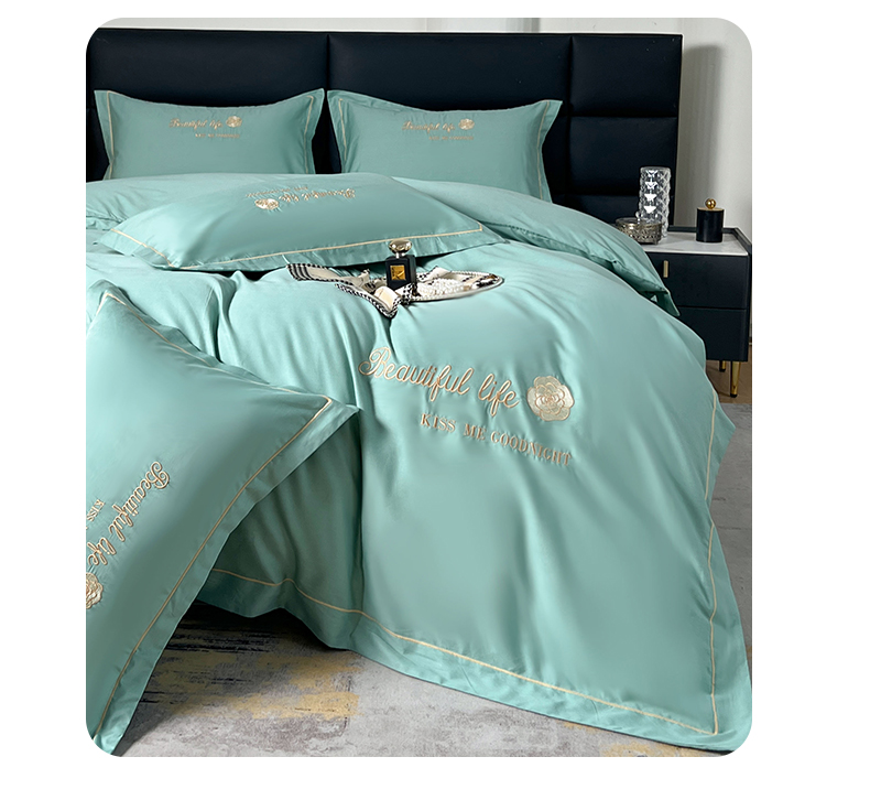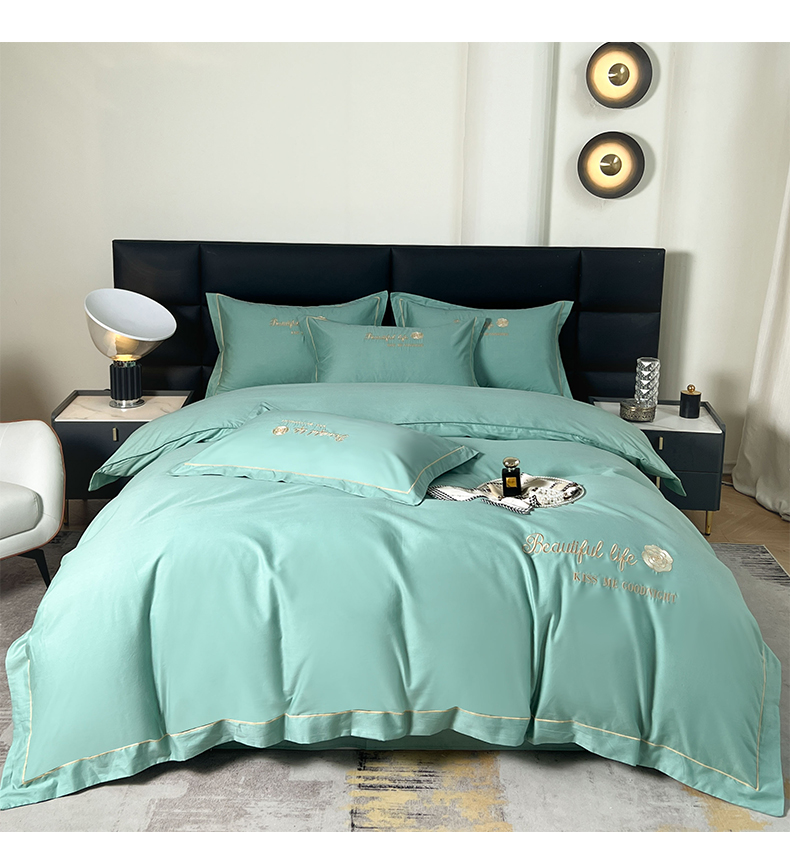 商品名称:盛馨2023新款轻奢高支高密长绒棉全棉床单床笠刺绣四件套 BF-湖绿