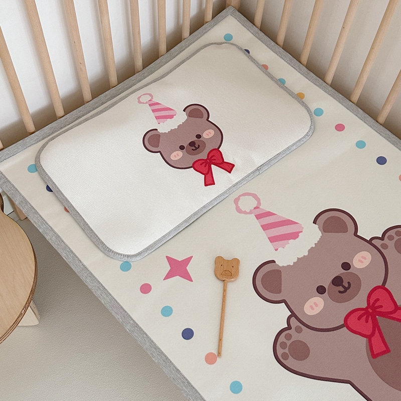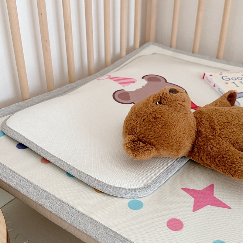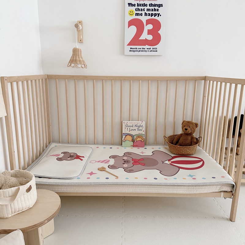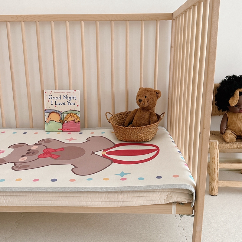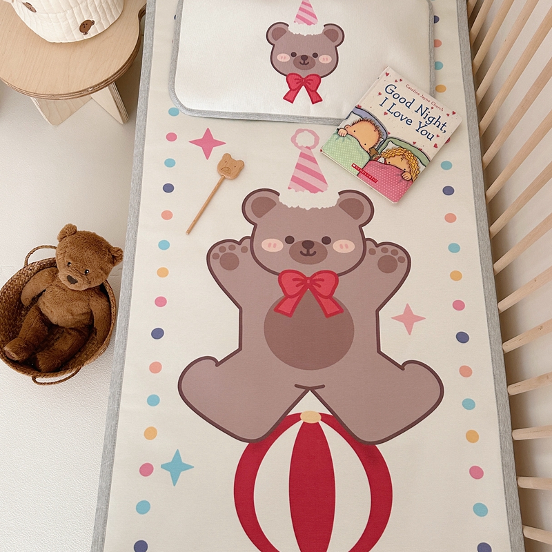 (总)橘滋 2025夏日新款高端A类原创设计婴儿童趣卡通数码印花冰丝席凉席-床席床笠,大眼熊仔,叠叠乐园,蝴蝶结兔兔,欢乐曲奇,木马小熊,太空冒险,熊猫胖达