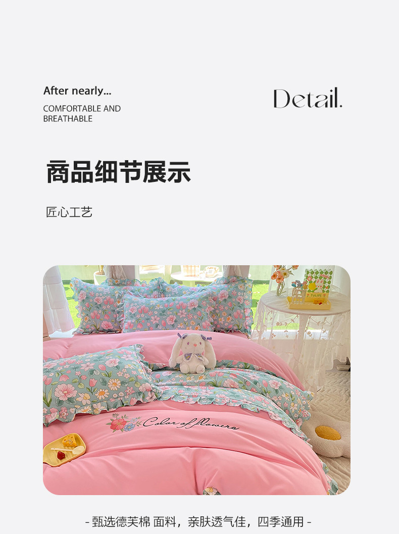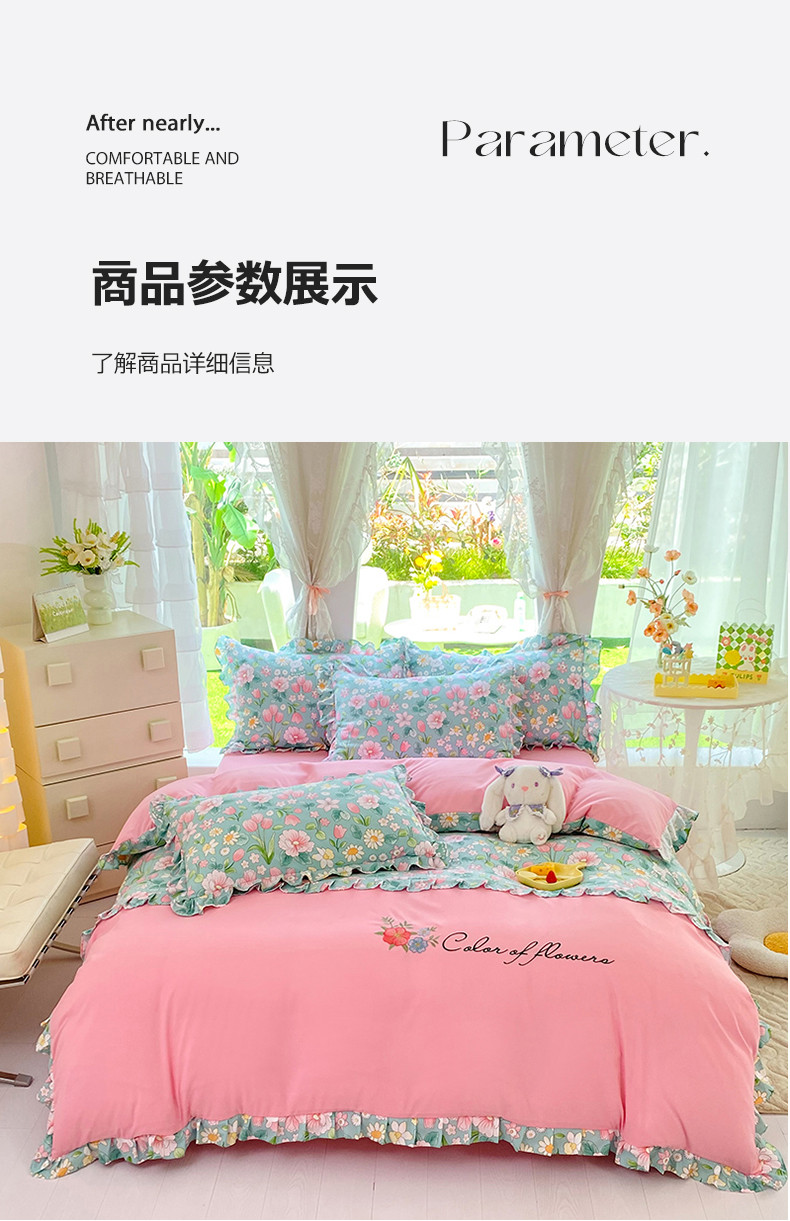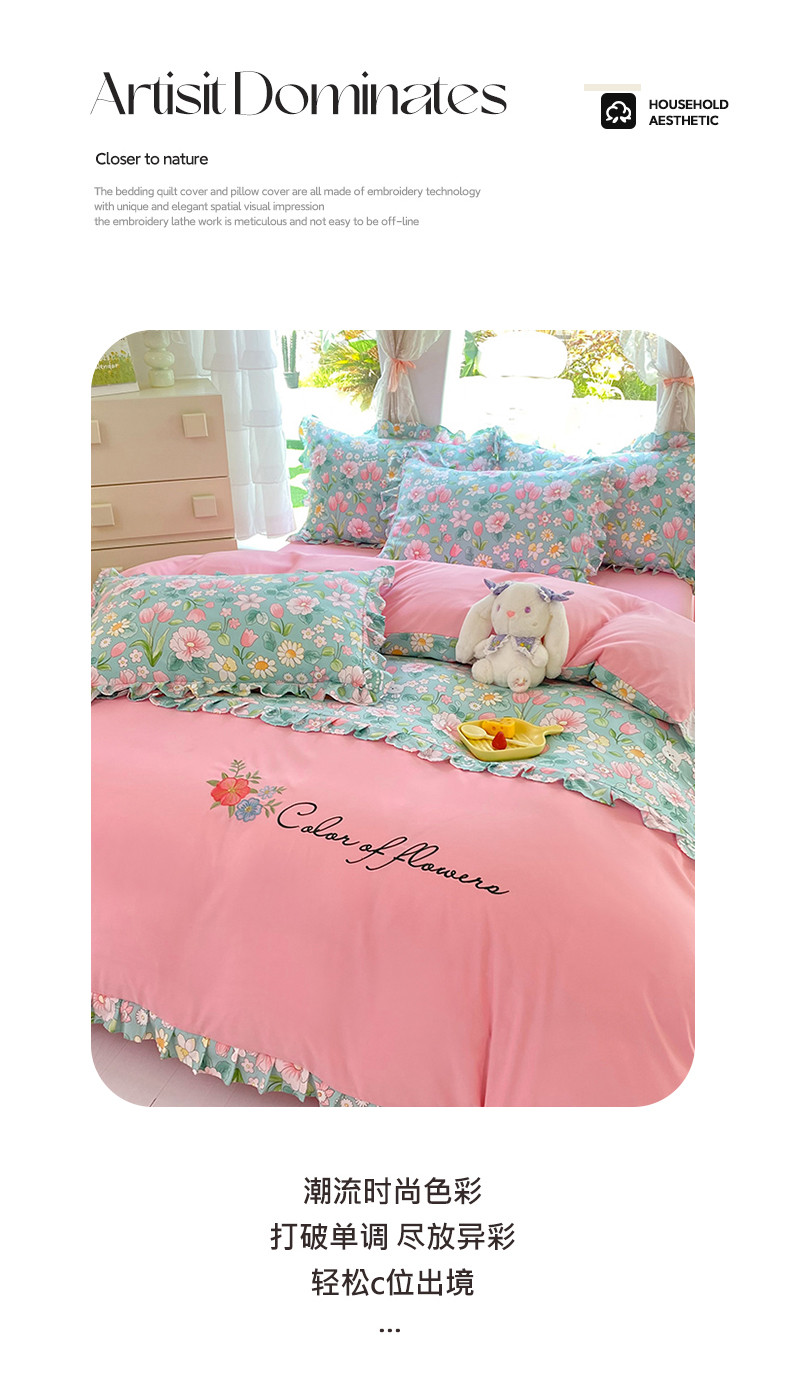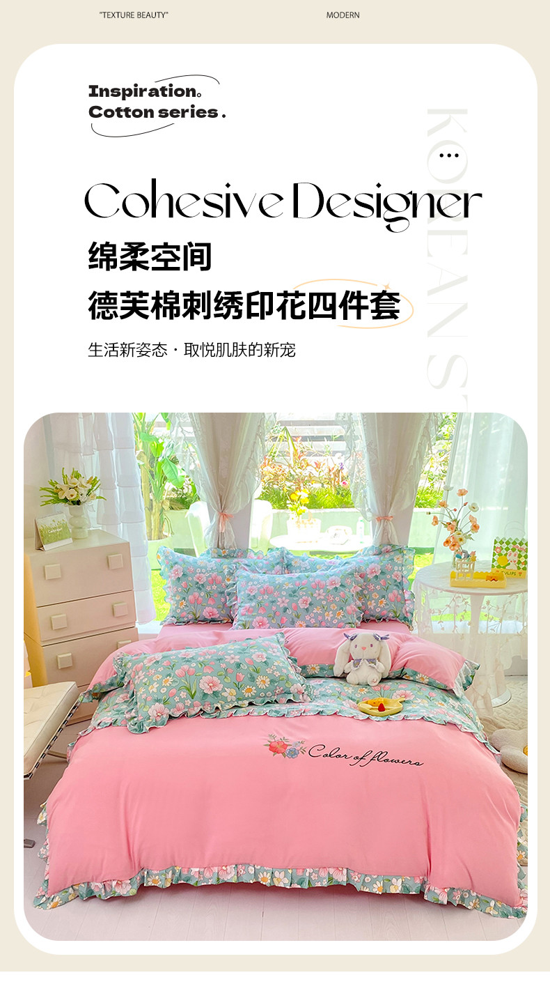 当前位置: 91家纺网 > 商品网购 > 床品套件 > 四件套 > 水洗棉四件套 > 易辰美 2024新款双层纱水洗磨毛德芙棉绣花四件套如沐春风