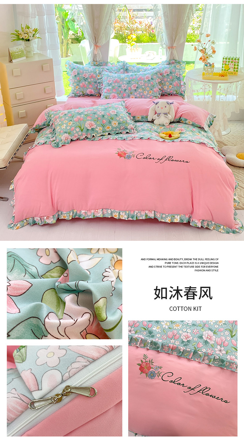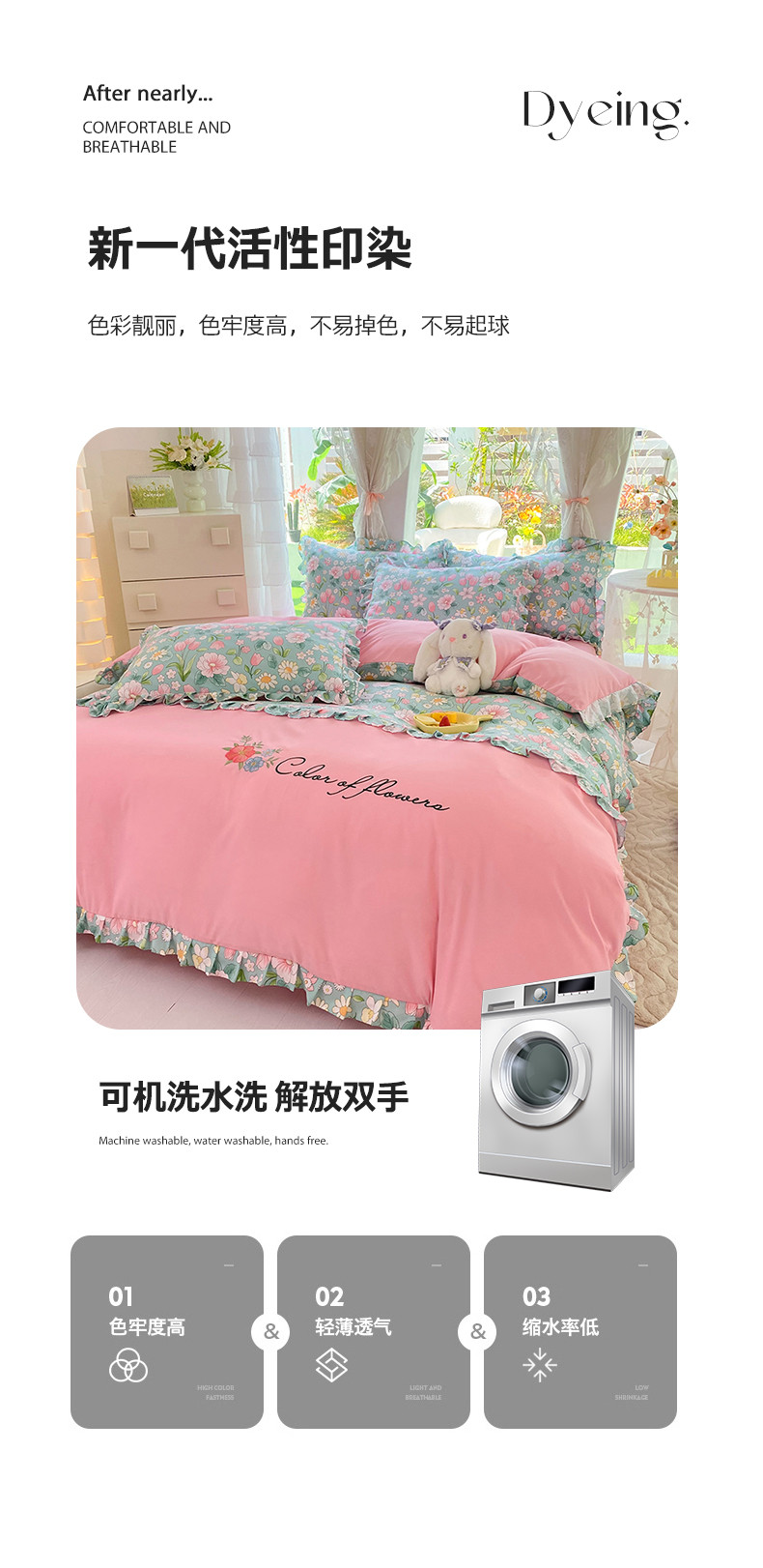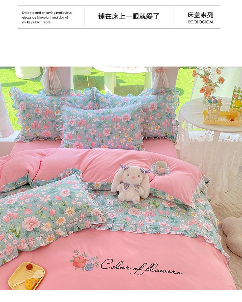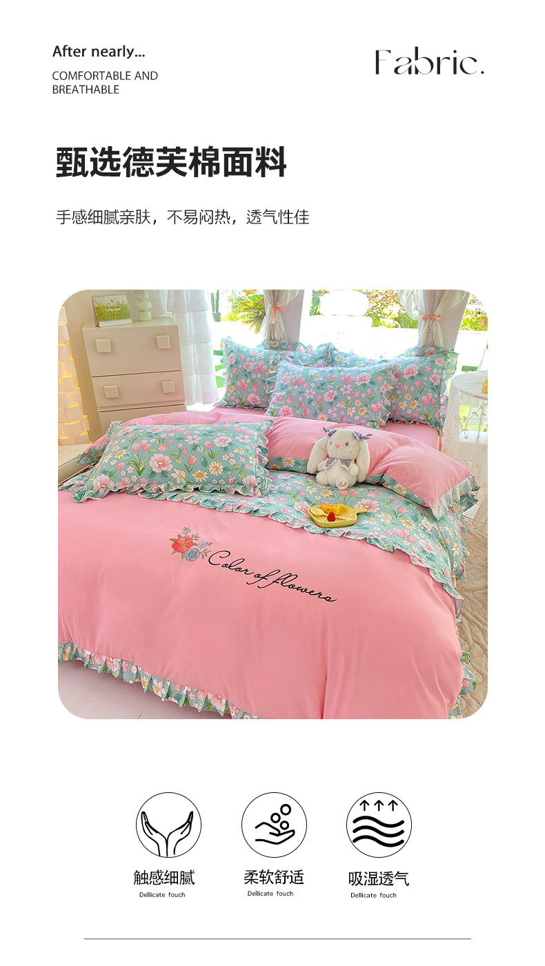 当前位置: 91家纺网 > 商品网购 > 床品套件 > 四件套 > 水洗棉四件套 > 易辰美 2024新款双层纱水洗磨毛德芙棉绣花四件套如沐春风