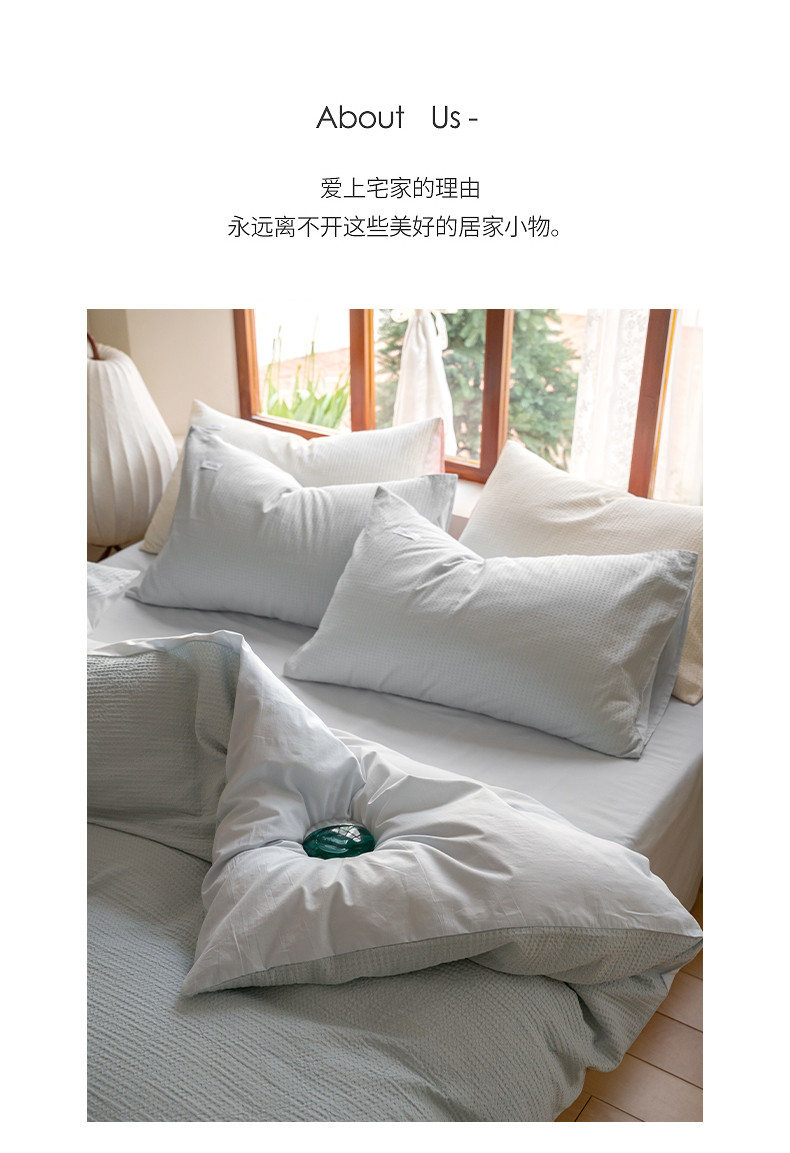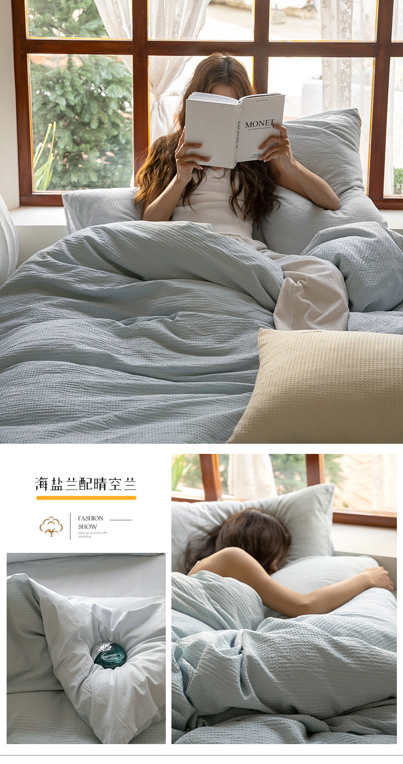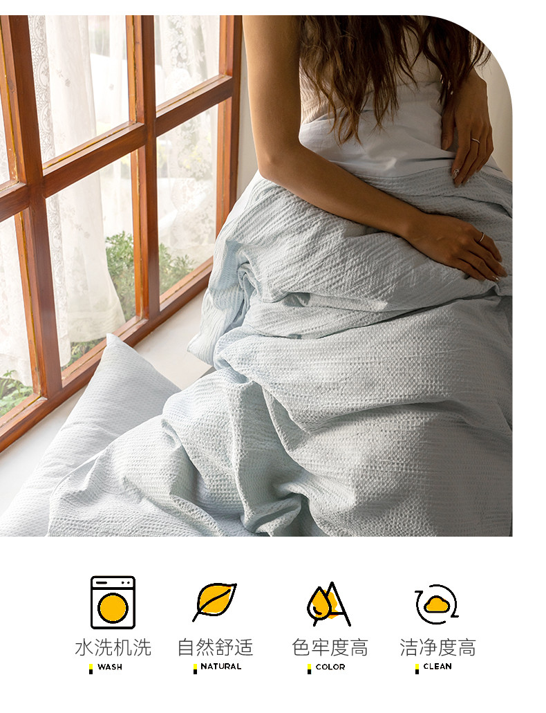 当前位置: 91家纺网 > 商品网购 > 床品套件 > 四件套 > 全棉普通四件套 > 时光里 2023新款60支全棉华夫格四件套 海盐兰配晴空兰
