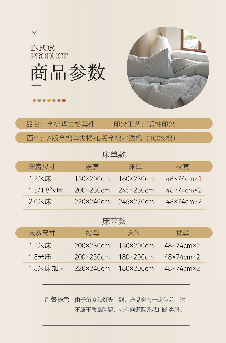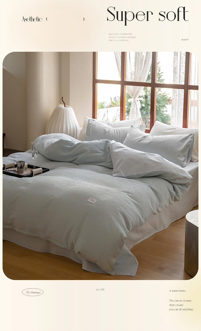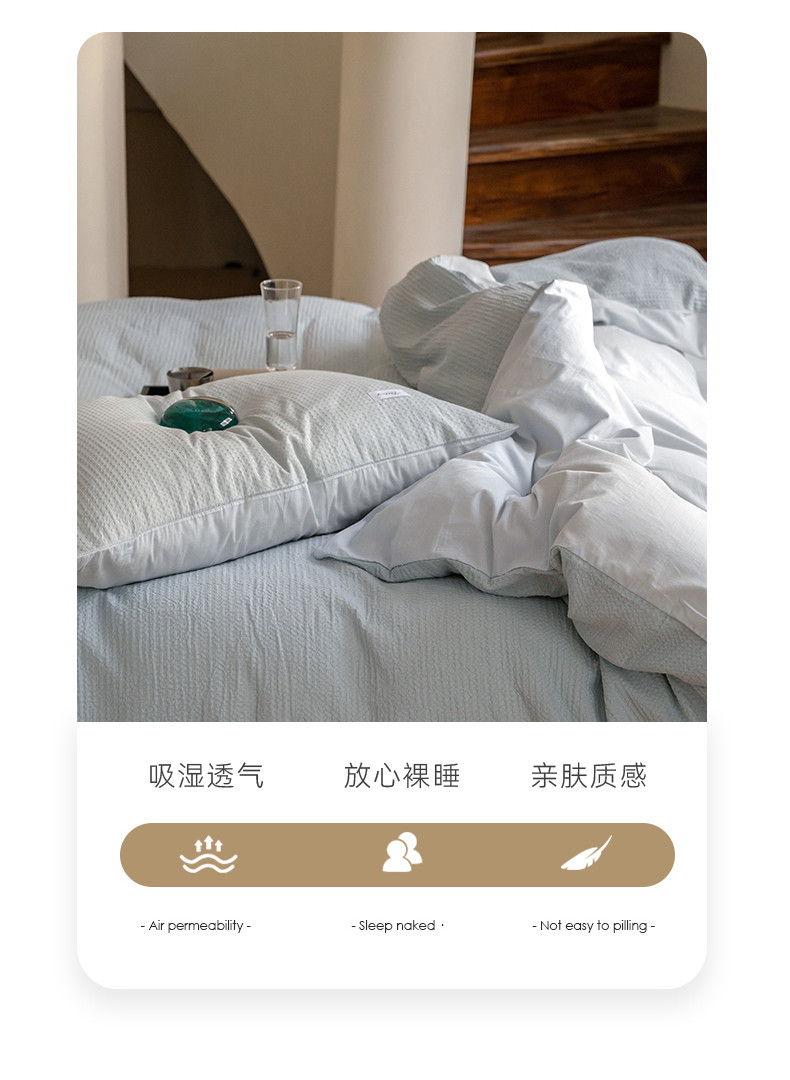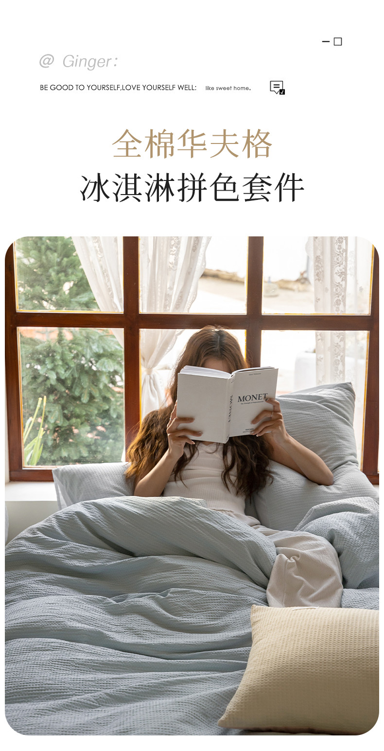 当前位置: 91家纺网 > 商品网购 > 床品套件 > 四件套 > 全棉普通四件套 > 时光里 2023新款60支全棉华夫格四件套 海盐兰配晴空兰