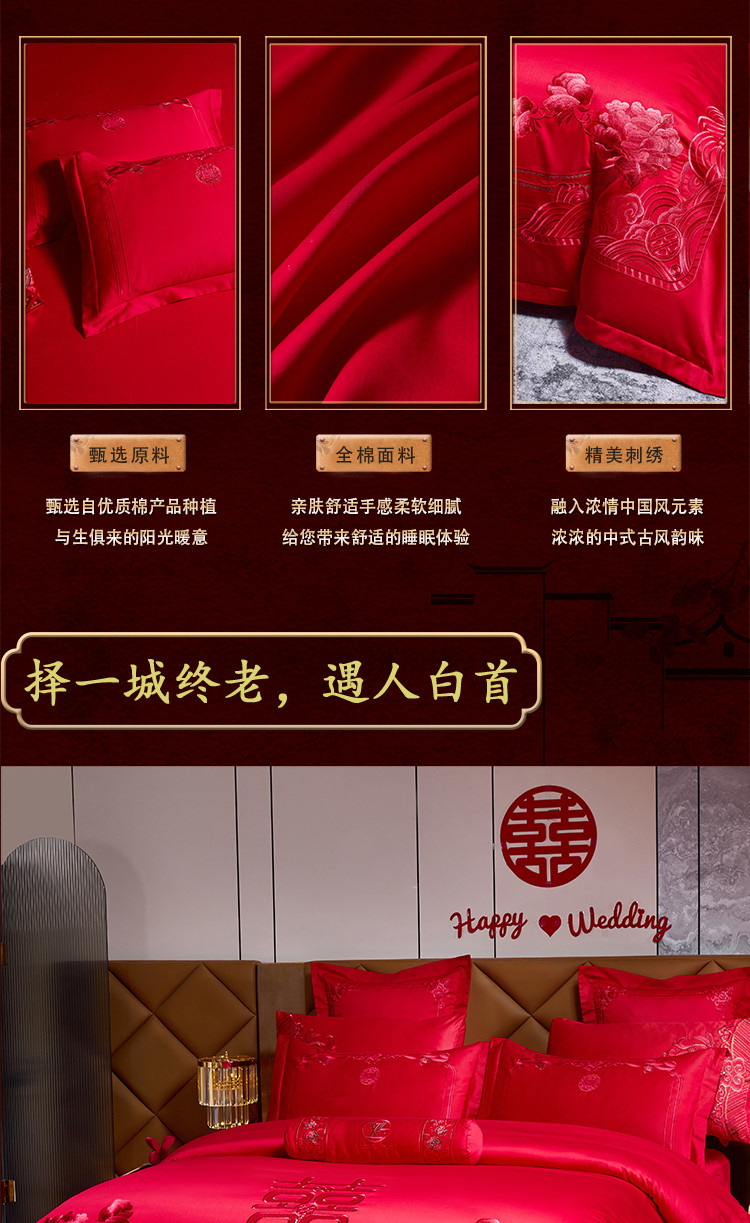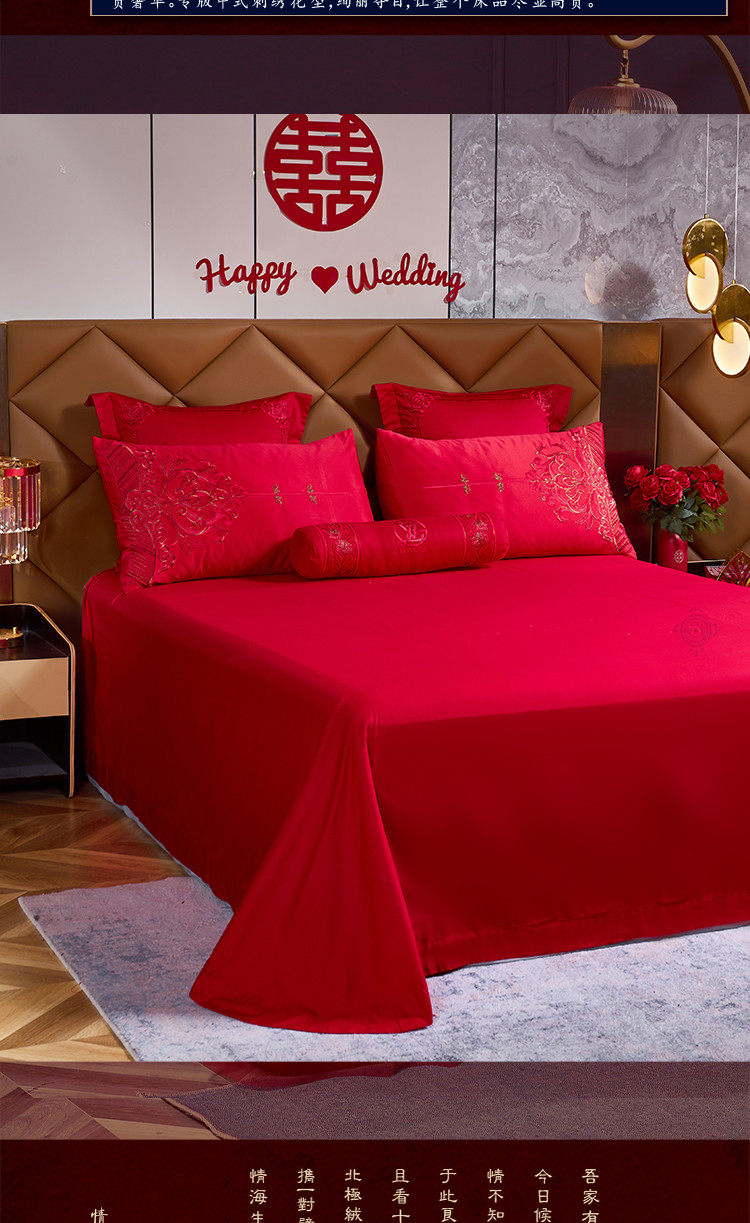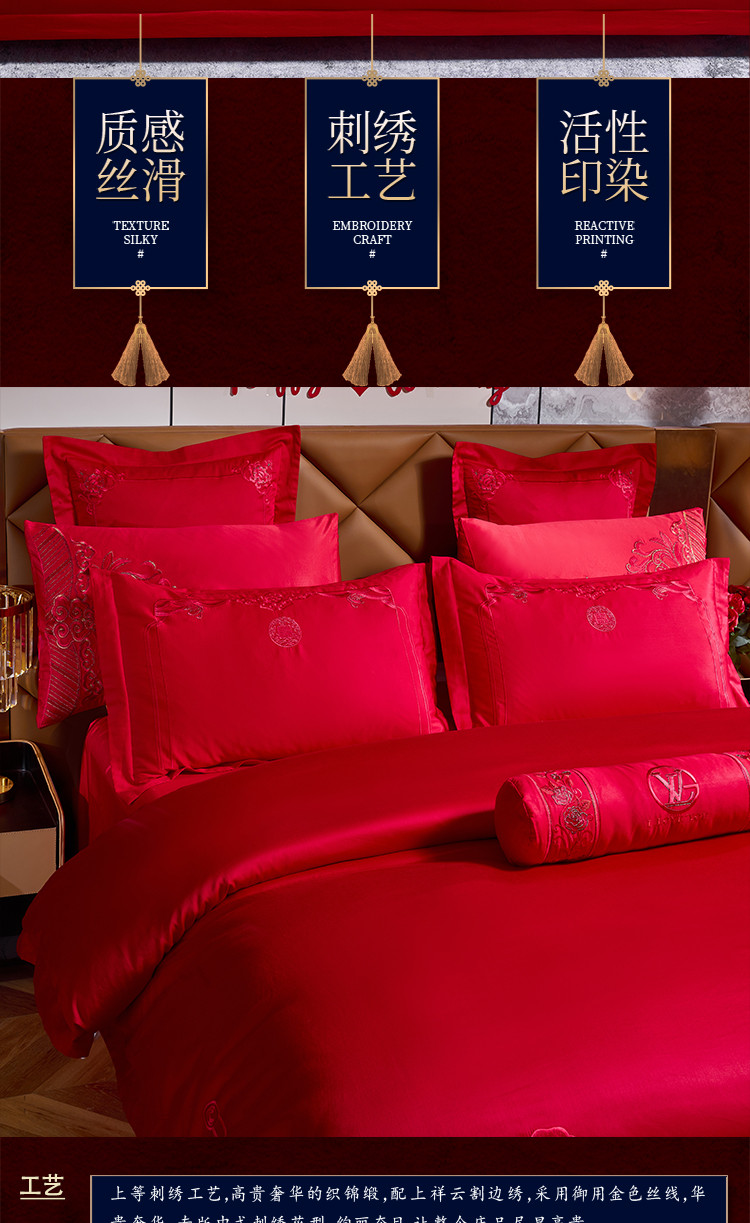 当前位置: 91家纺网 > 商品网购 > 床品套件 > 四件套 > 婚庆四件套 > 振翼 2025新款40s全棉丝光喷气婚庆四件套多件套 国色天香-红