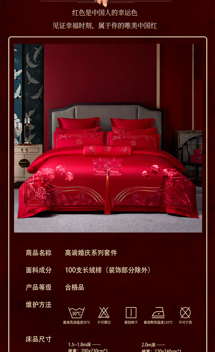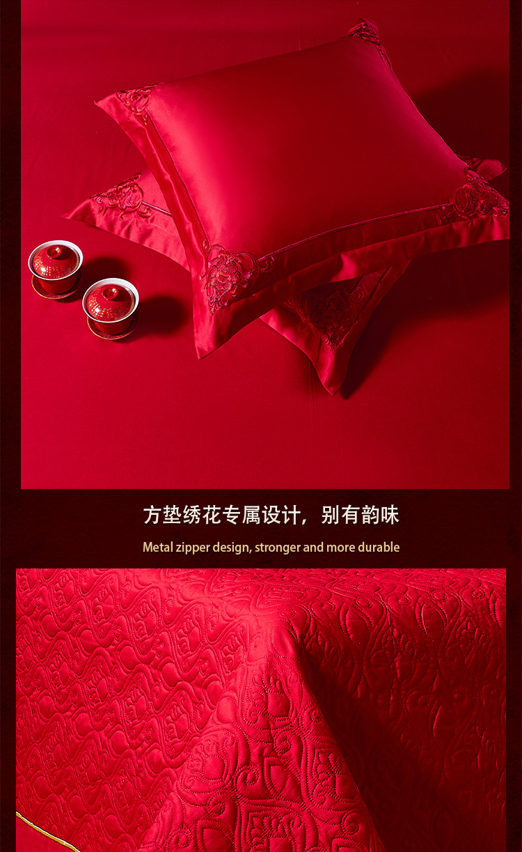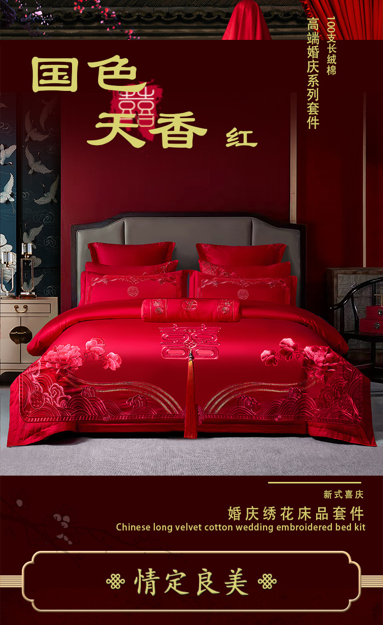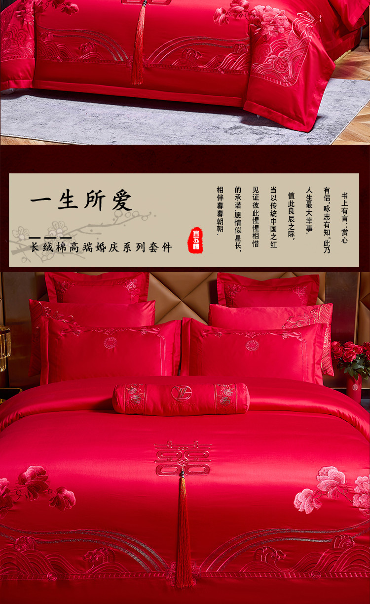 当前位置: 91家纺网 > 商品网购 > 床品套件 > 四件套 > 婚庆四件套 > 振翼 2025新款40s全棉丝光喷气婚庆四件套多件套 国色天香-红