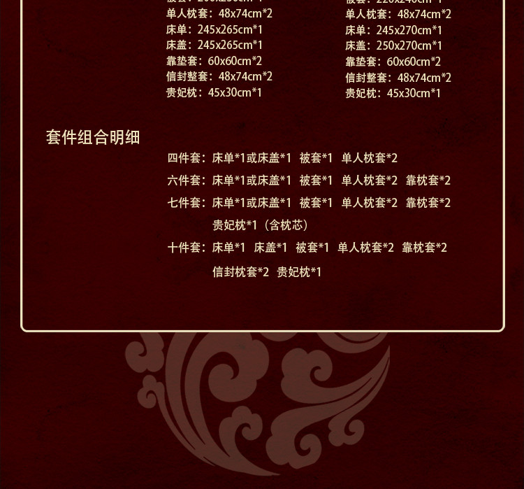 标准床盖式八件套(四件套+方垫一对+信封枕一对) | ¥405.00 |