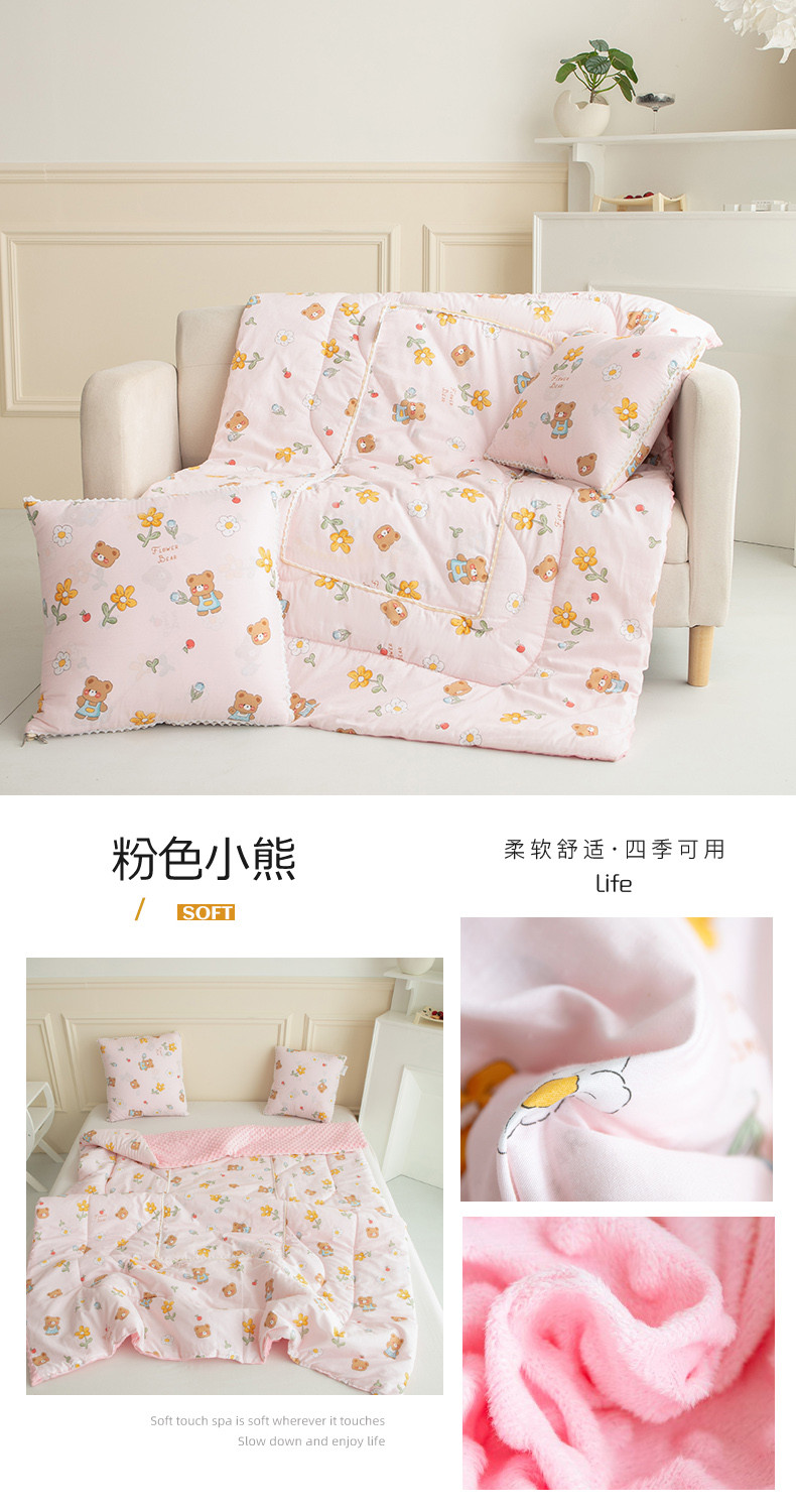 商品名称:翰轩家居 2023新款全棉印花小清新豆豆绒抱枕被 粉色小熊