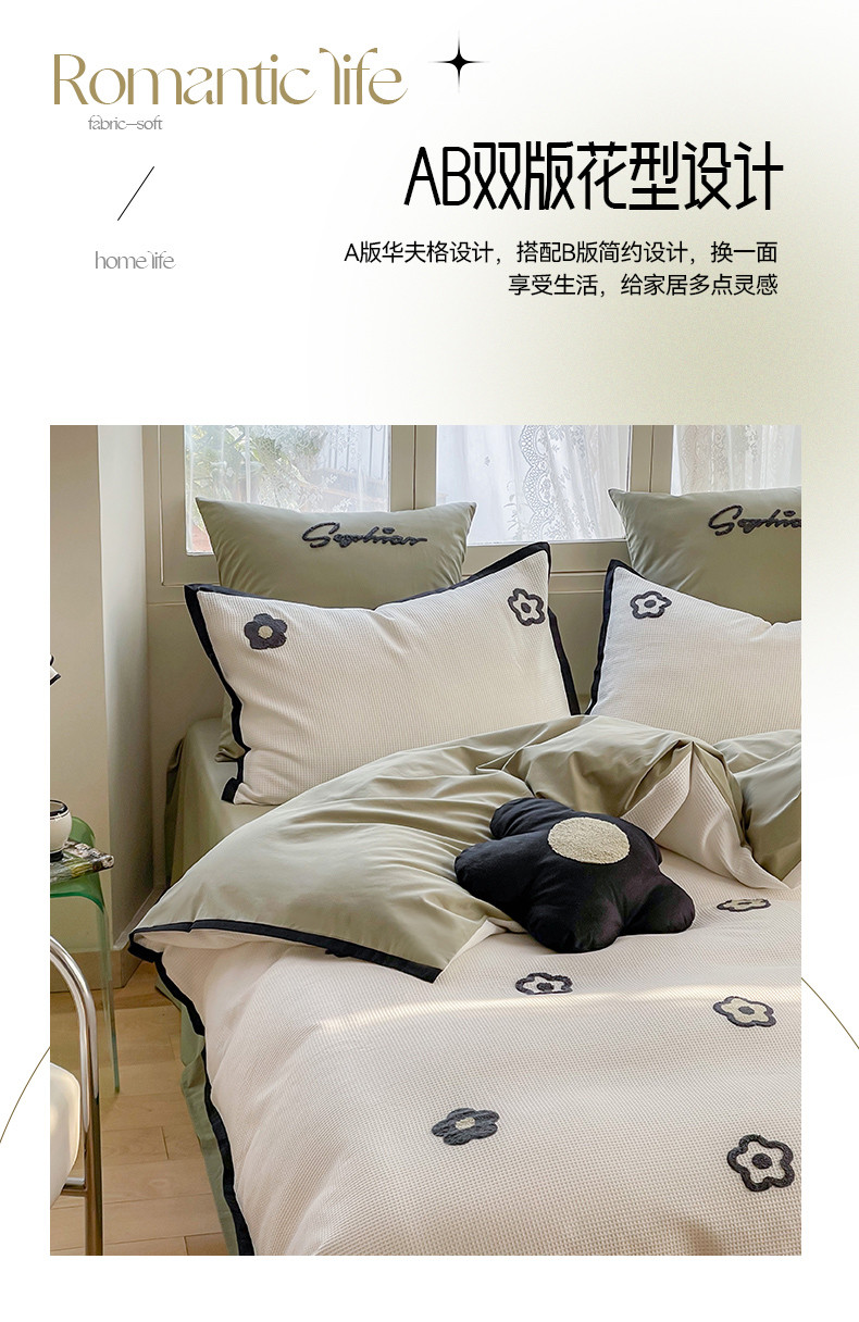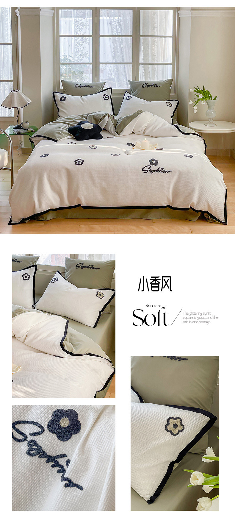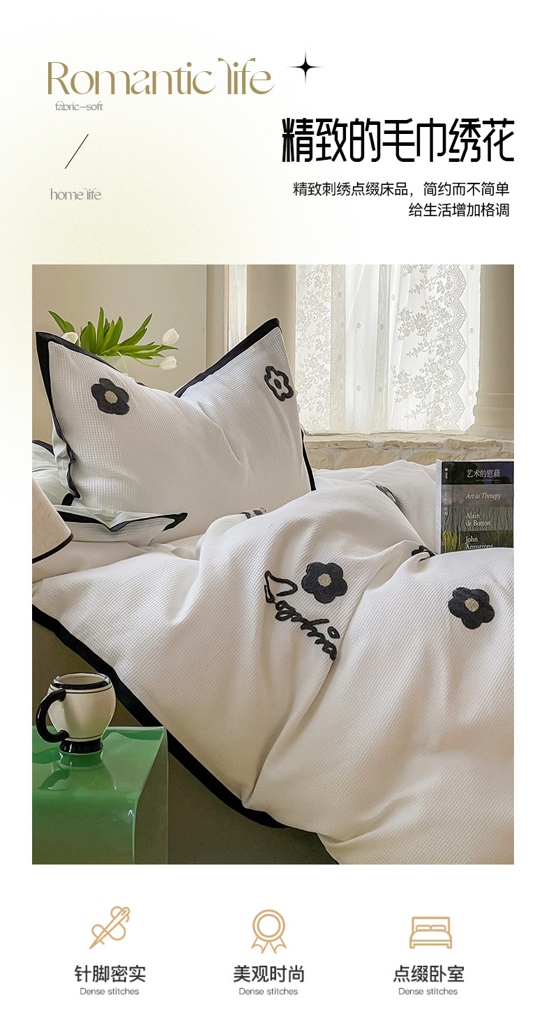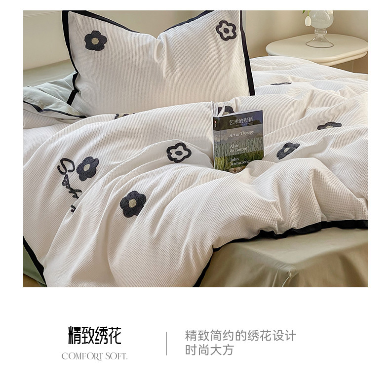(总)FOR TWO 2023新款水洗棉华夫格毛巾绣四件套-小香风