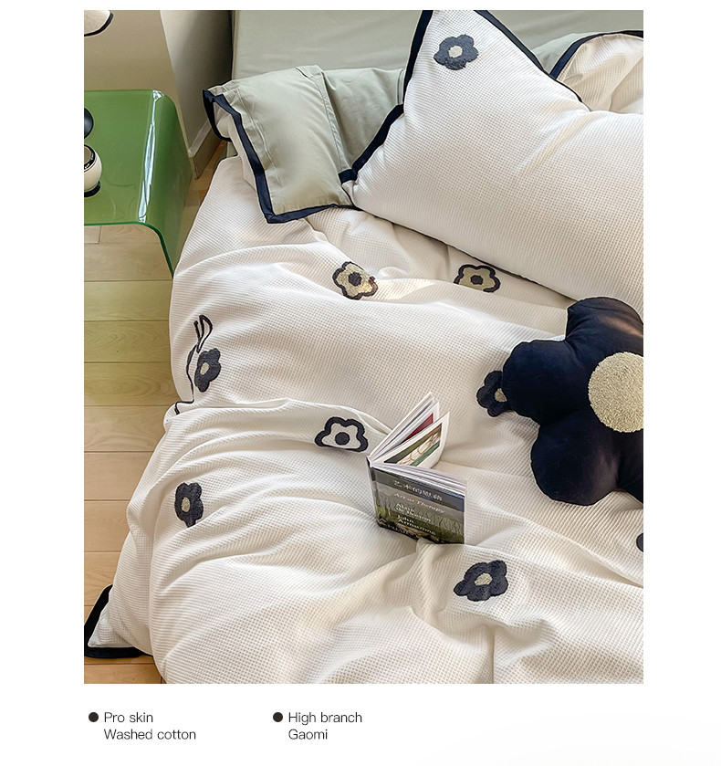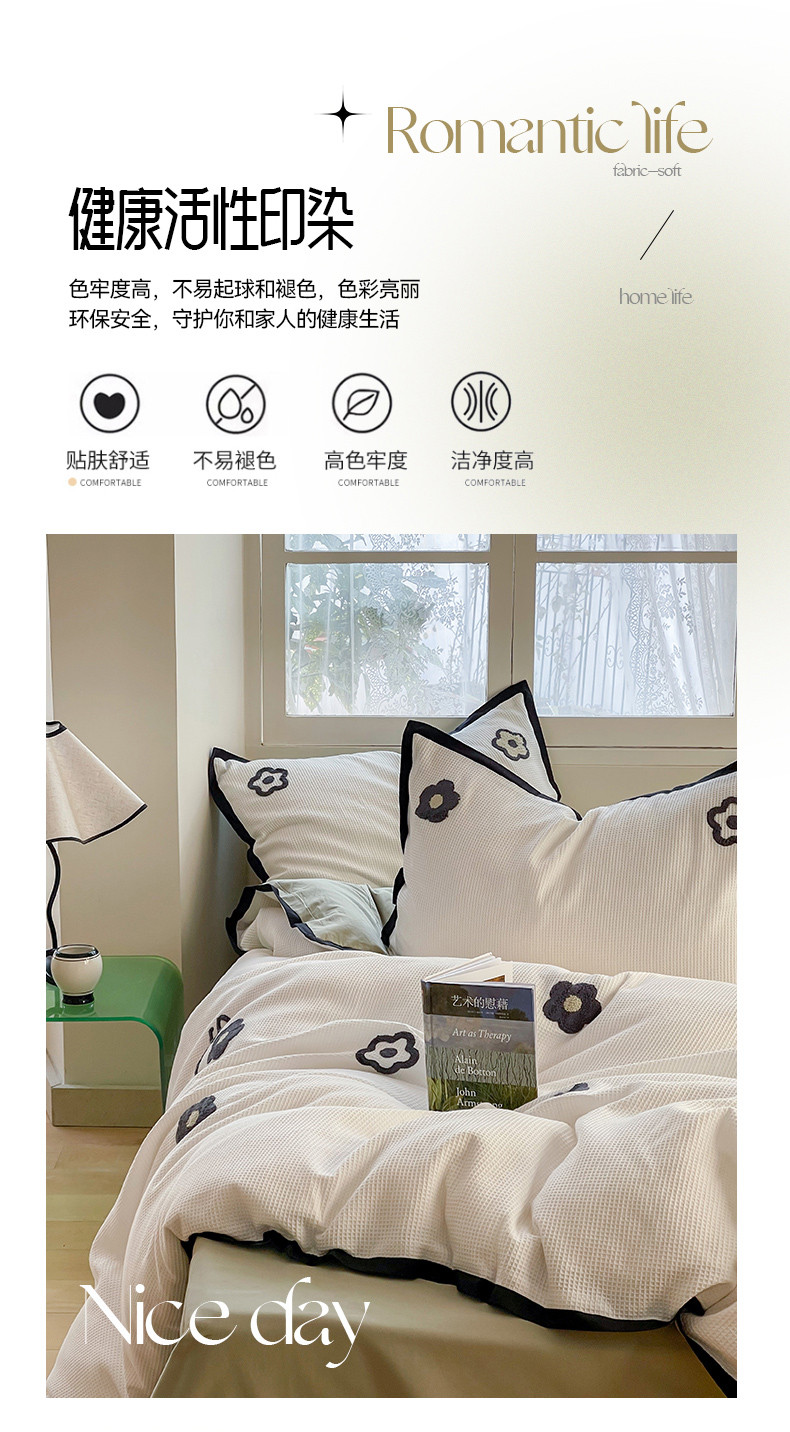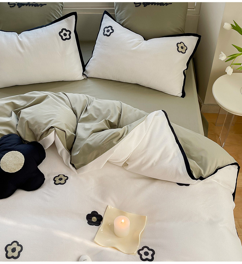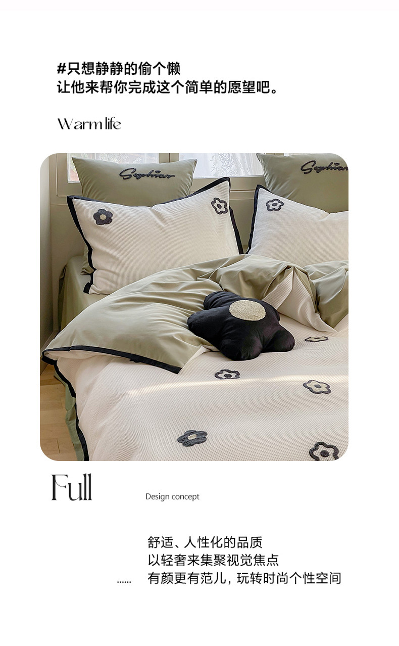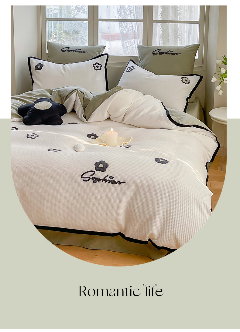 (总)FOR TWO 2023新款水洗棉华夫格毛巾绣四件套-小香风
