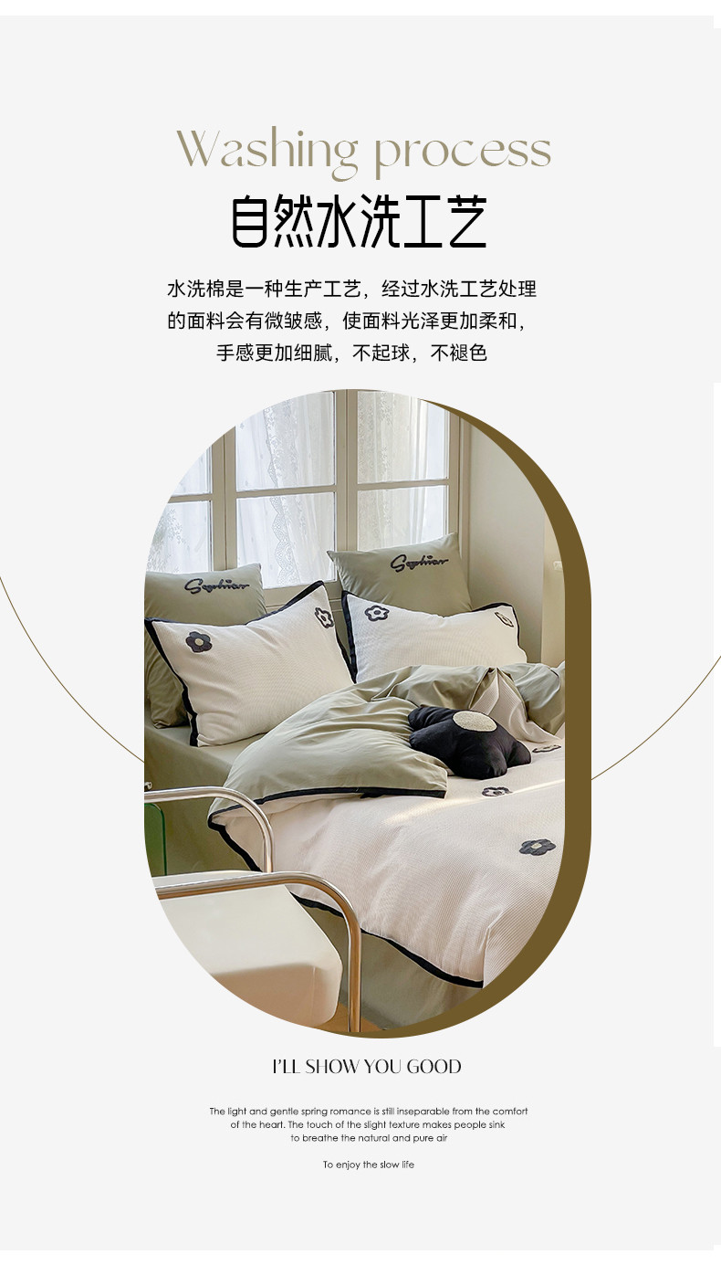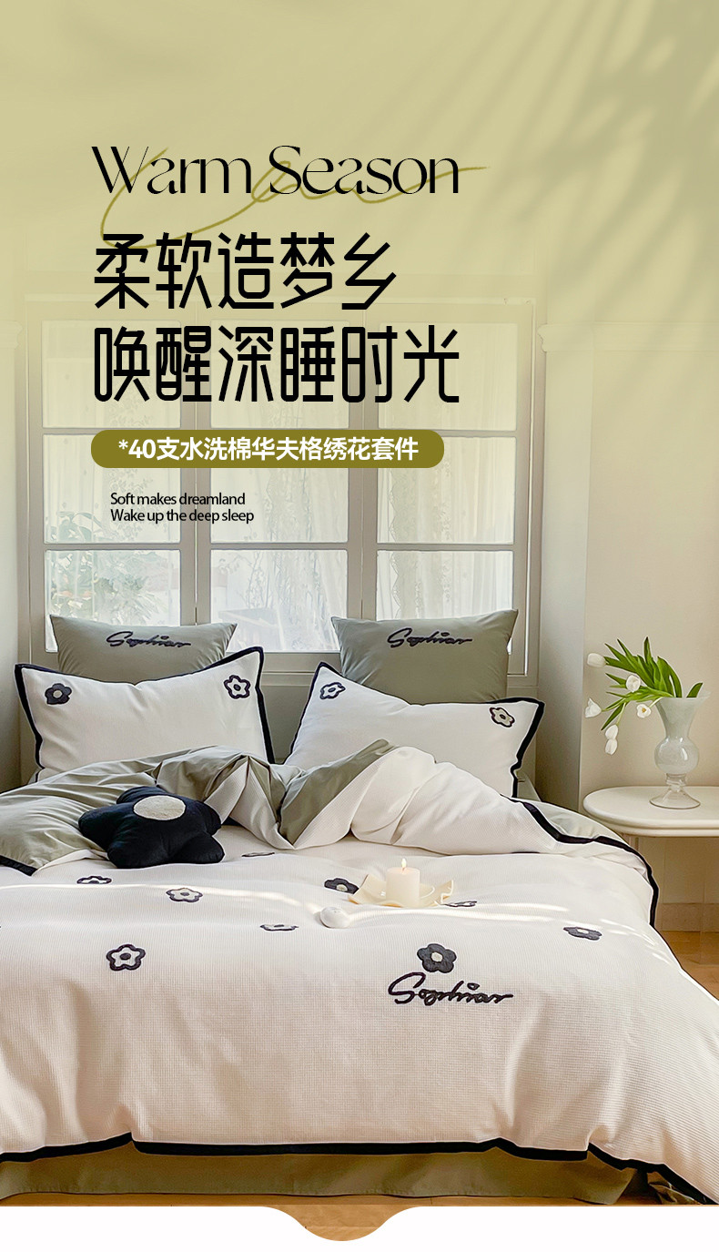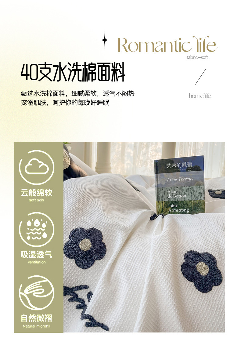 商品名称:(总)FOR TWO 2023新款水洗棉华夫格毛巾绣四件套-小香风
