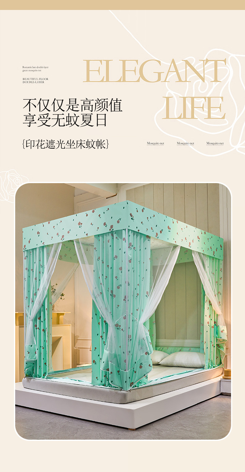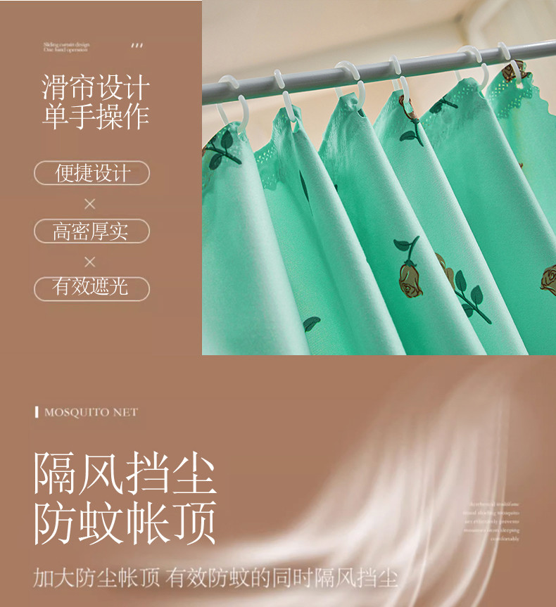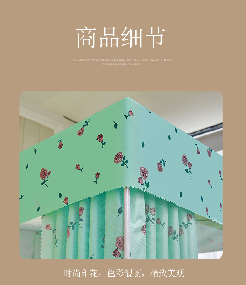 商品名称:千逸虹 2024新款印花遮光坐床回底蚊帐 玫瑰花园
