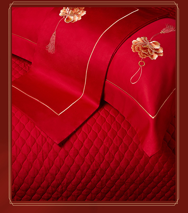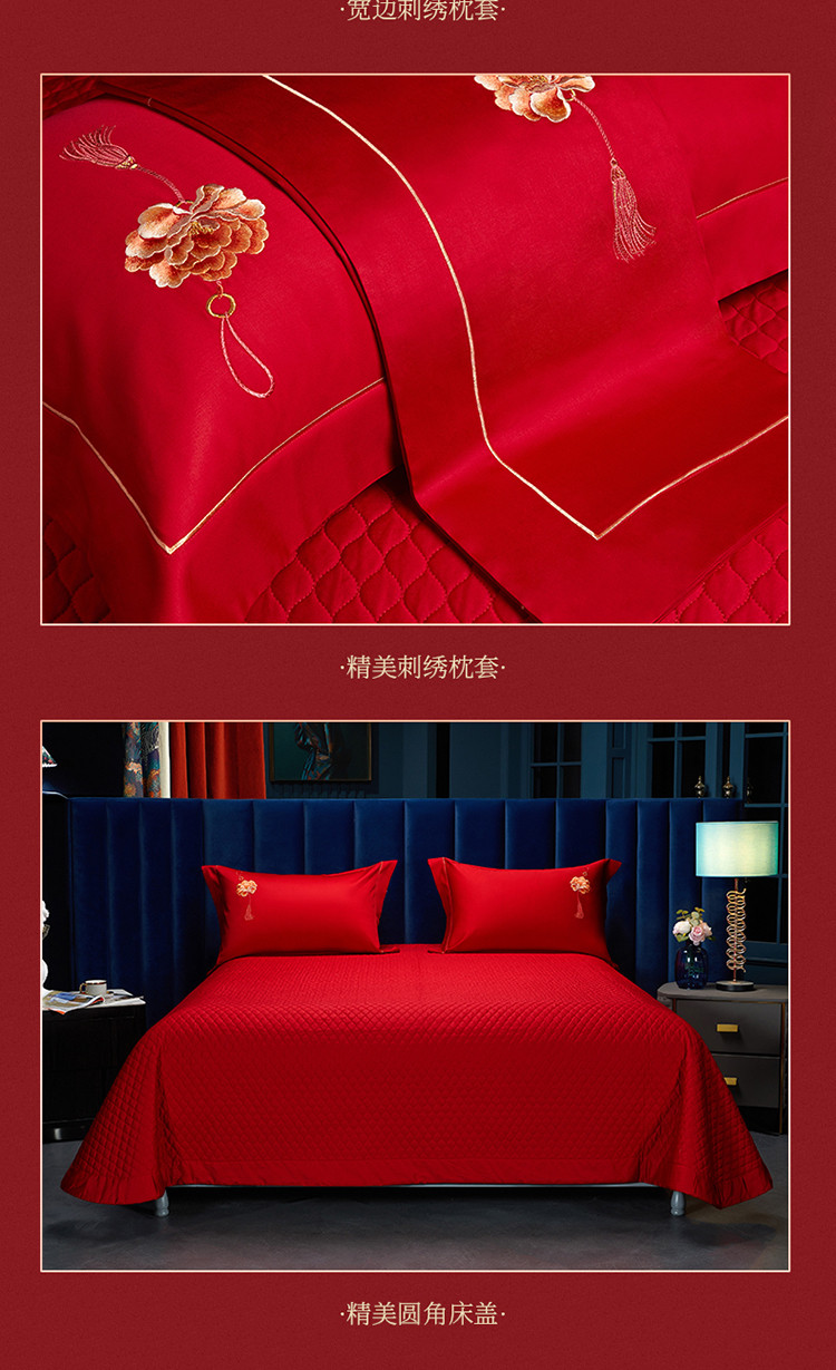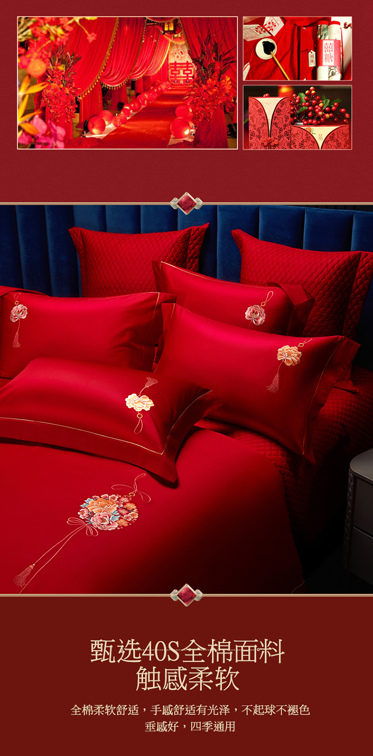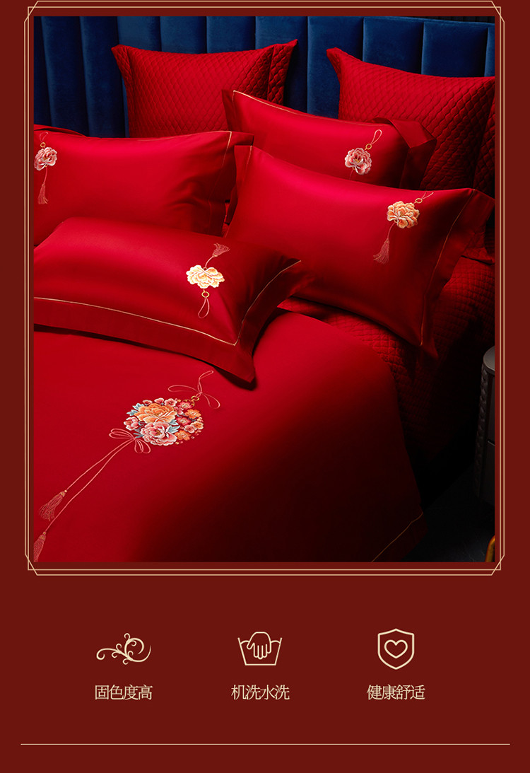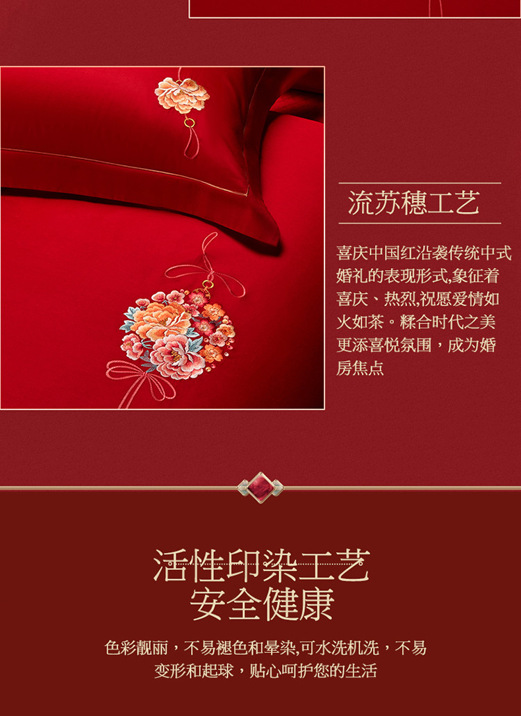 当前位置: 91家纺网 > 商品网购 > 床品套件 > 多件套 > 多件套 > 美娘阁 2023年秋冬新品长绒棉刺绣系列婚庆 四件套/多件套 唯爱