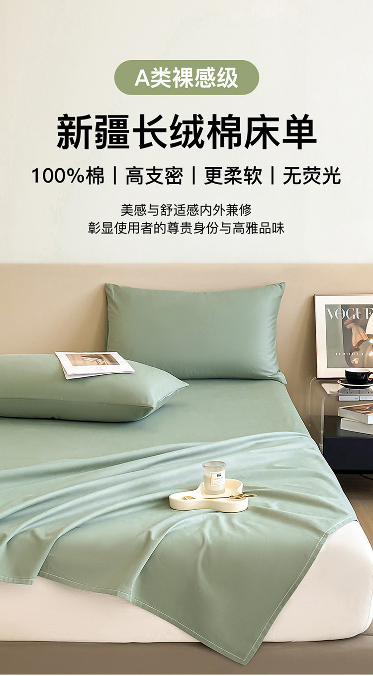 丽美人 2023新款40支纯棉床单 青木绿,青木绿