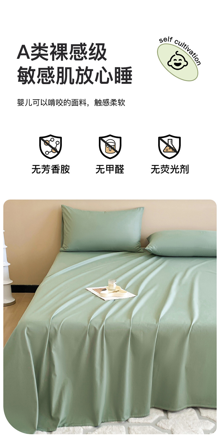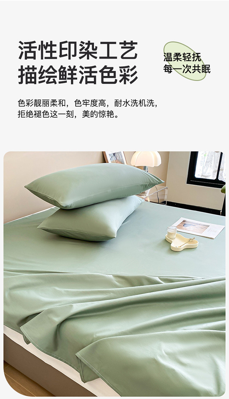 商品名称:丽美人 2023新款40支纯棉床单 青木绿