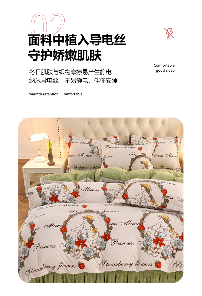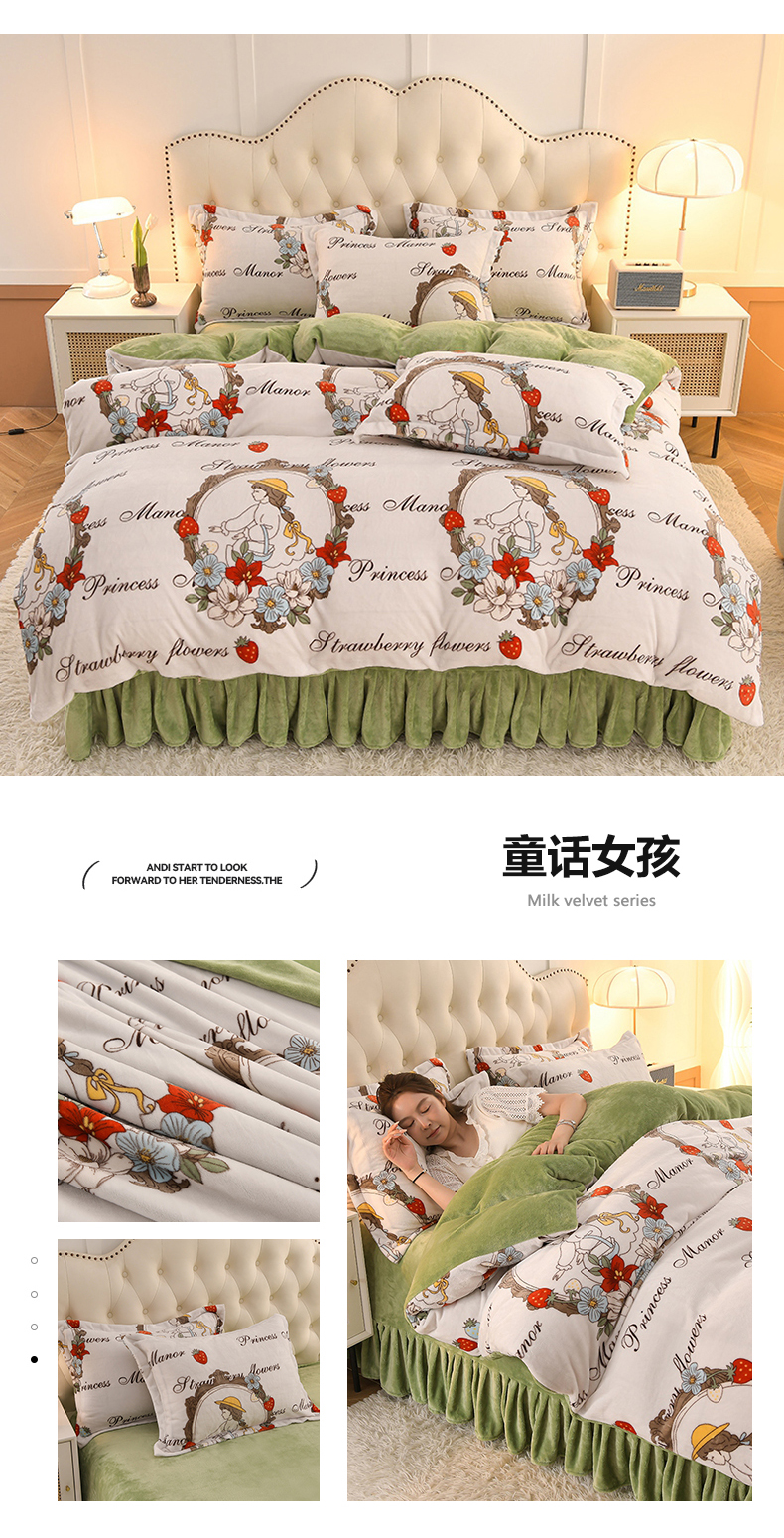 商品名称:牵梦萦家纺 2025新款牛奶绒印花四件套系列 童话女孩