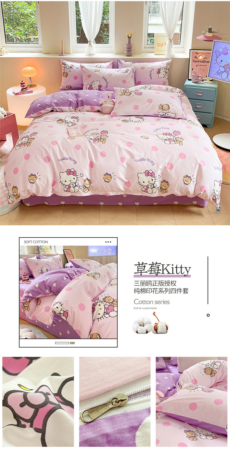 当前位置: 91家纺网 > 商品网购 > 床品套件 > 四件套 > 全棉普通四件套 > 桃子 2023新款三丽鸥正版授权纯棉印花系列四件套草莓Kitty