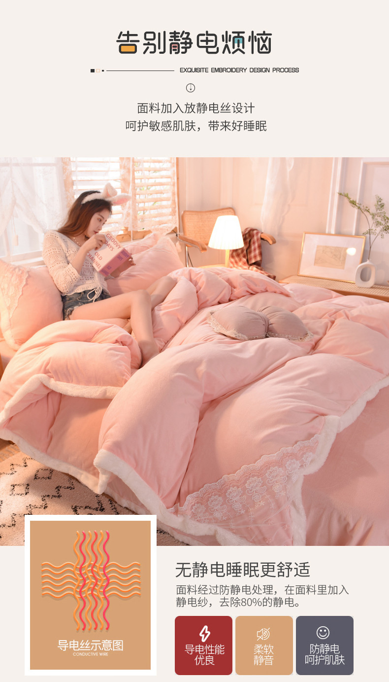 商品名称:欧冠 2023新款韩版公主牛奶绒四件套 粉玉