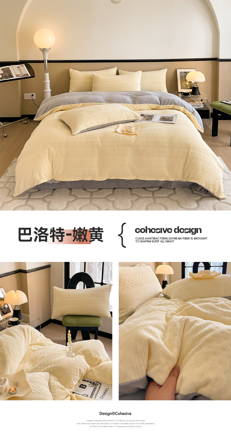 商品名称:澳梵 2023新款雕花牛奶绒四件套 巴洛特-嫩黄