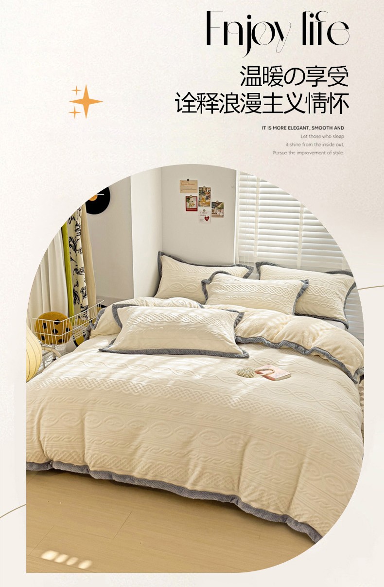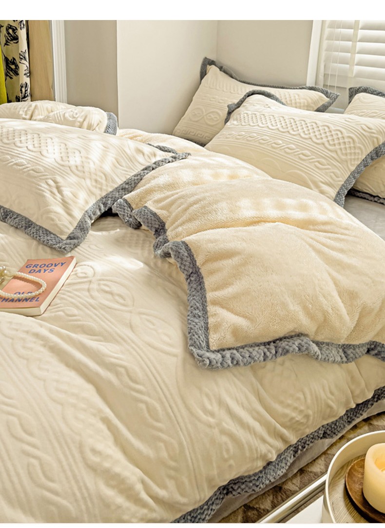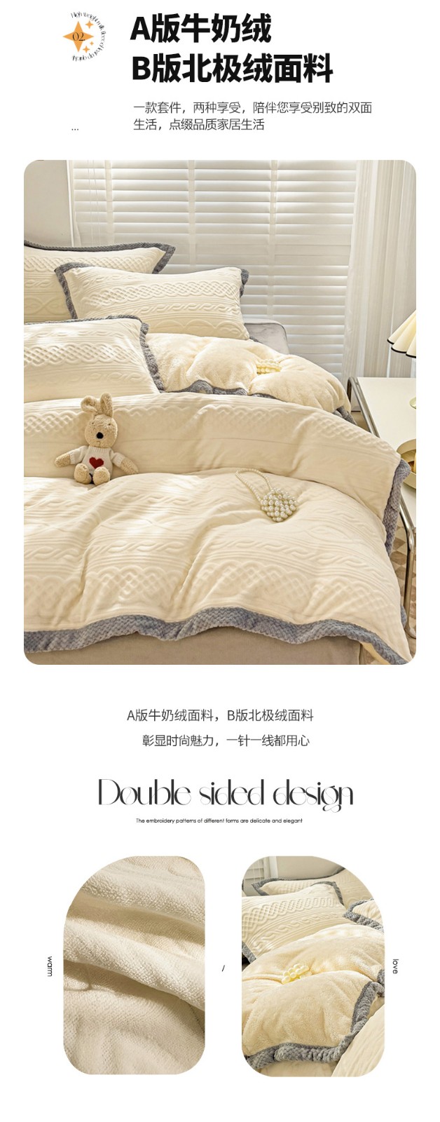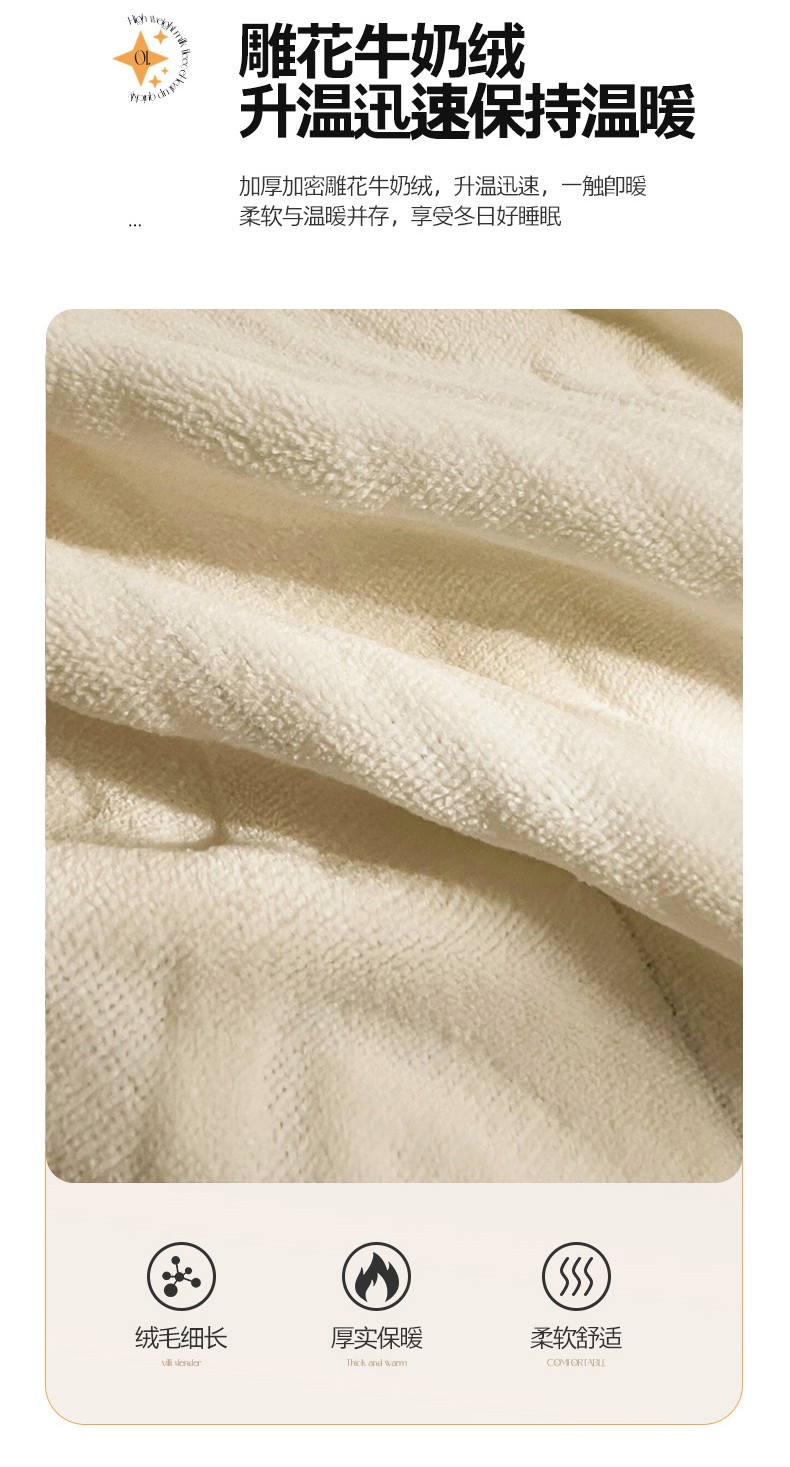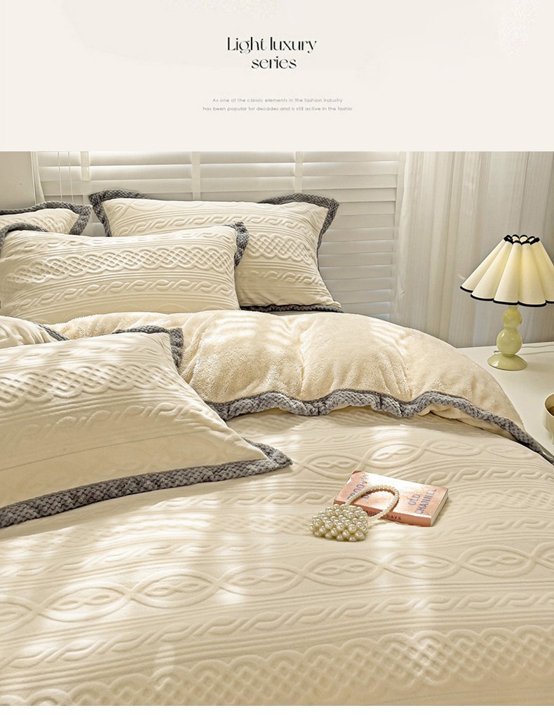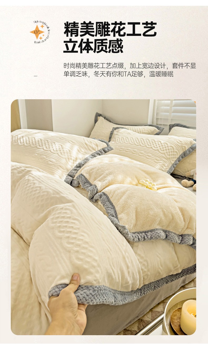法澳 2023新款220克雕花绒纯色牛奶绒四件套 爱莎-米白