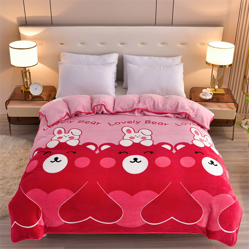 商品名称:2025新款9斤重加厚直播爆款牛奶绒金貂法莱绒单品被套 爱心萌宠