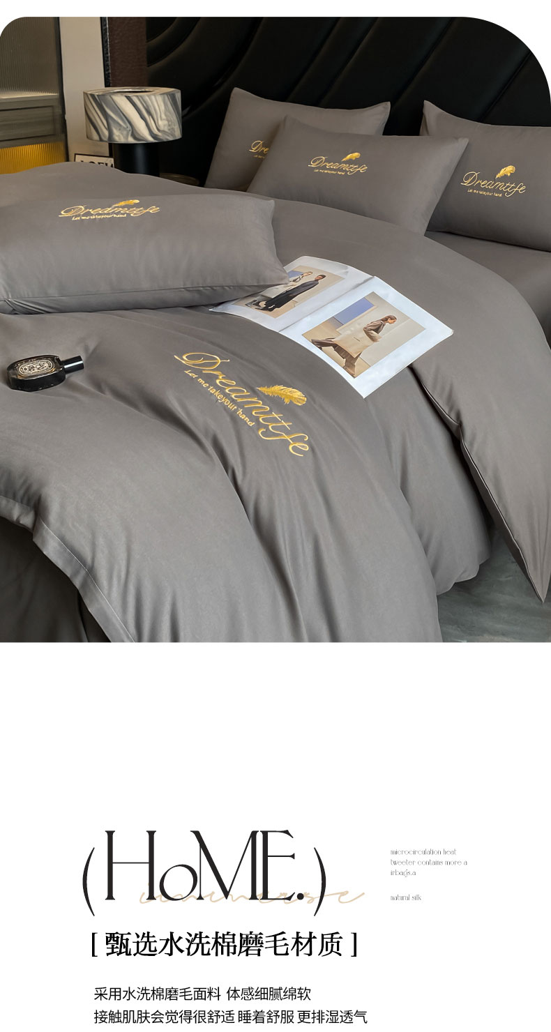 当前位置: 91家纺网 > 商品网购 > 床品套件 > 四件套 > 普通磨毛四件套 > 伊梵居 2025新款梦羽系列刺绣水洗棉磨毛四件套 梦羽-高级灰