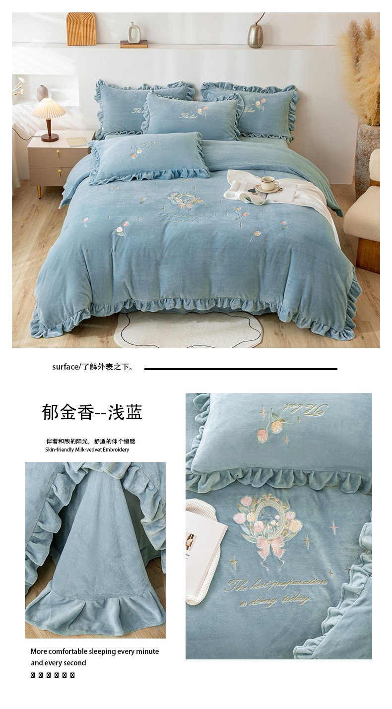 (总)绒博士 2025新款270克牛奶绒双拼角刺绣宽边款四件套--维也纳系列,维也纳-粉豆沙,维也纳-果绿,维也纳-浅咖,维也纳-浅蓝