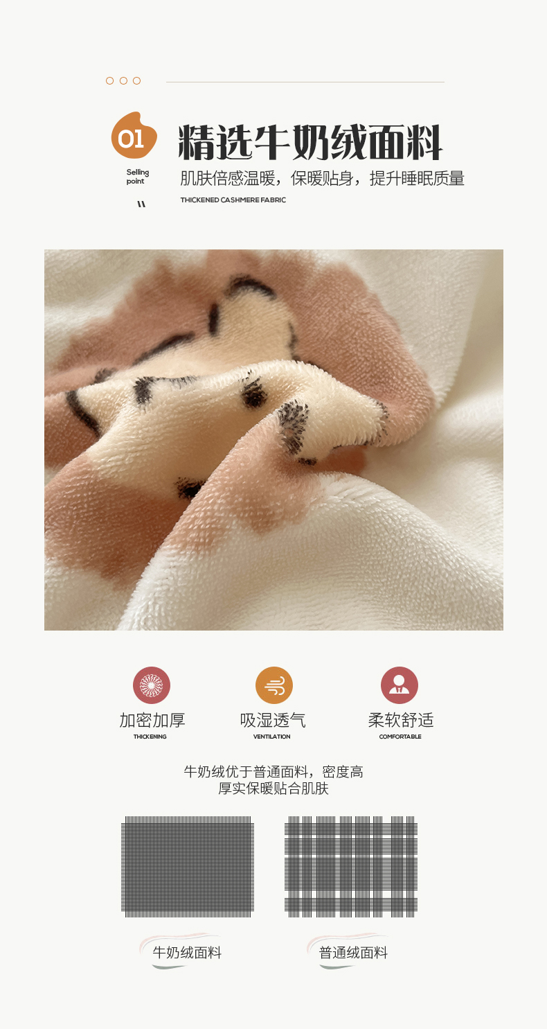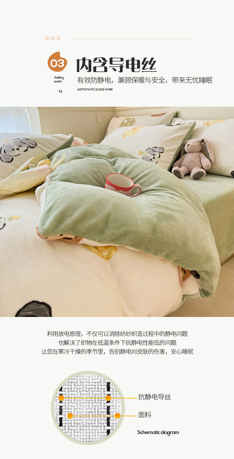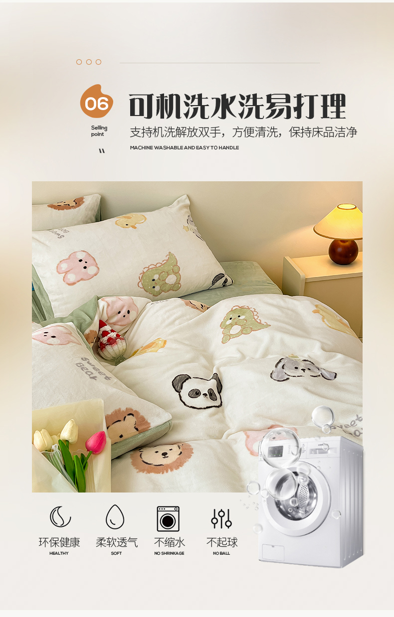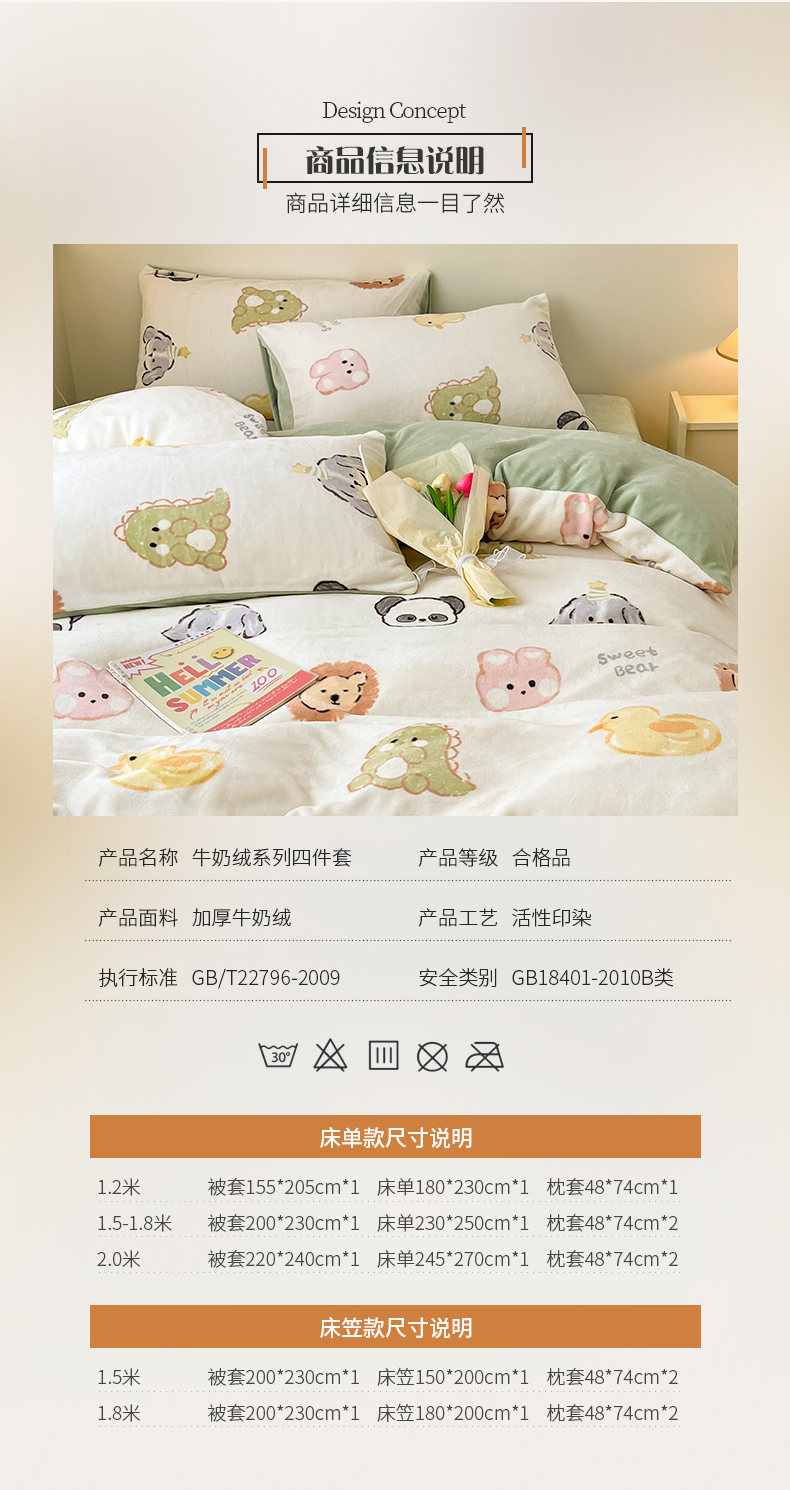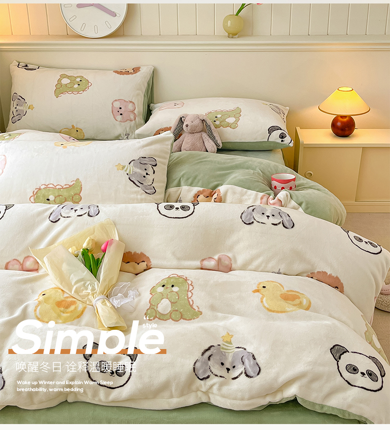 商品名称:桃子家居 2023新款ins韩系简约卡通奶油小清新加厚牛奶绒系列四件套 绒-欢乐世界