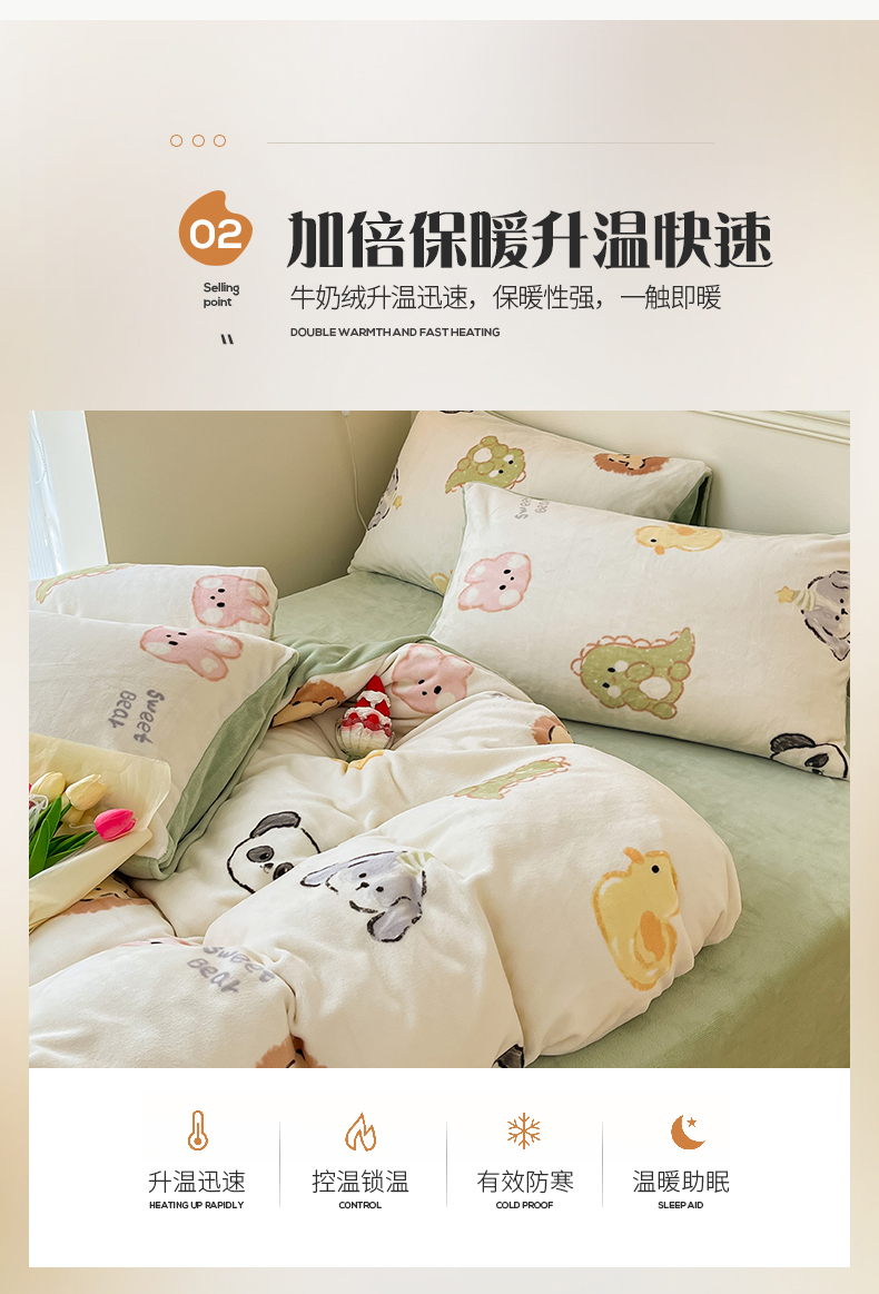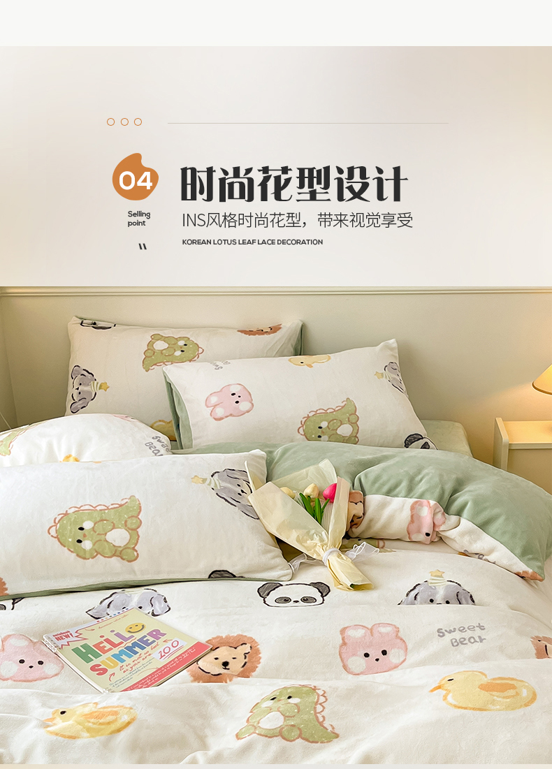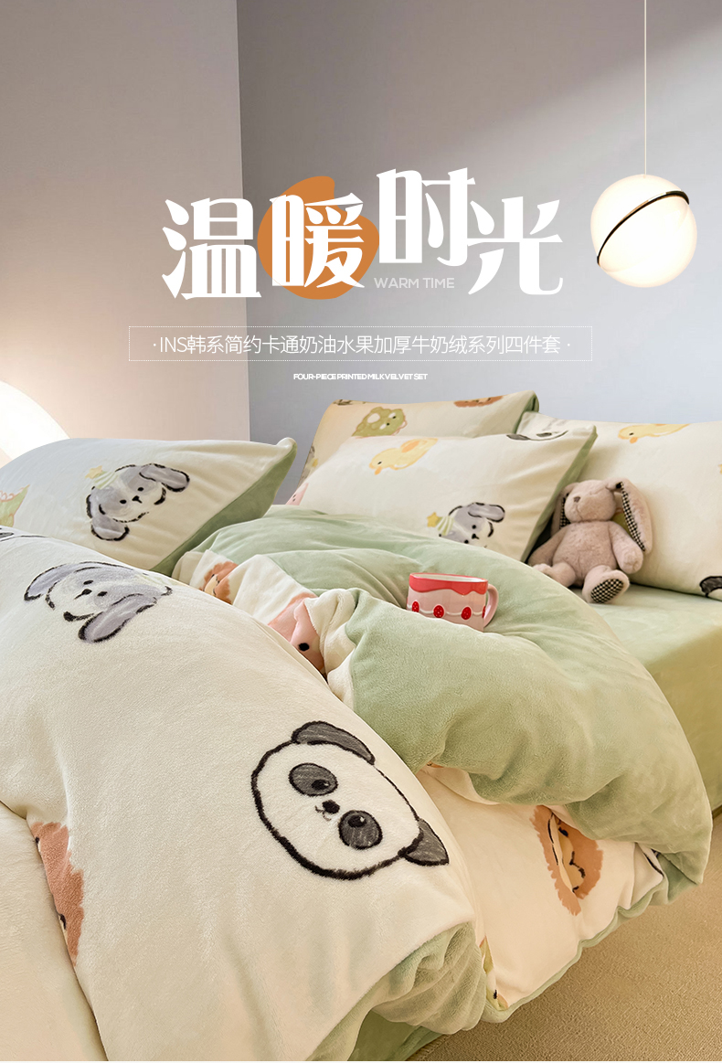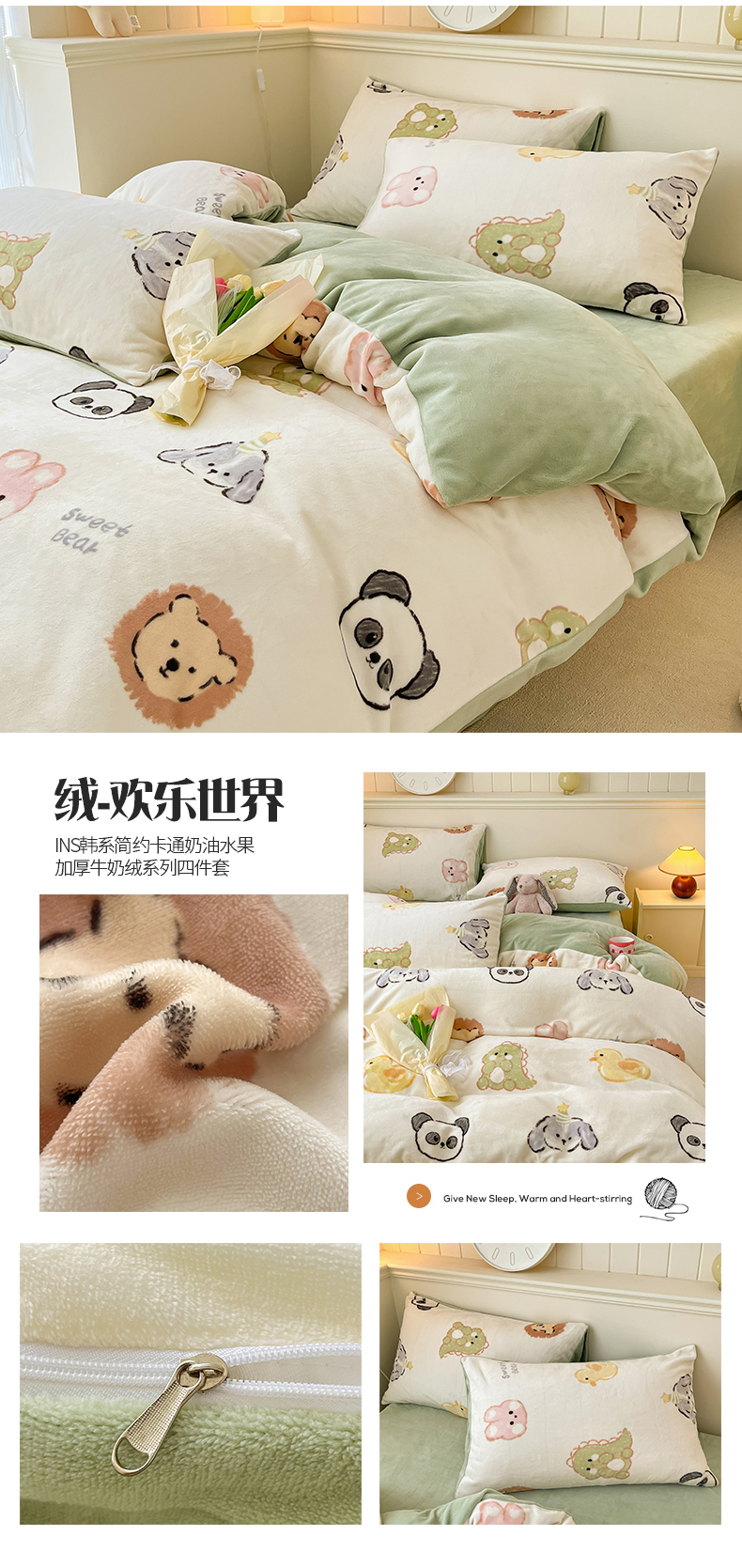 桃子家居 2023新款ins韩系简约卡通奶油小清新加厚牛奶绒系列四件套 绒-欢乐世界