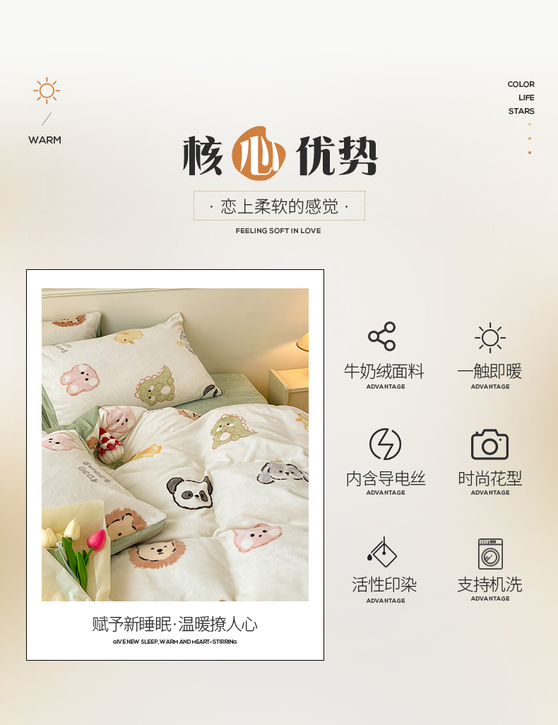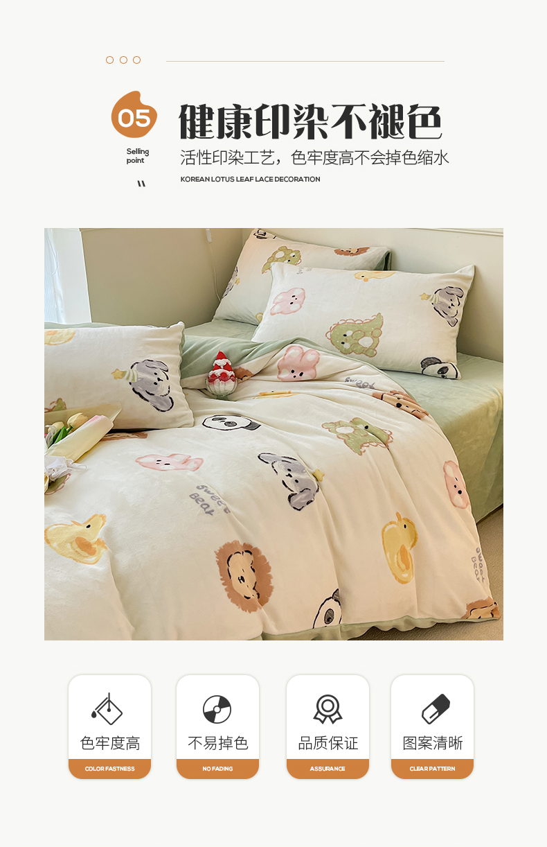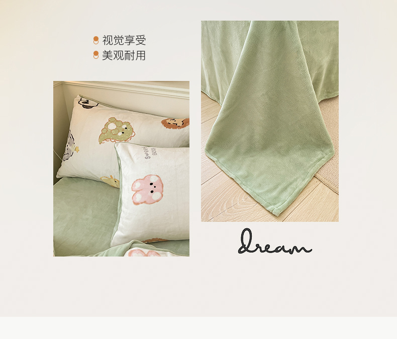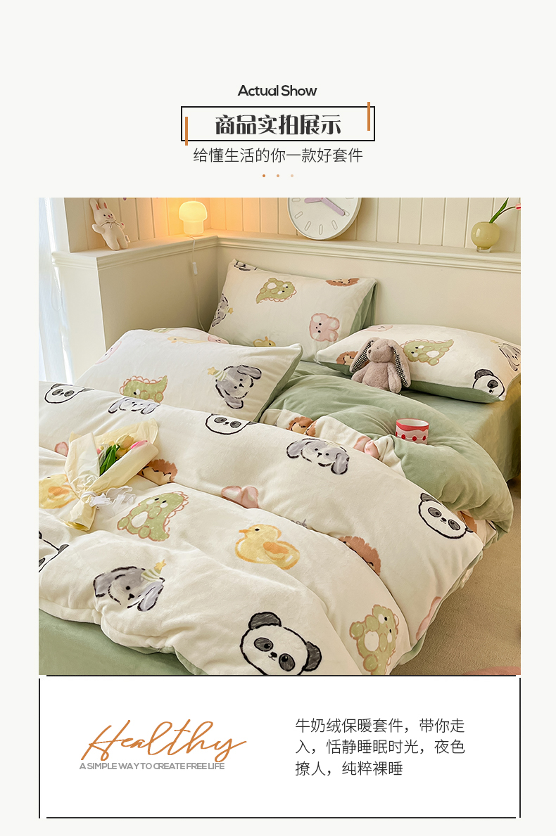 桃子家居 2023新款ins韩系简约卡通奶油小清新加厚牛奶绒系列四件套 绒-欢乐世界
