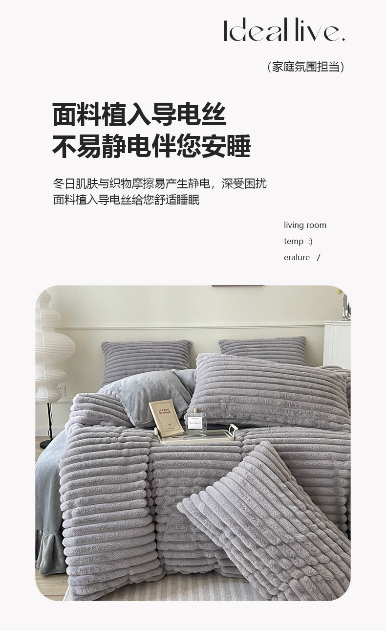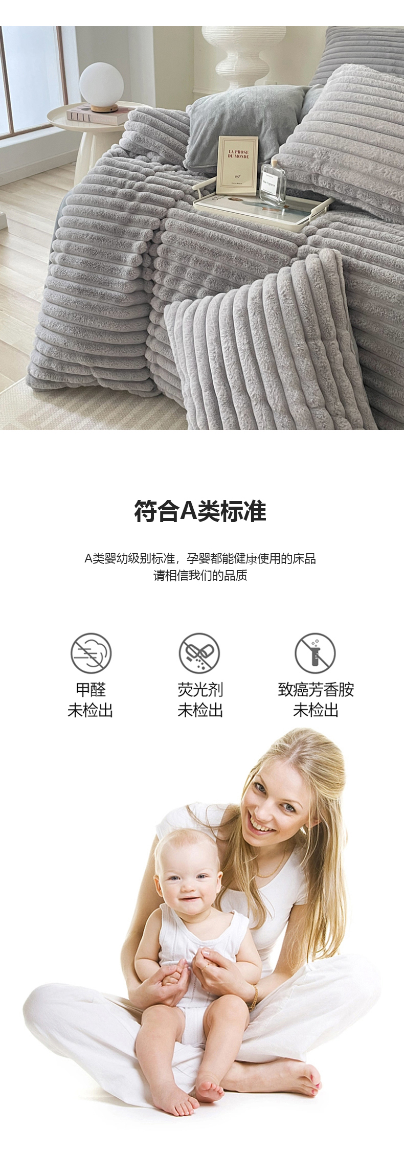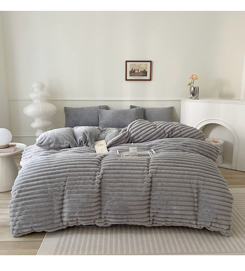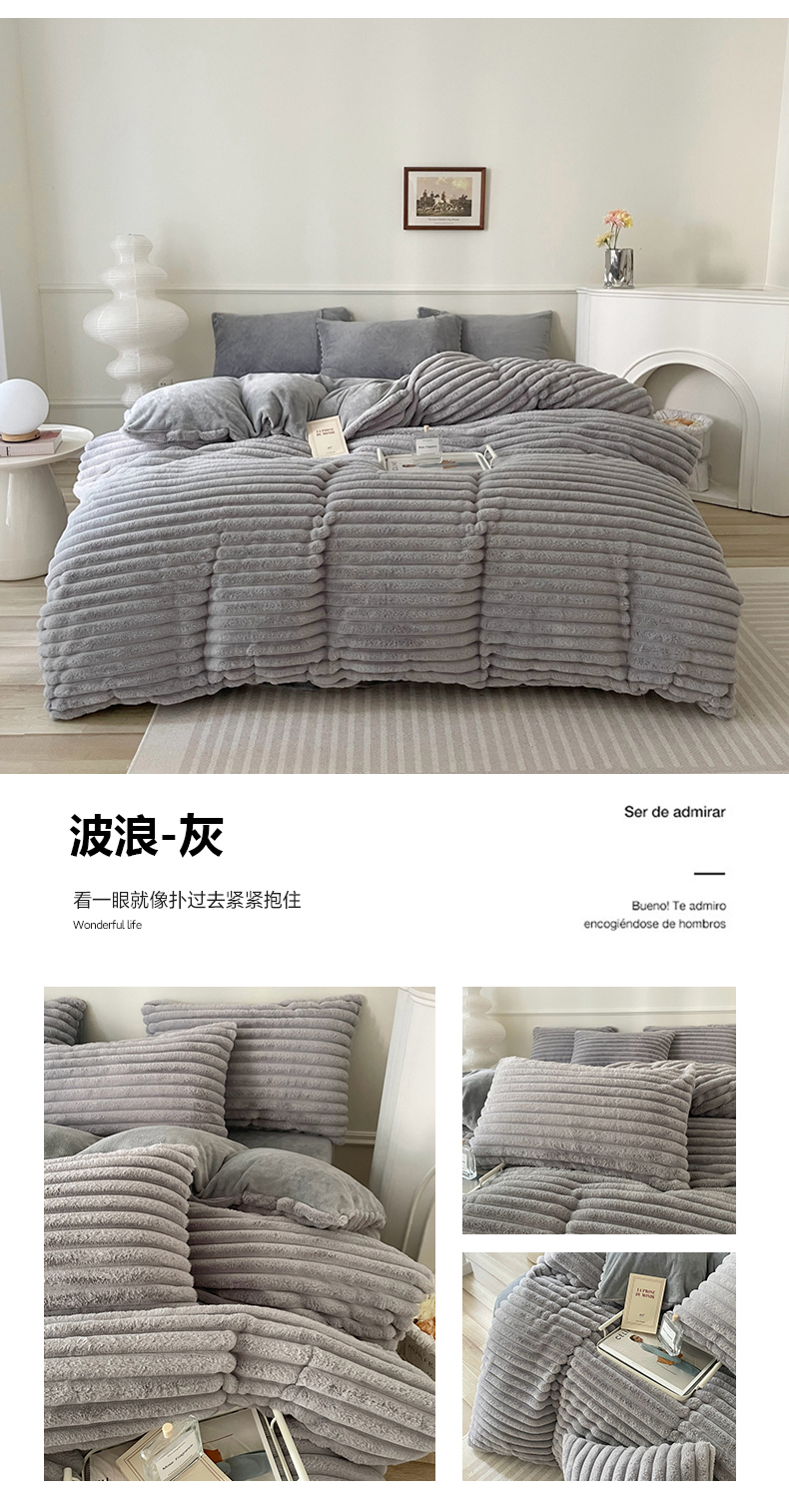 商品名称:喜梦缘 2025新款A类兔毛绒四件套 波浪-灰
