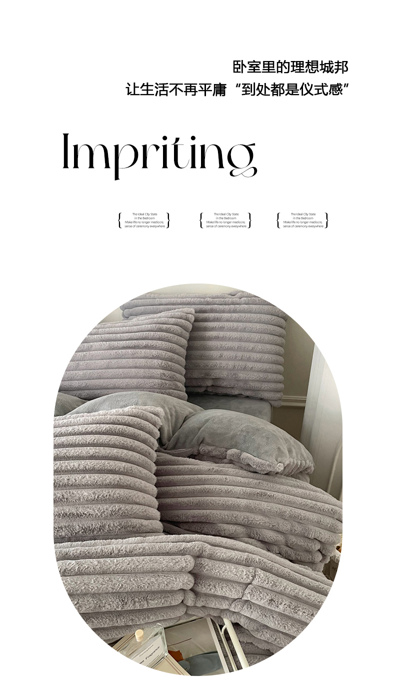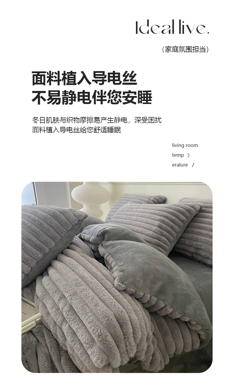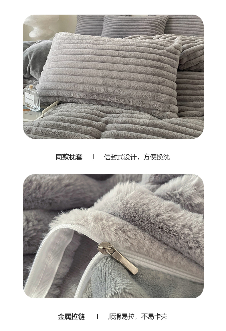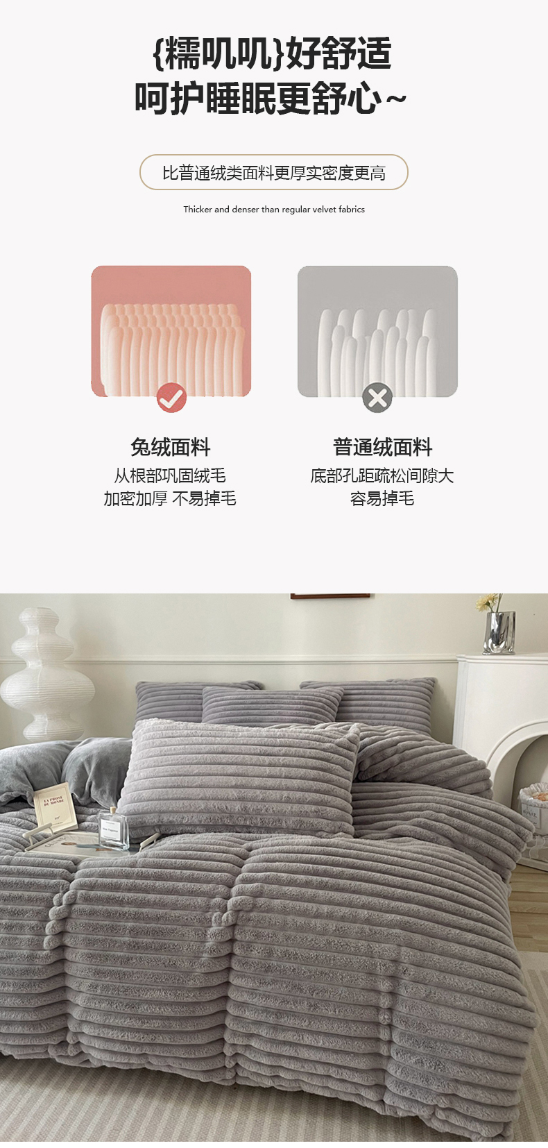 商品名称:喜梦缘 2025新款A类兔毛绒四件套 波浪-灰