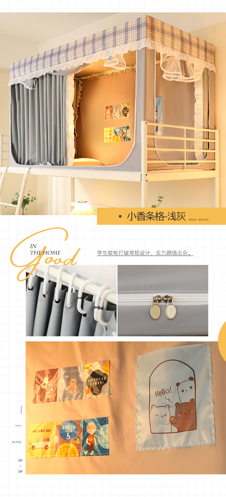 (总)安金蚊帐2025新款防蚊遮光一体99%强遮光学生宿舍上下铺遮光学生蚊帐-灰色系列,多彩布布,搞怪小新,奇奇一家,探险布布,窜窜鼠,拍拍熊
