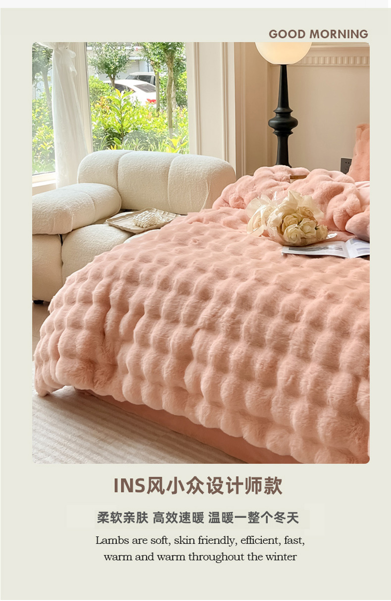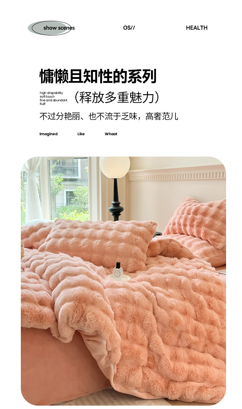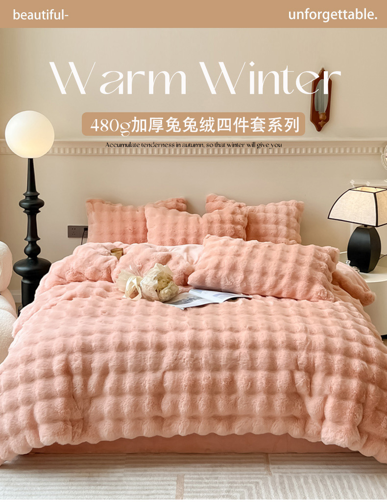 当前位置: 91家纺网 > 商品网购 > 床品套件 > 四件套 > 兔毛绒四件套 > 慕尚 2025新款480g加厚兔毛绒兔兔绒四件套 薇妮肉粉