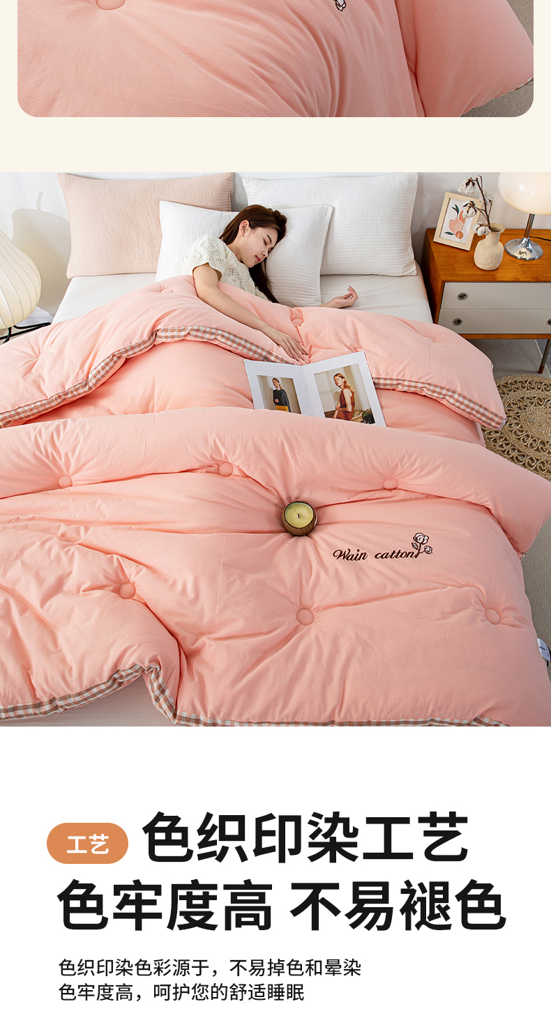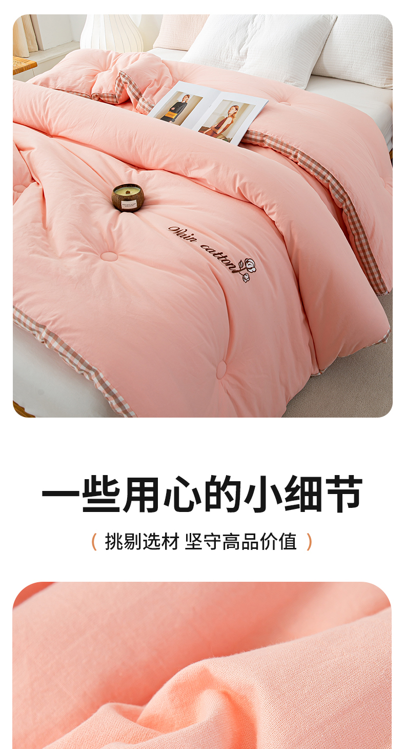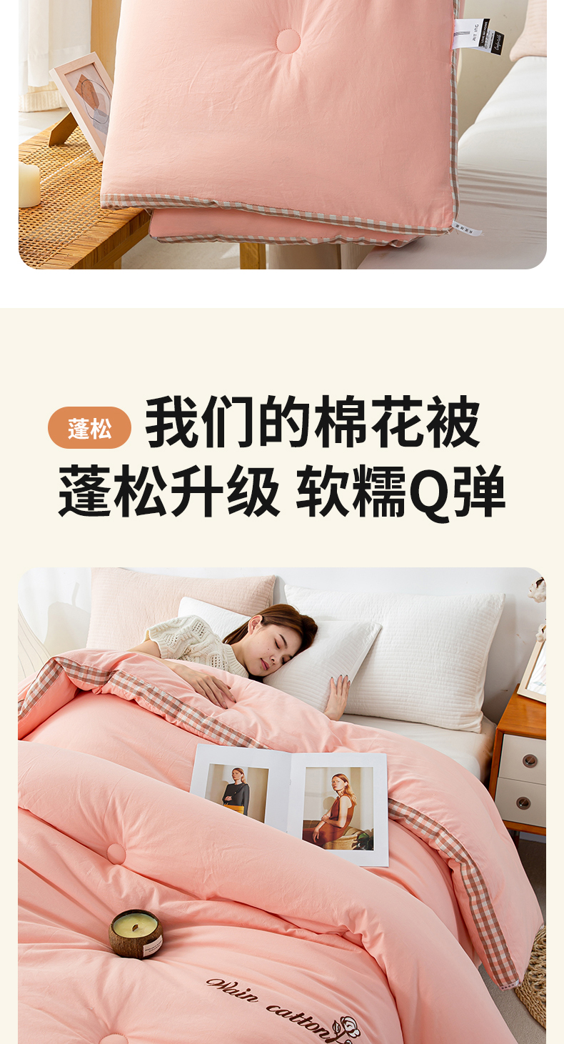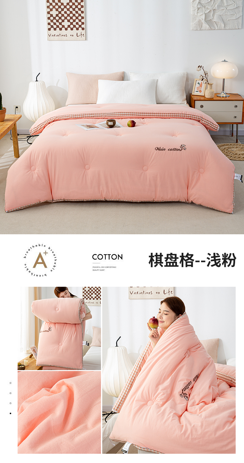 • 91家纺网 家纺一手货源 找家纺 鸣升 23新款棋盘格全棉花被色织水洗棉100%冬被被子 棋盘格-浅粉