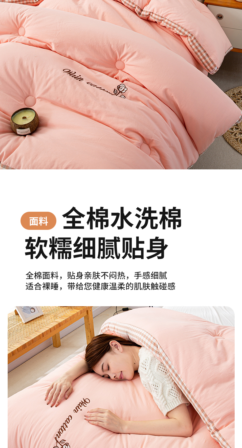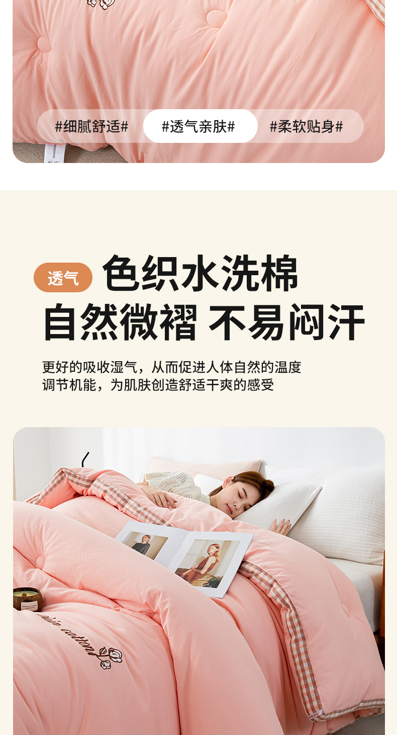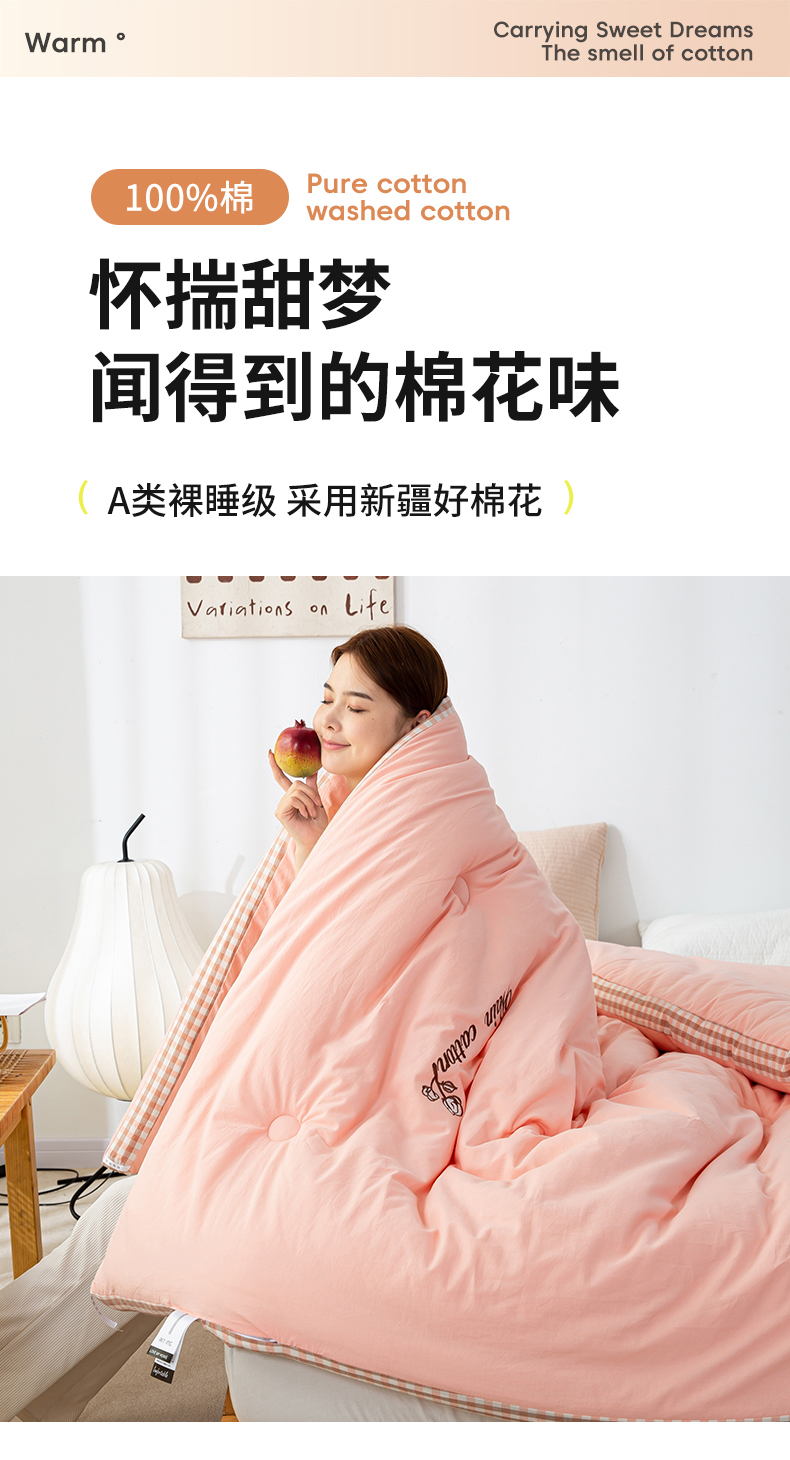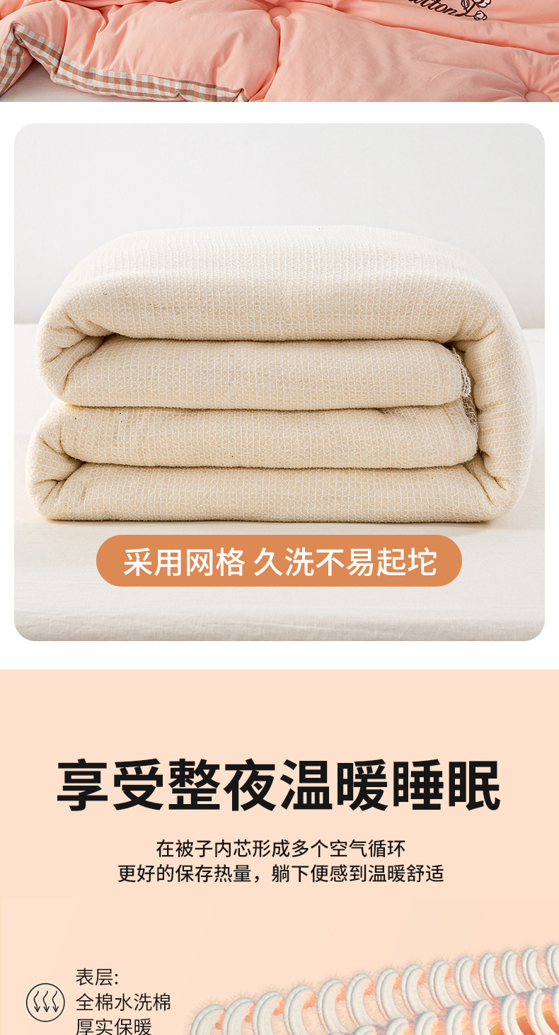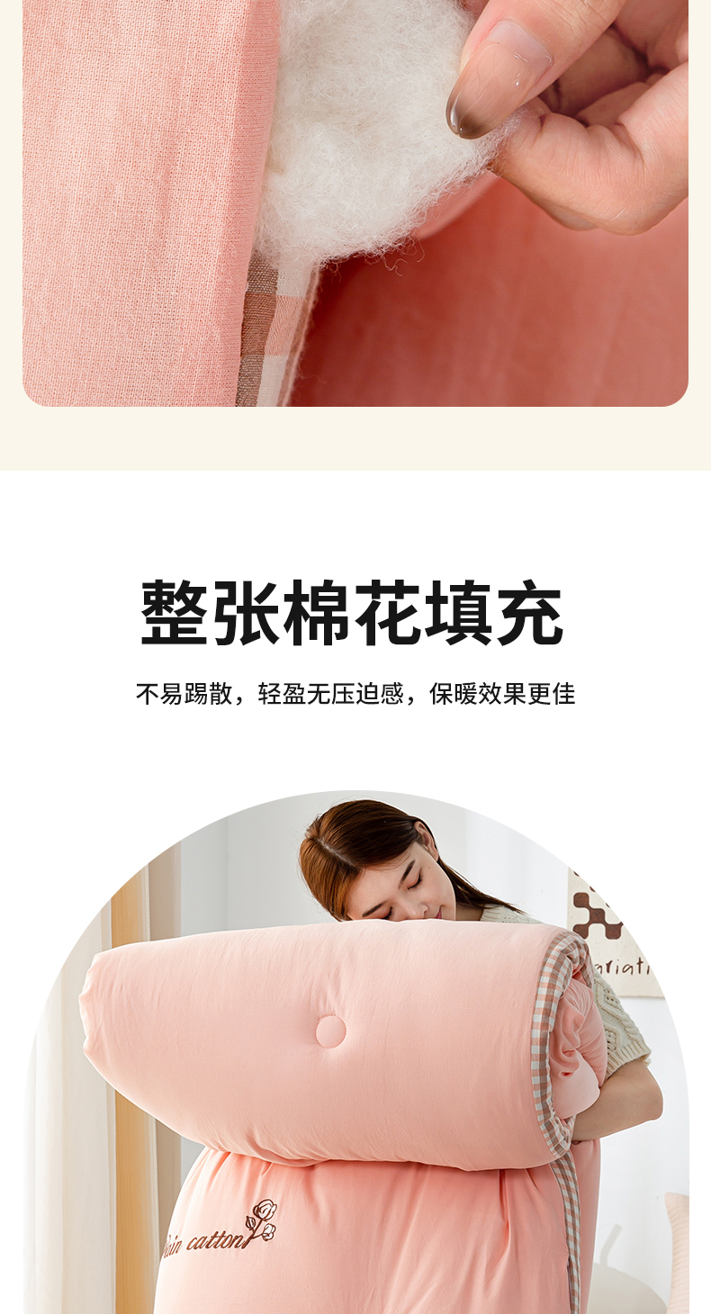 • 91家纺网 家纺一手货源 找家纺 鸣升 23新款棋盘格全棉花被色织水洗棉100%冬被被子 棋盘格-浅粉
