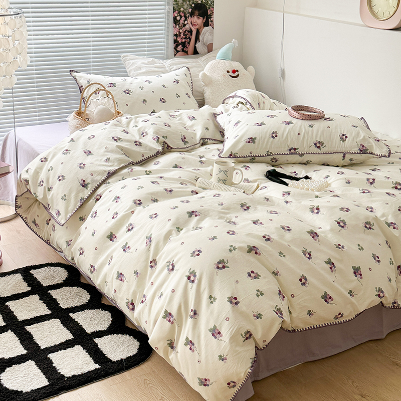 商品名称:2023新款全棉印花贝壳三角针四件套 淡雅紫葡萄