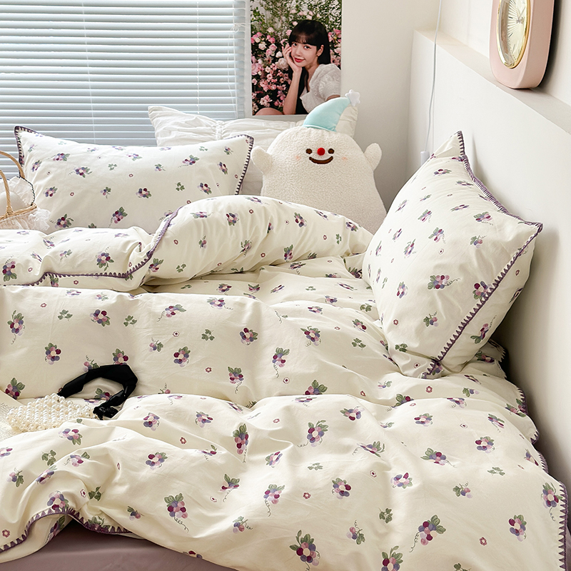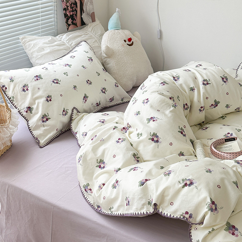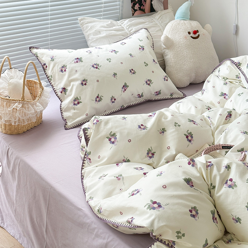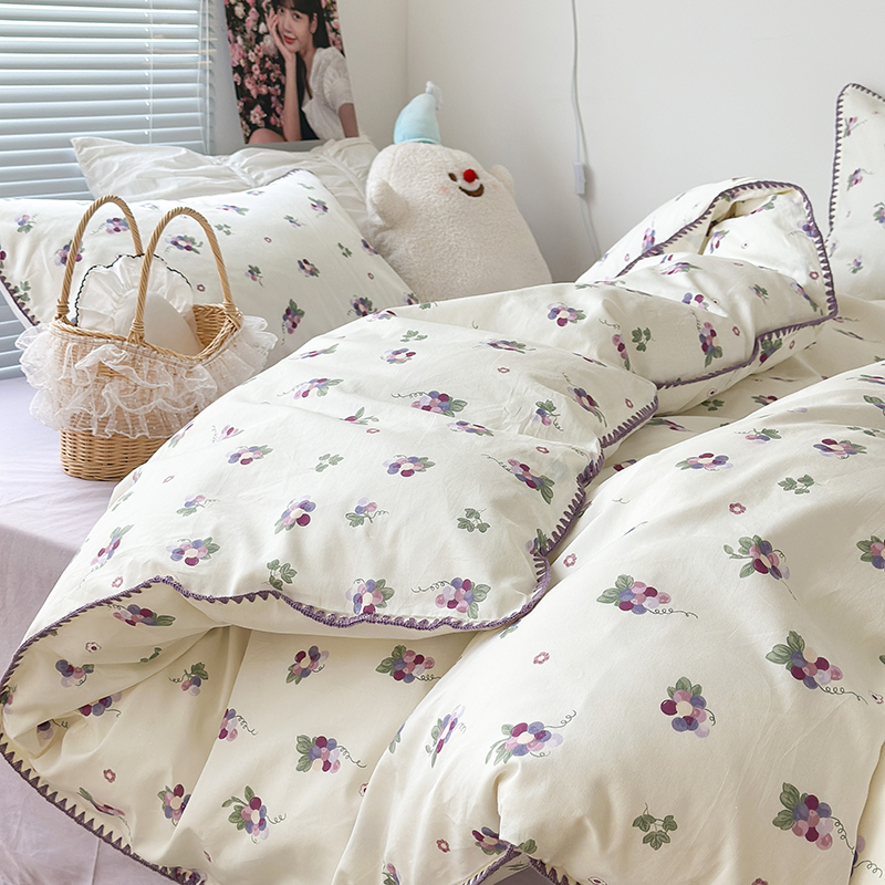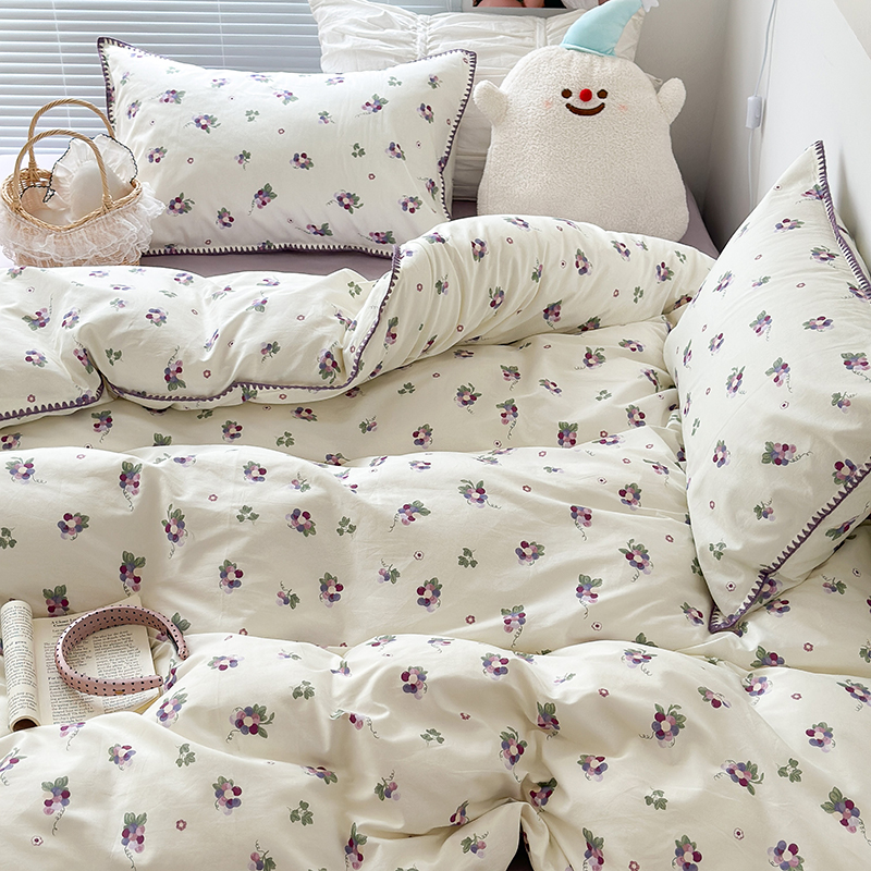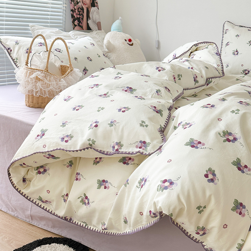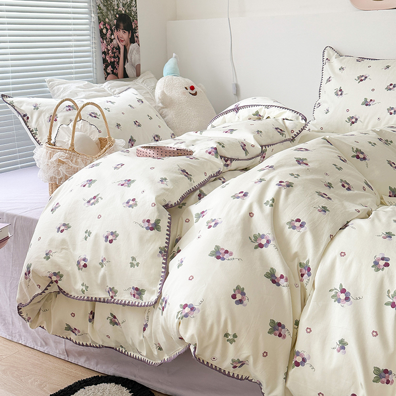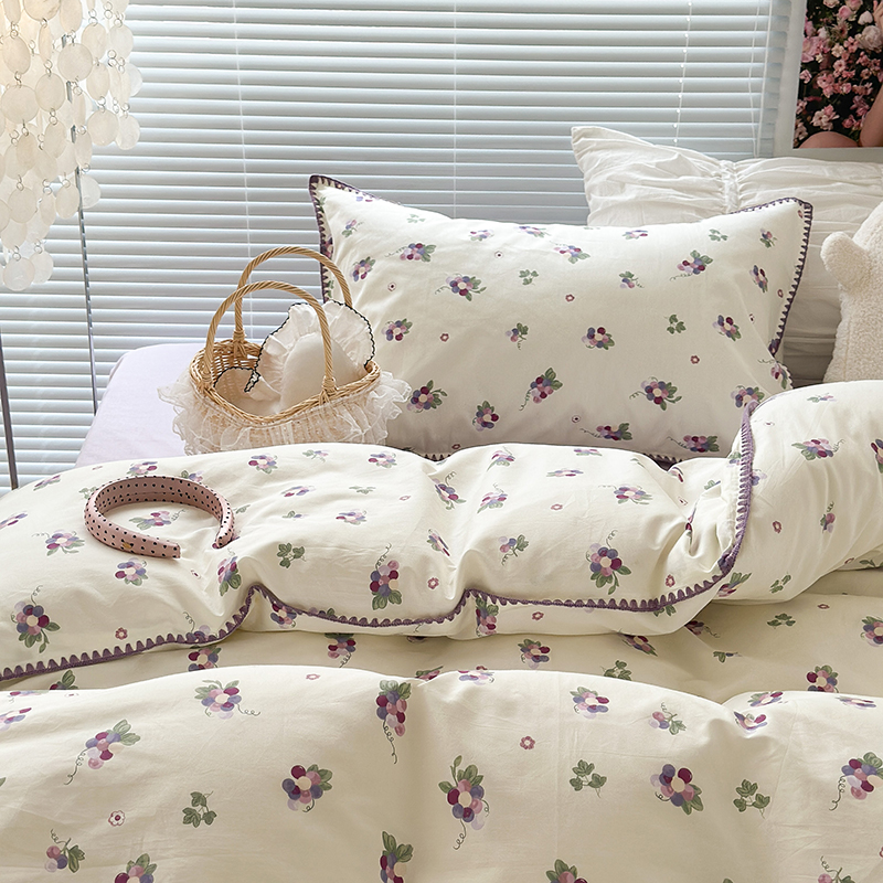 2023新款全棉印花贝壳三角针四件套 淡雅紫葡萄