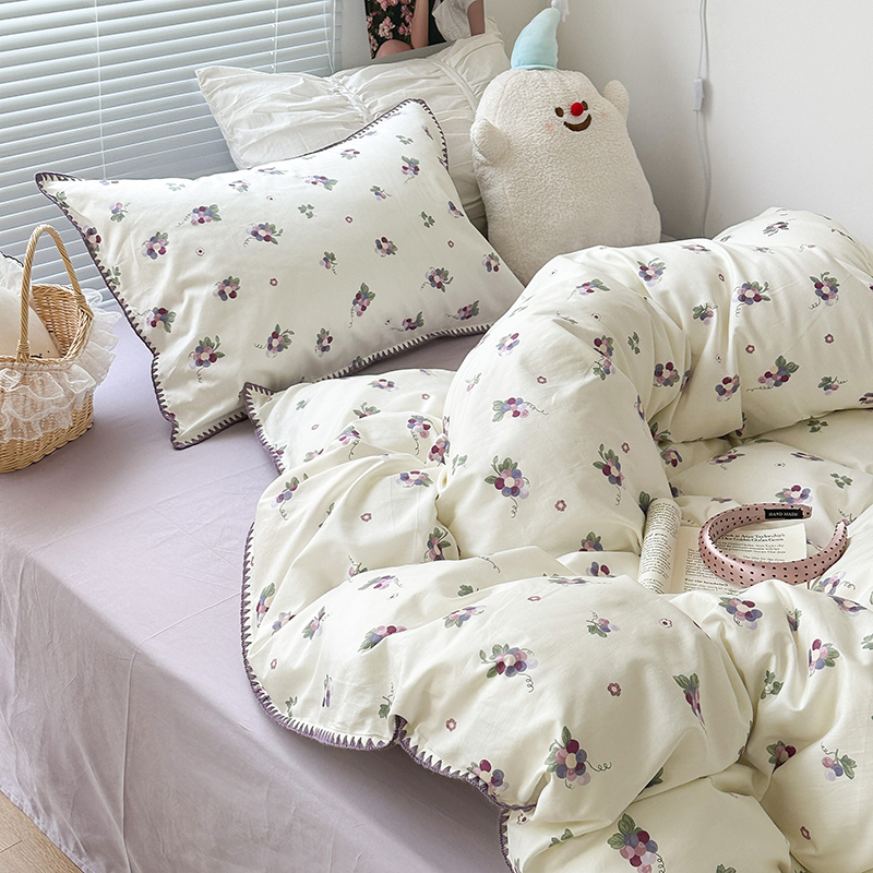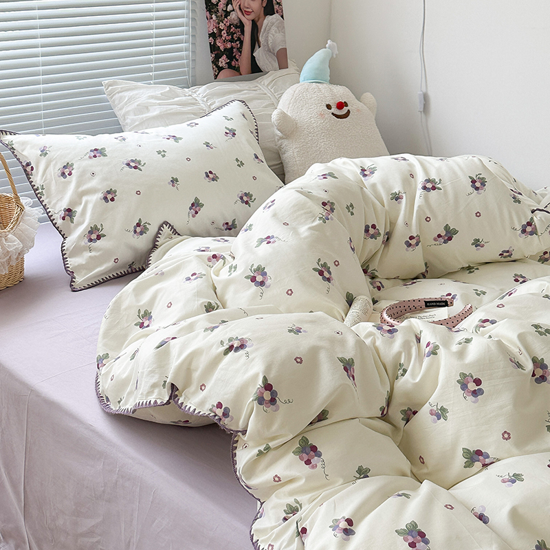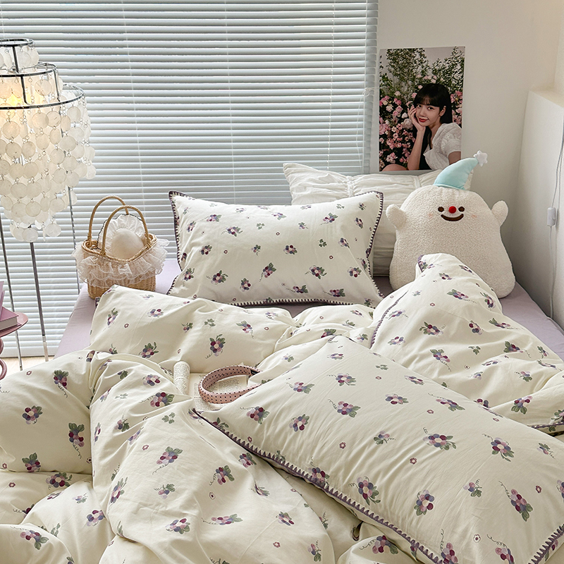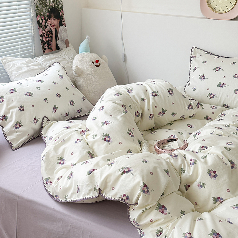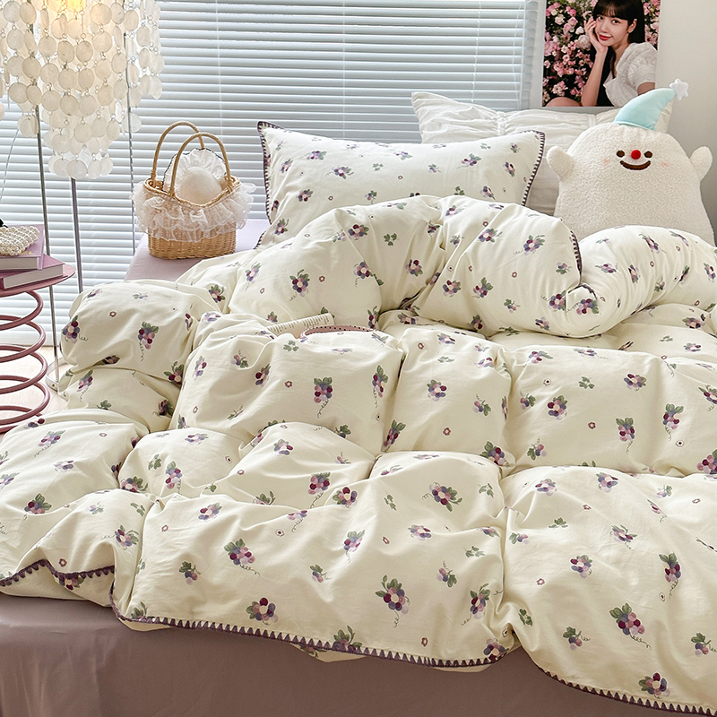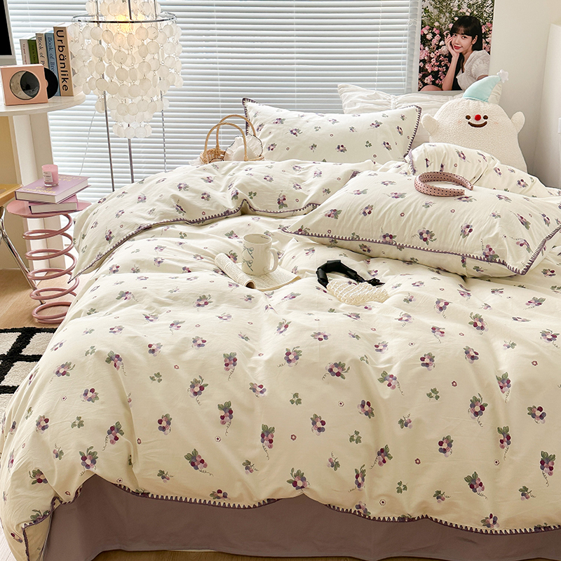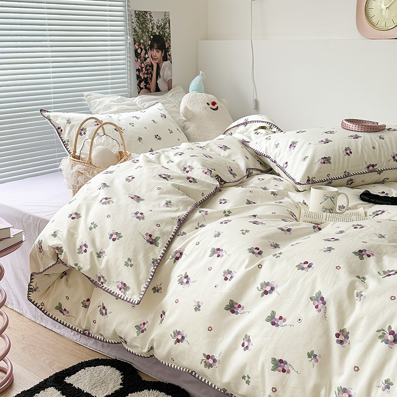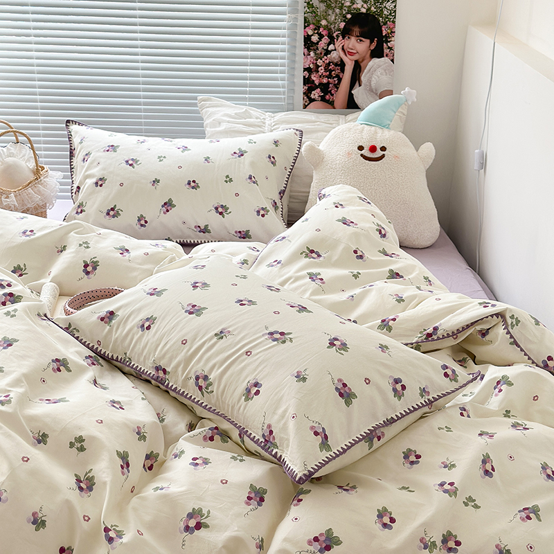 2023新款全棉印花贝壳三角针四件套 淡雅紫葡萄