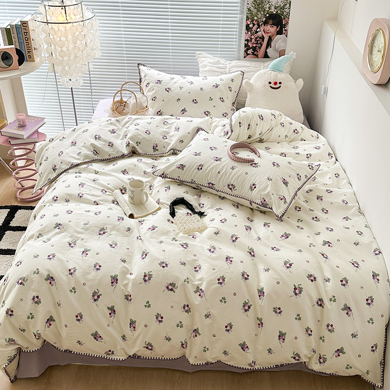(总)昔可家纺 2023新款全棉小花系列四件套,柏林少女,小小的樱桃,紫色葡萄