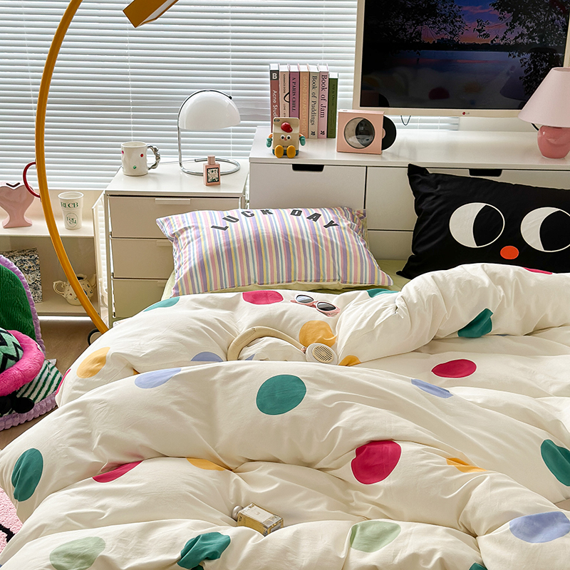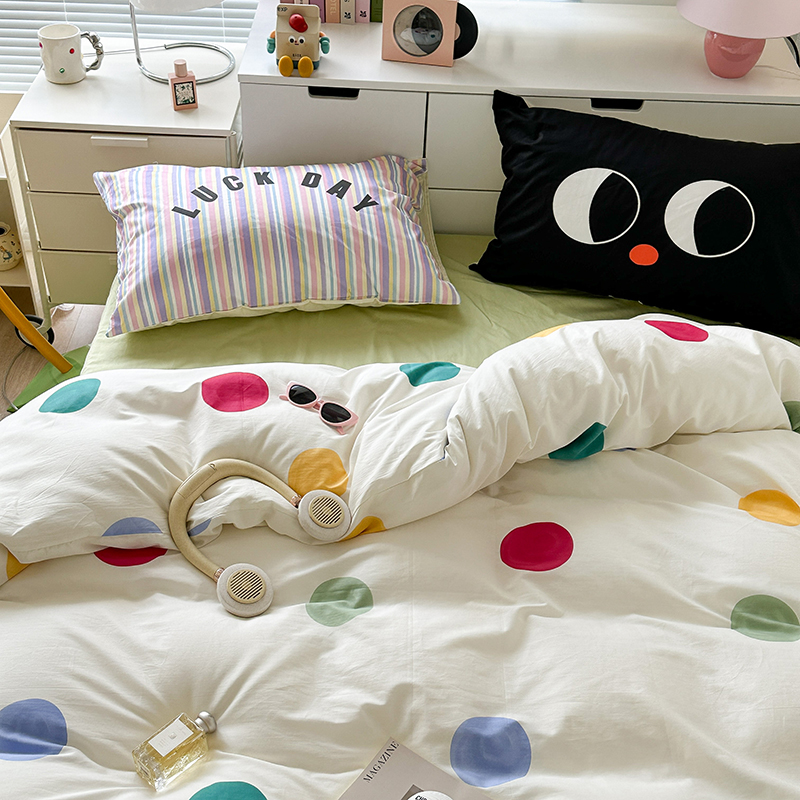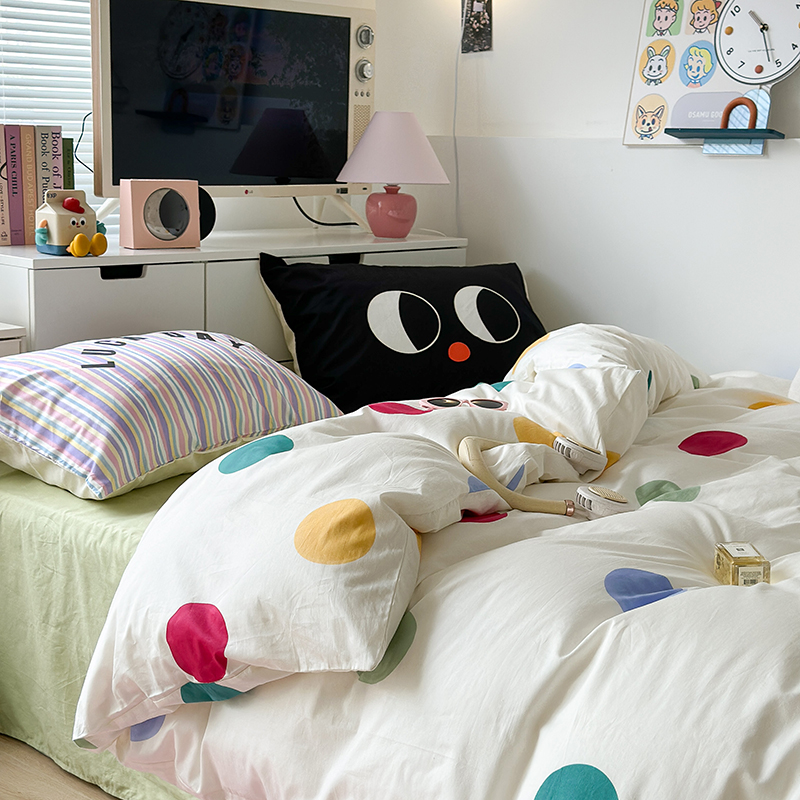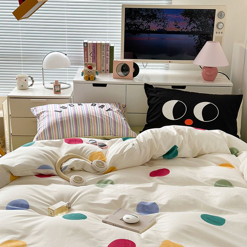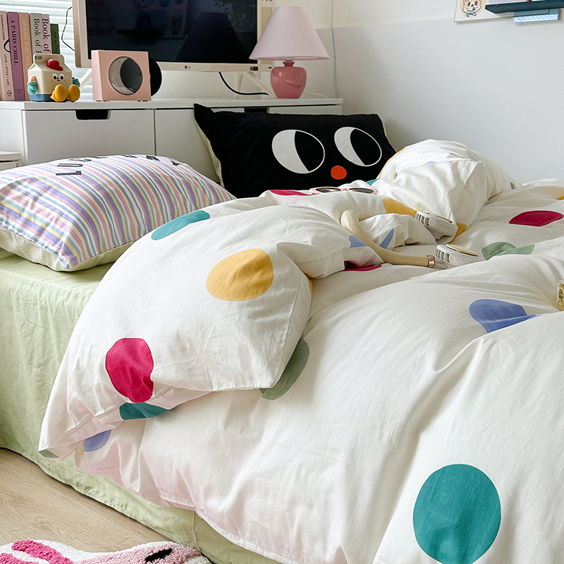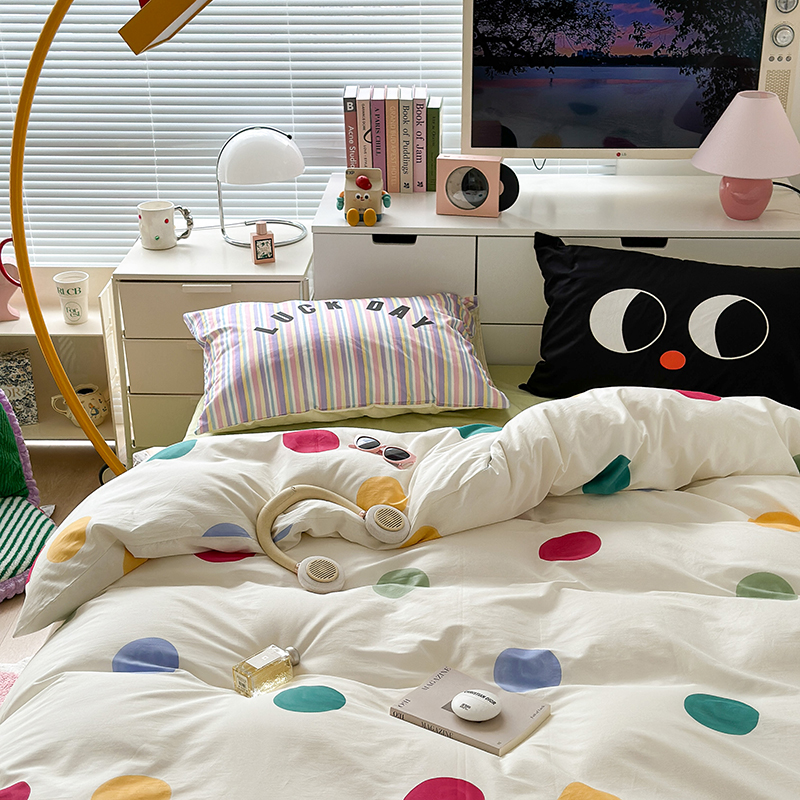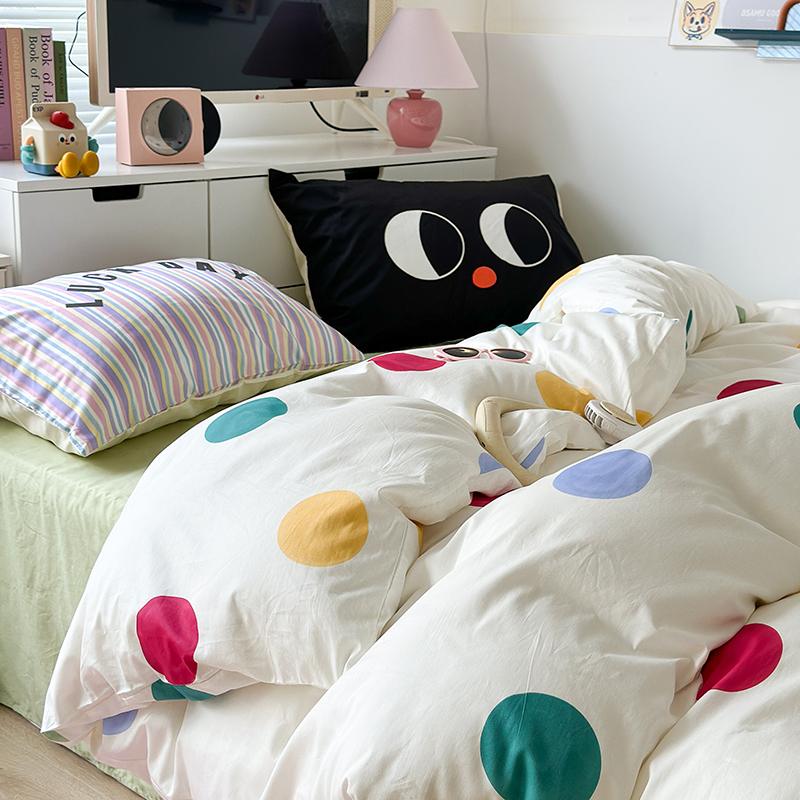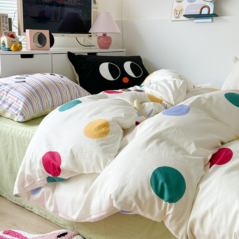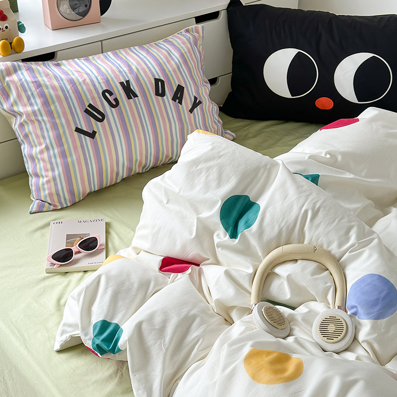 昔可家纺 2023新款全棉大版数码枕套四件套 彩色波点