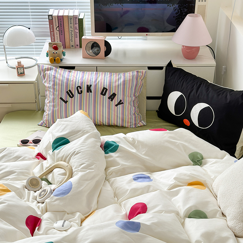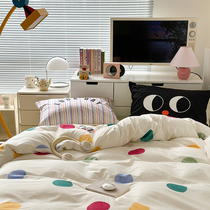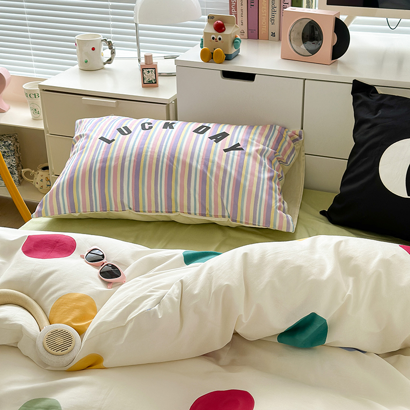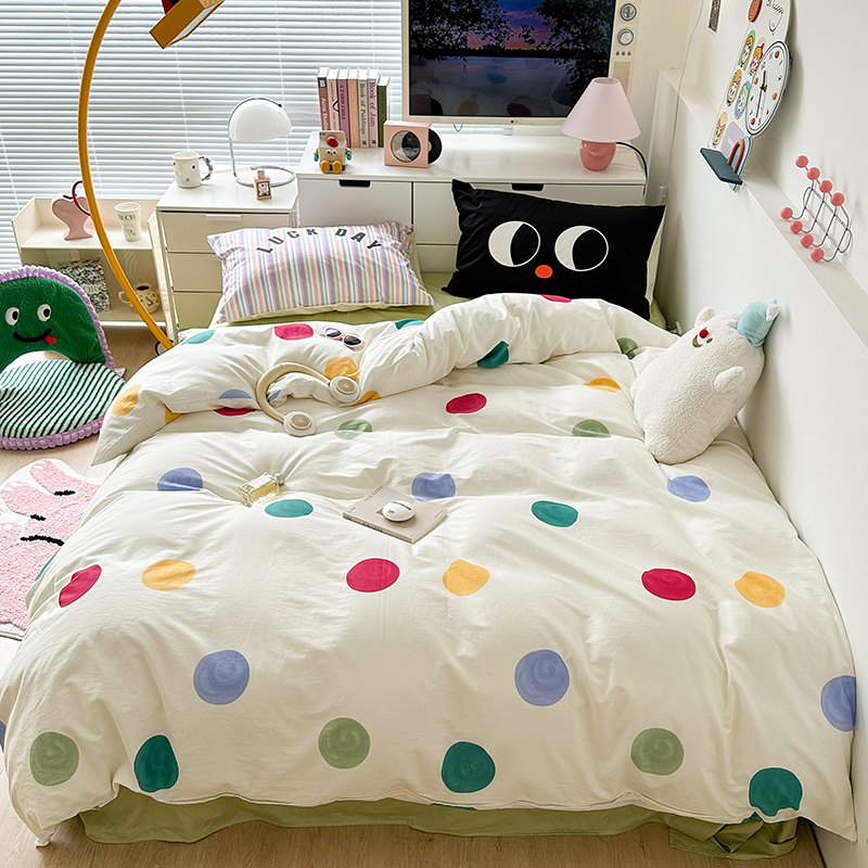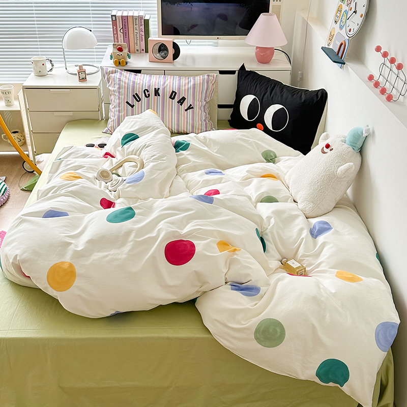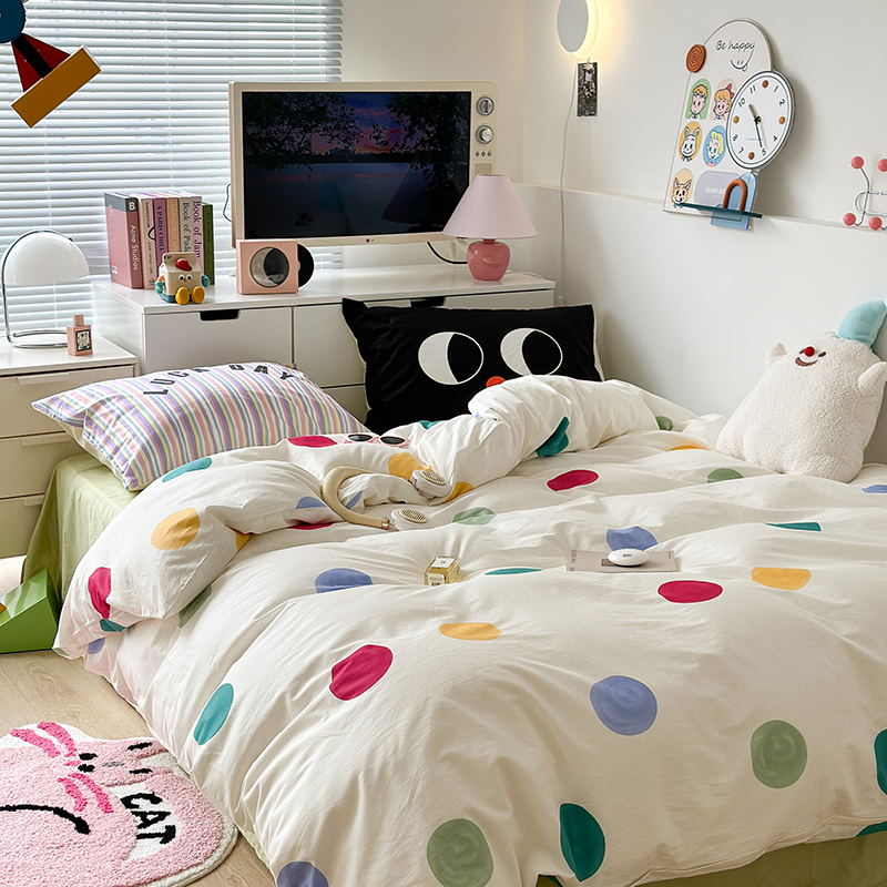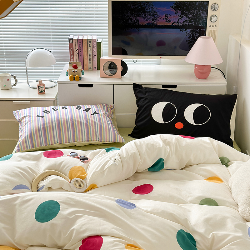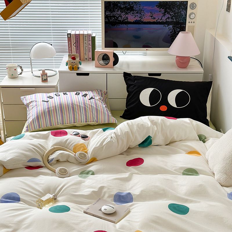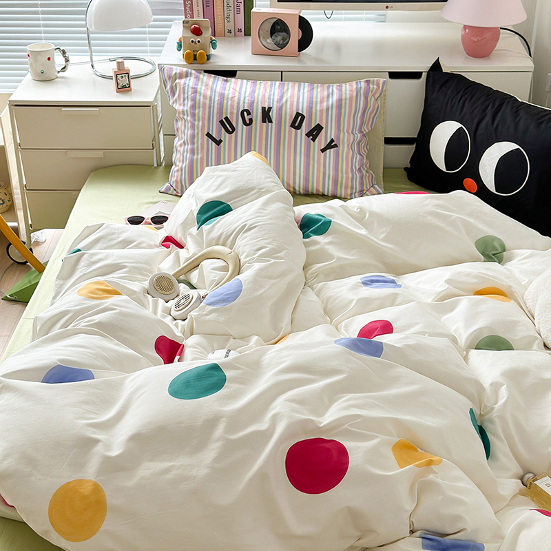 昔可家纺 2023新款全棉大版数码枕套四件套 彩色波点