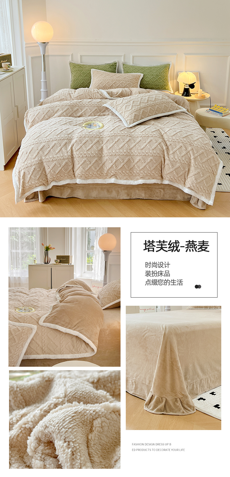 商品名称:贝拉梦 2023高克重加厚塔芙绒牛奶绒四件套单品 塔芙绒-燕麦