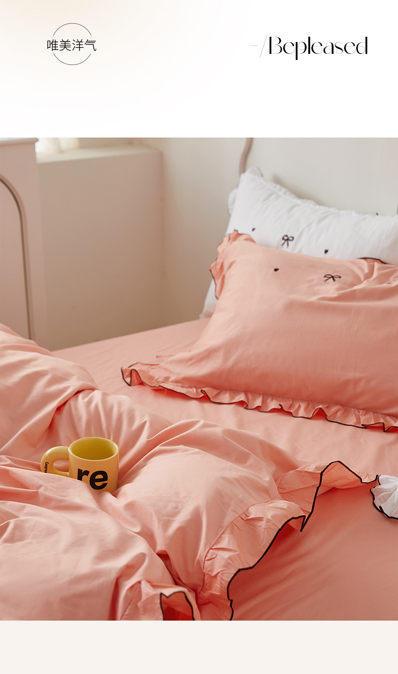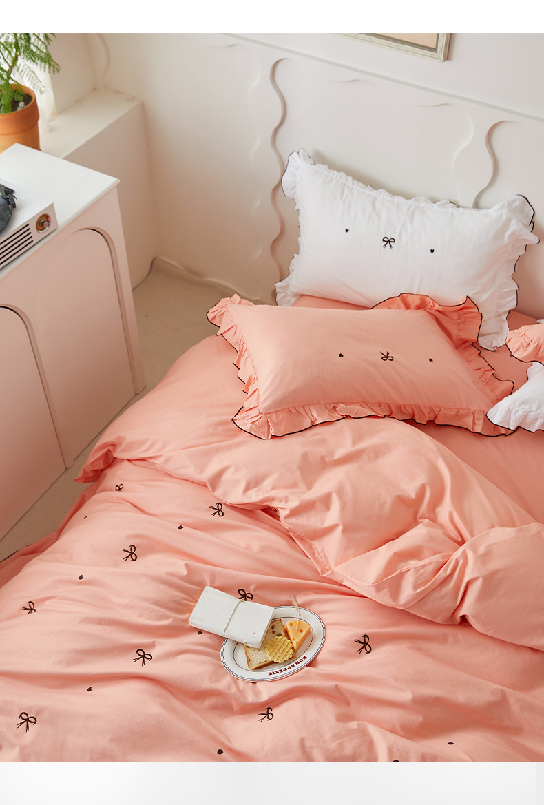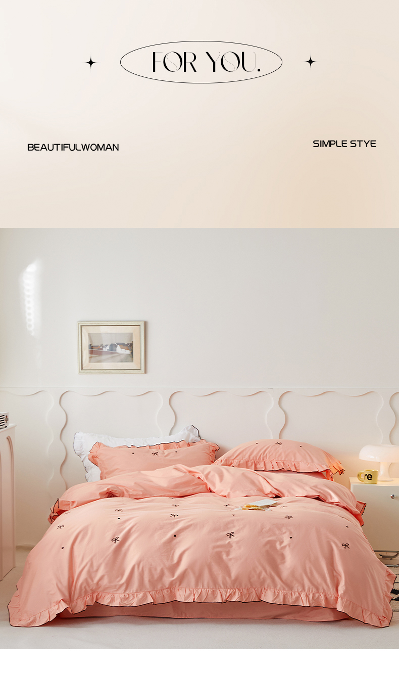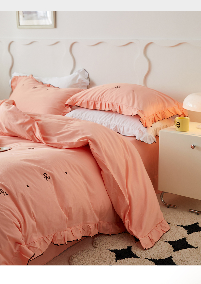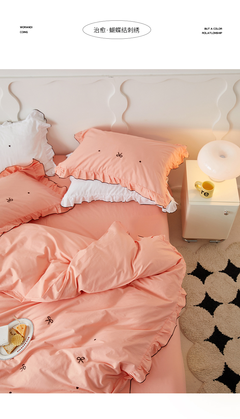 (总)梦可莱 2024新款亲肤刺绣荷叶边四件套-心灵迷恋,豆沙,奶油粉,奶油黄,牛油果绿,清新绿,香芋紫