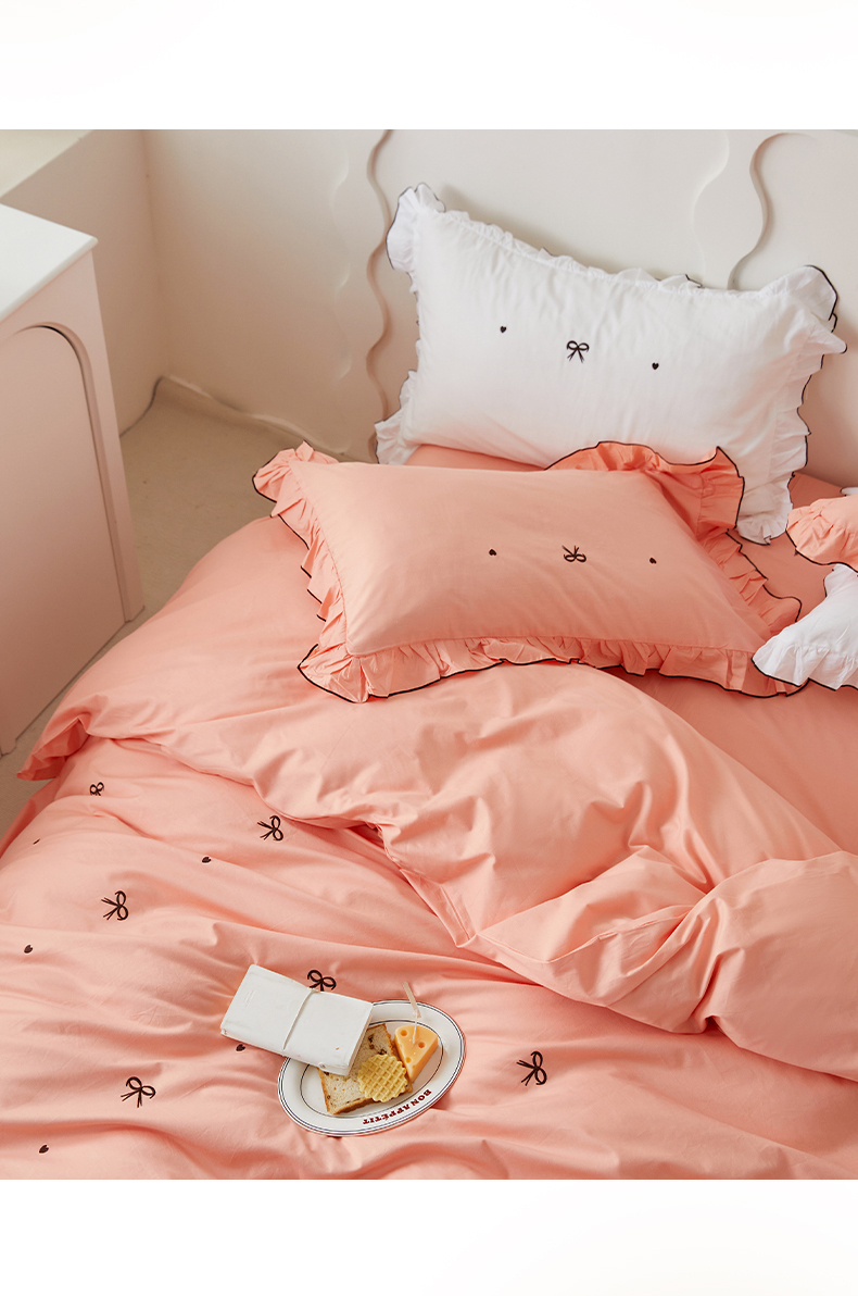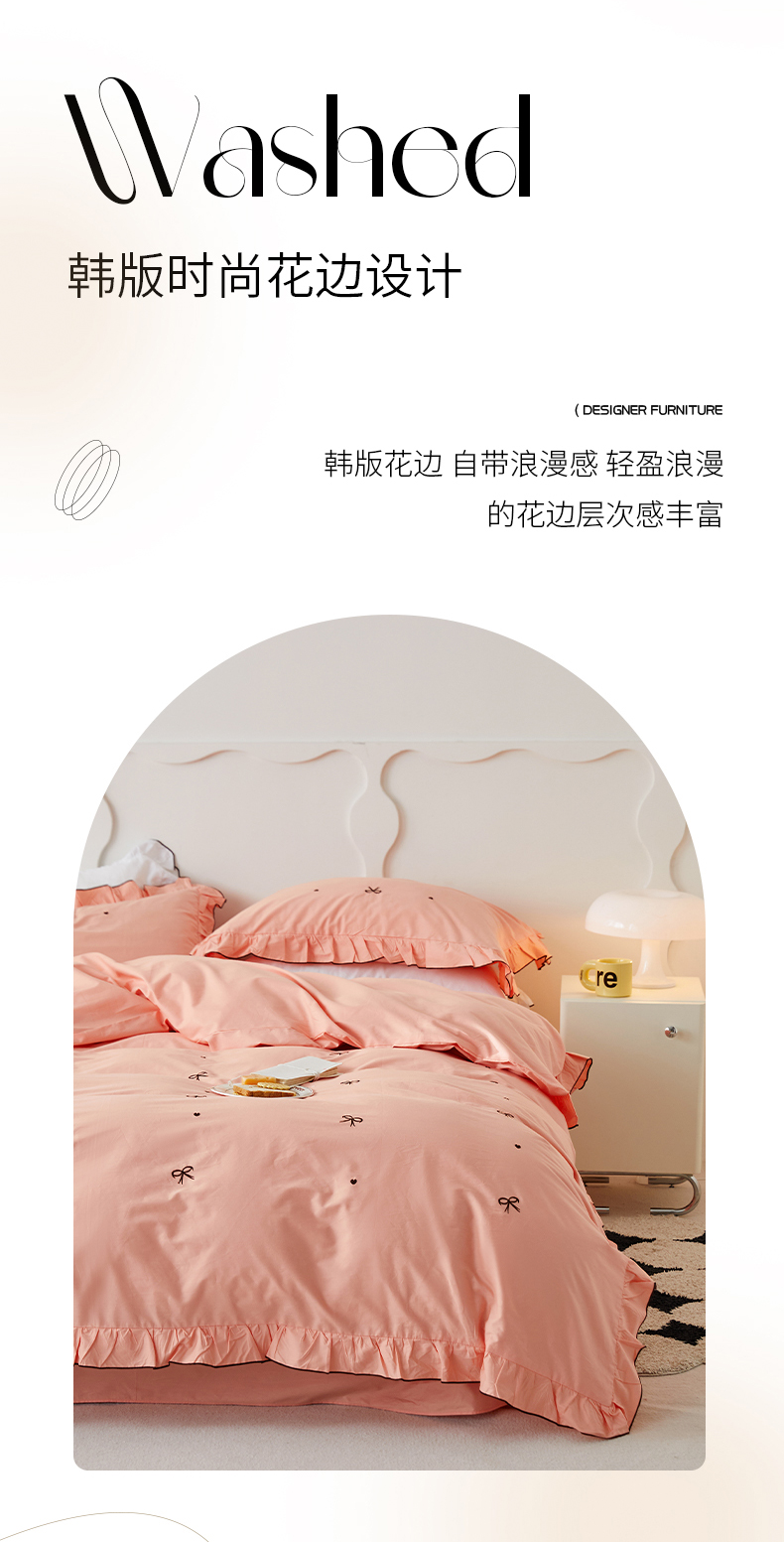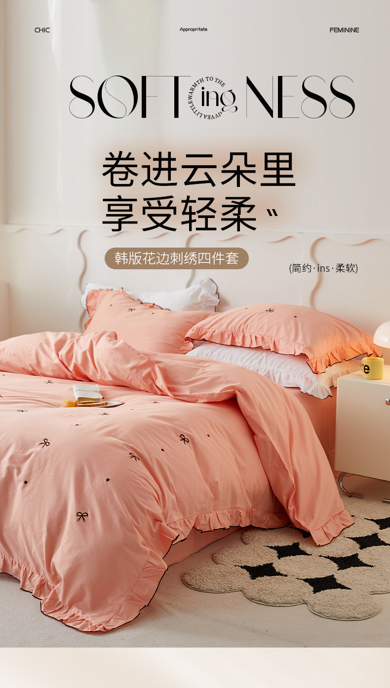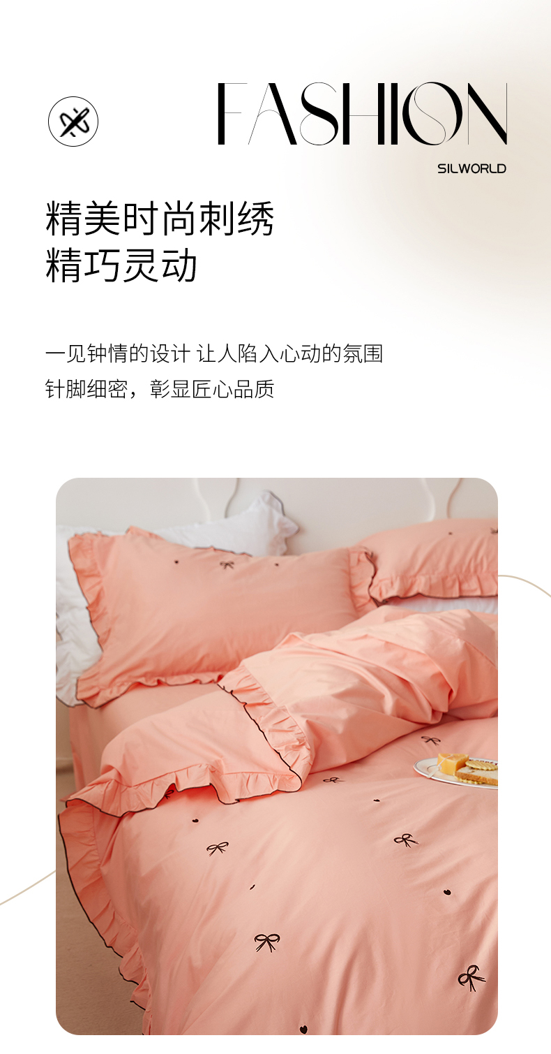 (总)梦可莱 2024新款亲肤刺绣荷叶边四件套-心灵迷恋,豆沙,奶油粉,奶油黄,牛油果绿,清新绿,香芋紫